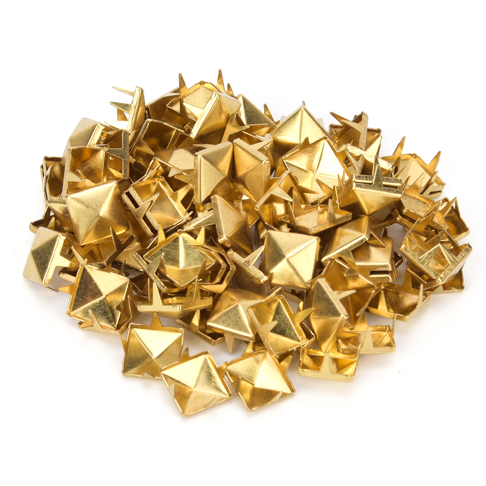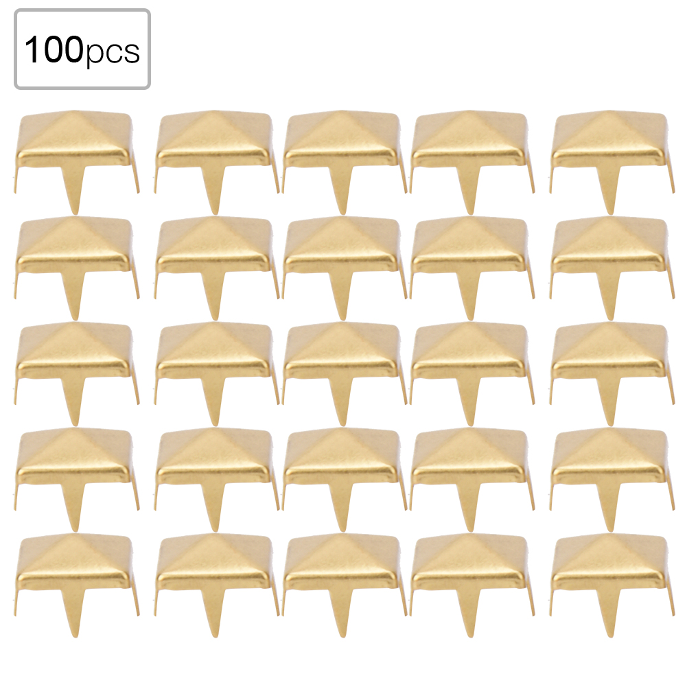 100 PCS 9MM Brass Copper Square Rivets Apparel Shoes Bag Accessories for Leather DecorationGold