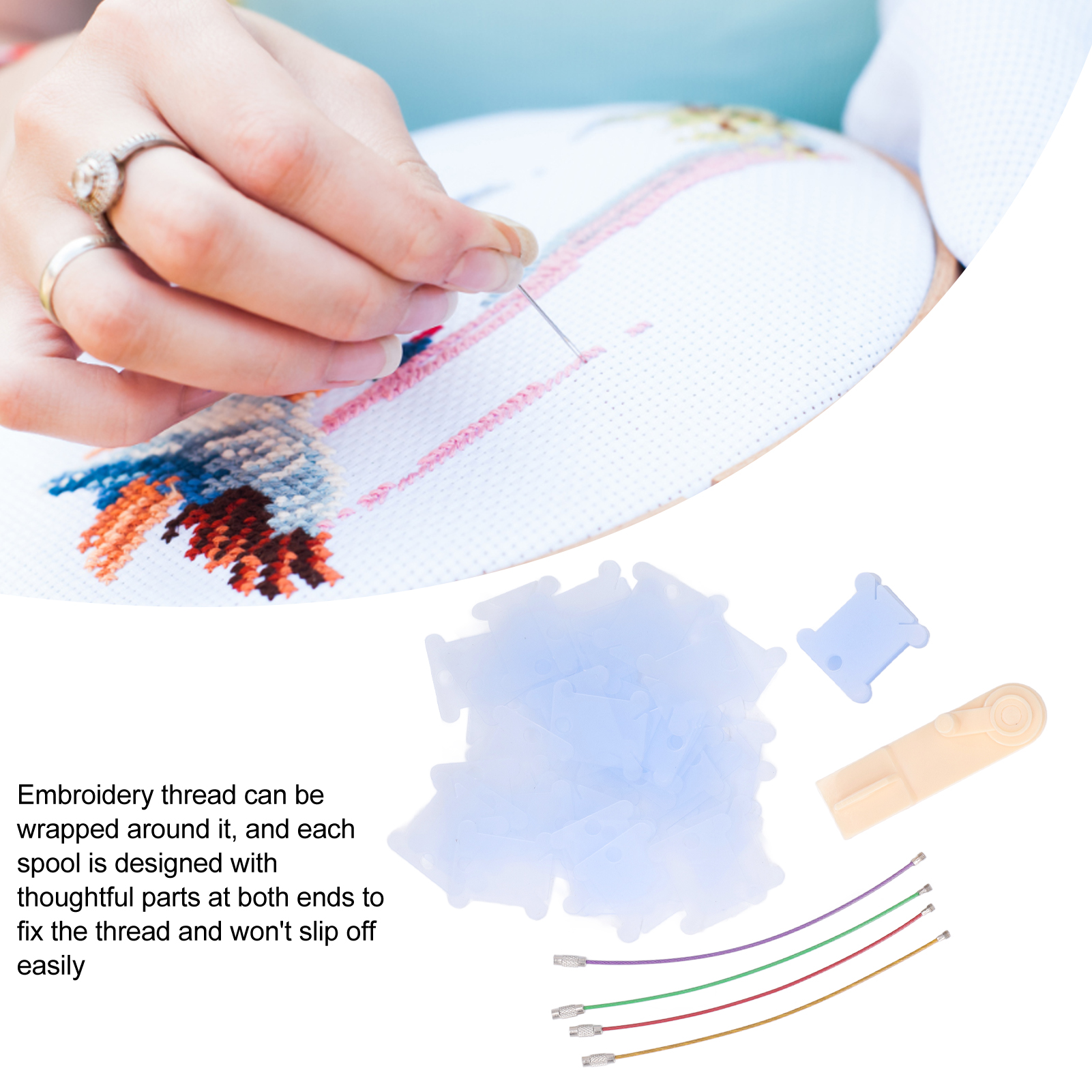 1、Easy Storage: Embroidery bobbins is convenient for you to use and store the remaining thread easily, and there are no more messy and loose threads around, and it is easy and convenient to organize. 2、Plastic Material: The wire winder is made of plastic, and the storage rings is made of metal, which is strong and durable, not easy to break and deform, easy to operate, and durable. 3、Save Time: Embroidery bobbins may take a lot of time if you wind it yourself, but with the help of a winder, it will make winding more convenient and easier, saving time for your work. 4、Fixed Both Ends: Embroidery thread can be wrapped around it, and each spool is designed with intimate parts at both ends to fix the thread and won't slip off easily. 5、Scope of Application: Embroidery floss cards can be used for needlework, embroidery, DIY crafts or other sewing jobs to make your work easier.