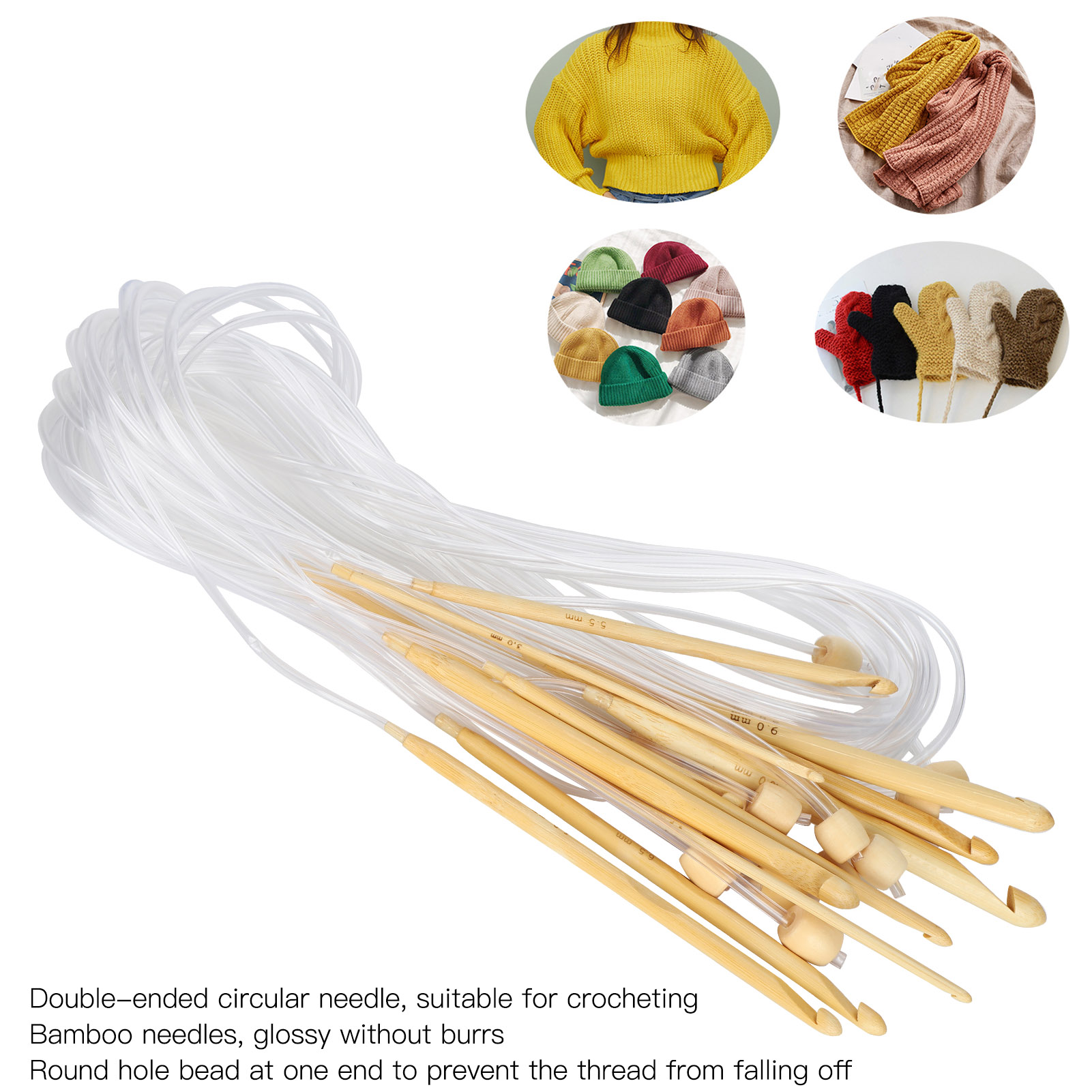1、The kit contains 12 different sizes of circular needles, which can meet your different knitting needs. 2、The crochet needle head is made of bamboo, and the appearance is glossy and burr‑free, and it will not hook when weaving. 3、The two ends of the loop pin are of different shapes, and one end is a round hole bead, which can block the thread well and prevent it from falling off. 4、The connection between the bamboo needle and the needle tube is firm, so there is no need to worry about falling off during use. 5、This kind of knitting crochet is very suitable for knitting scarves, sweaters, cushions and various handicrafts.