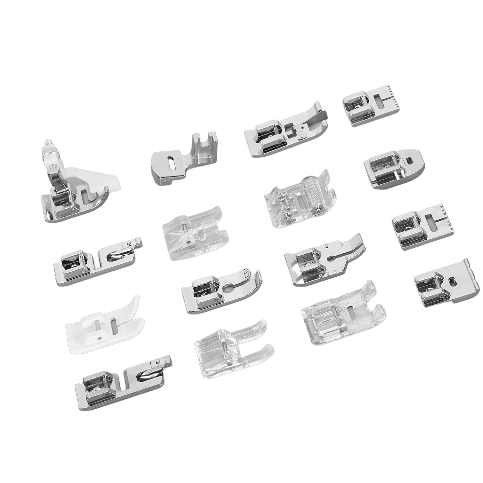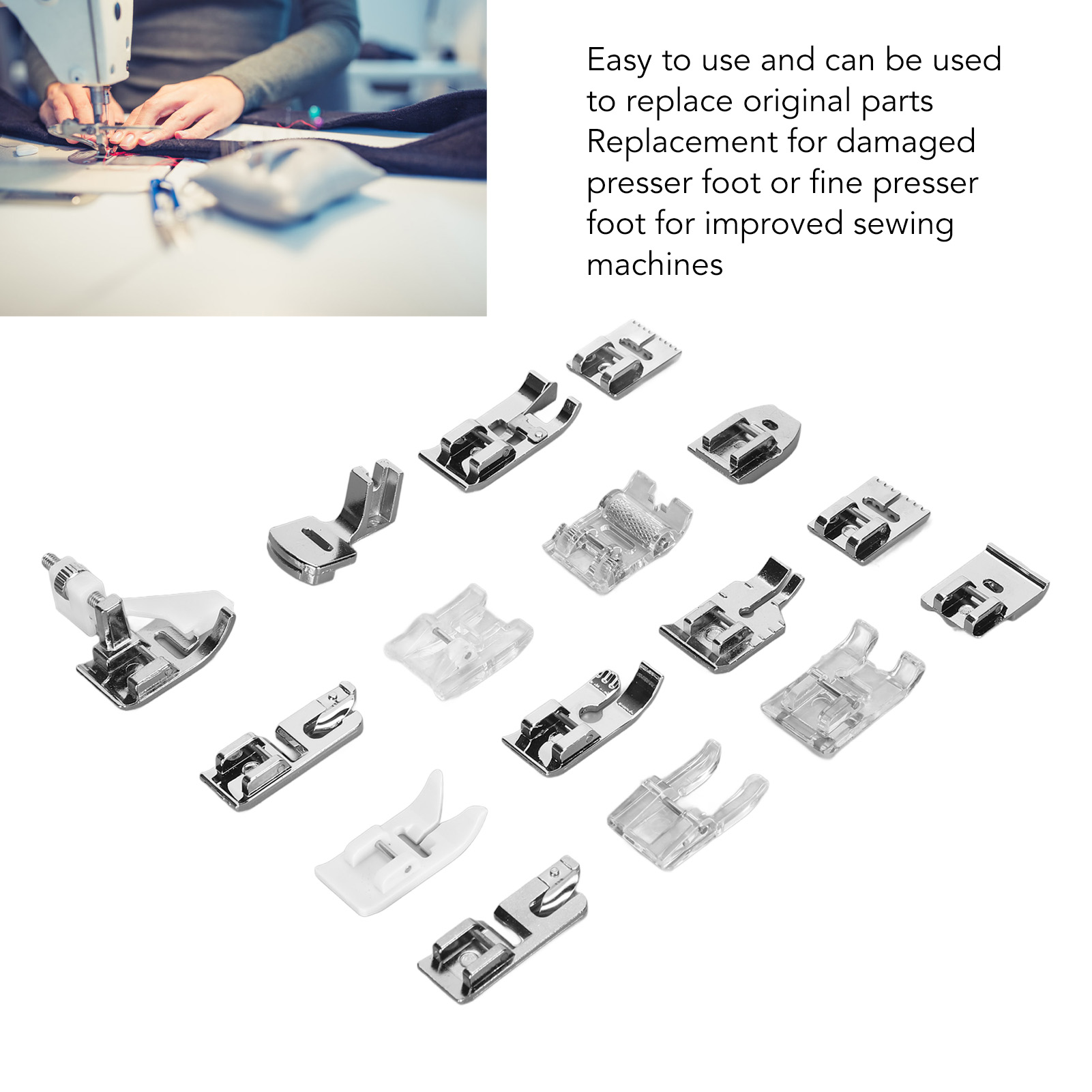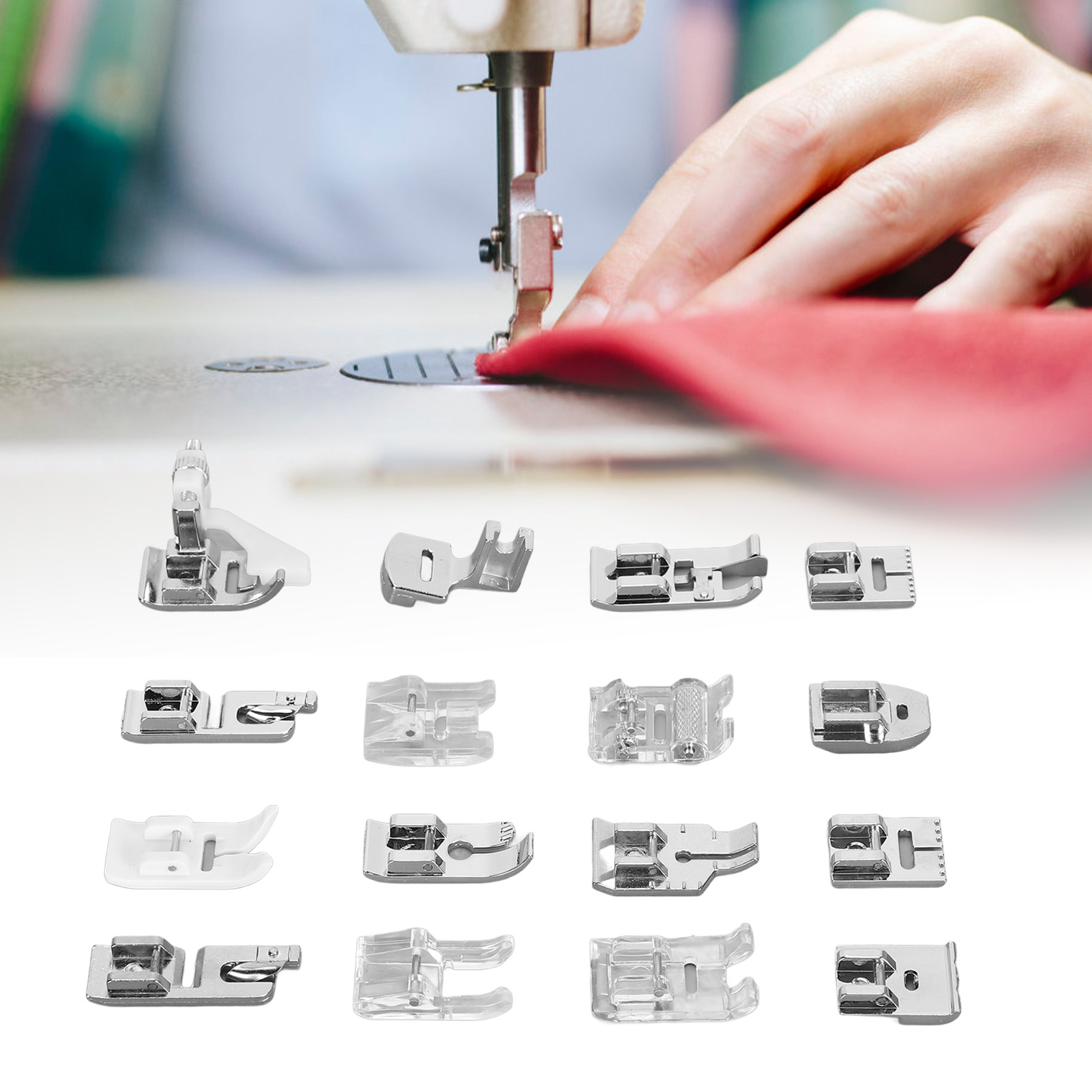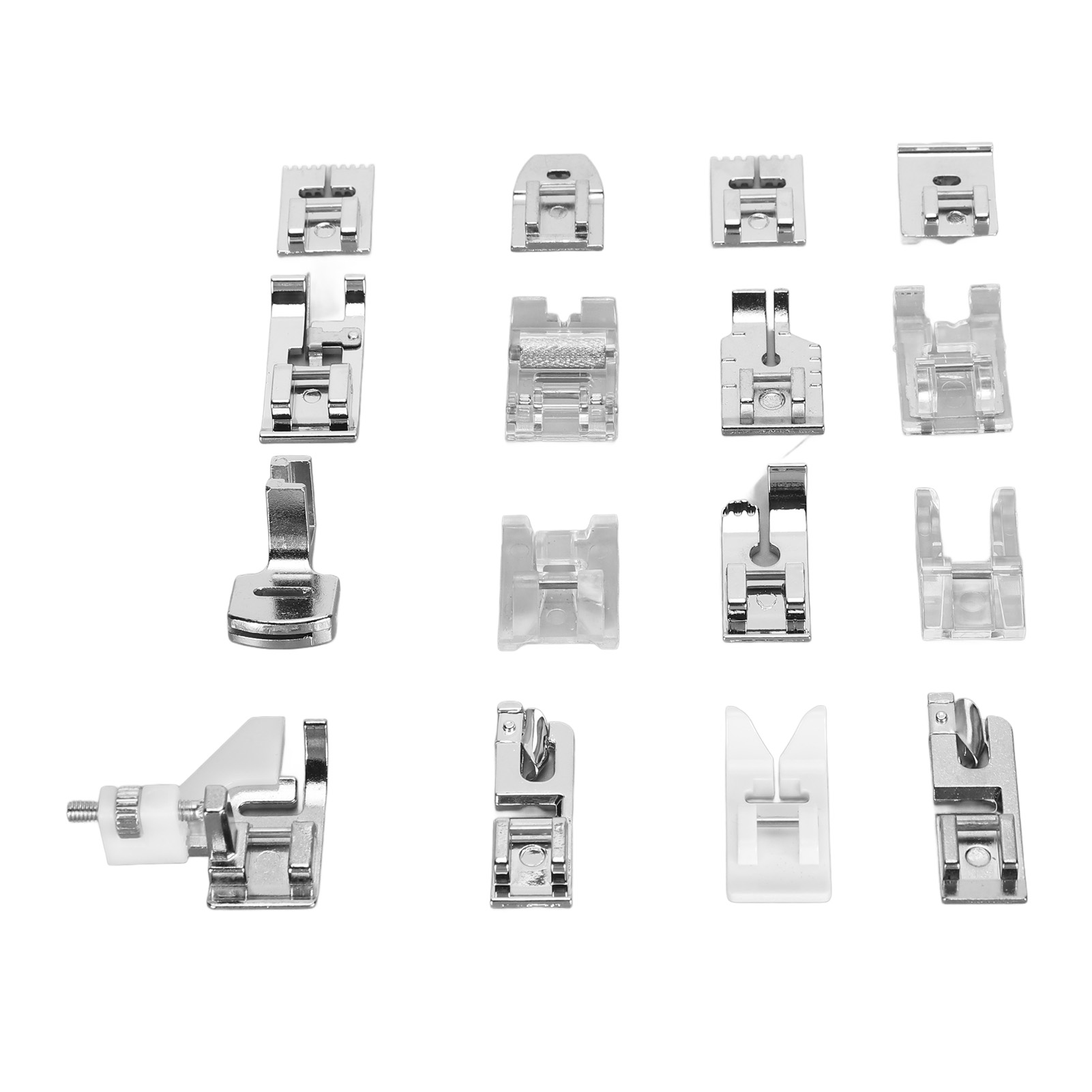 1、16PCS: This is a multifunctional presser foot kit, containing 16 different presser feet, which can meet your basic sewing needs. 2、STAINLESS STEEL MATERIAL: The sewing presser foot is made of stainless steel material, which is sturdy, durable, rust resistance and has high stability for long term use. 3、APPLICABLE: This set is universal for home multifunctional sewing machines, not available for old, small, industrial sewing machines! 4、IDEAL REPLACEMENT PIECE: Sewing presser foot is easy to use and can be used to replace the original part. A fine presser foot replacement for damaged presser feet or to improve your sewing machine. 5、COMPACT SIZE: Metal sewing machine presser foot is small and compact in size, easy to install and operate, a practical sewing machine accessory.