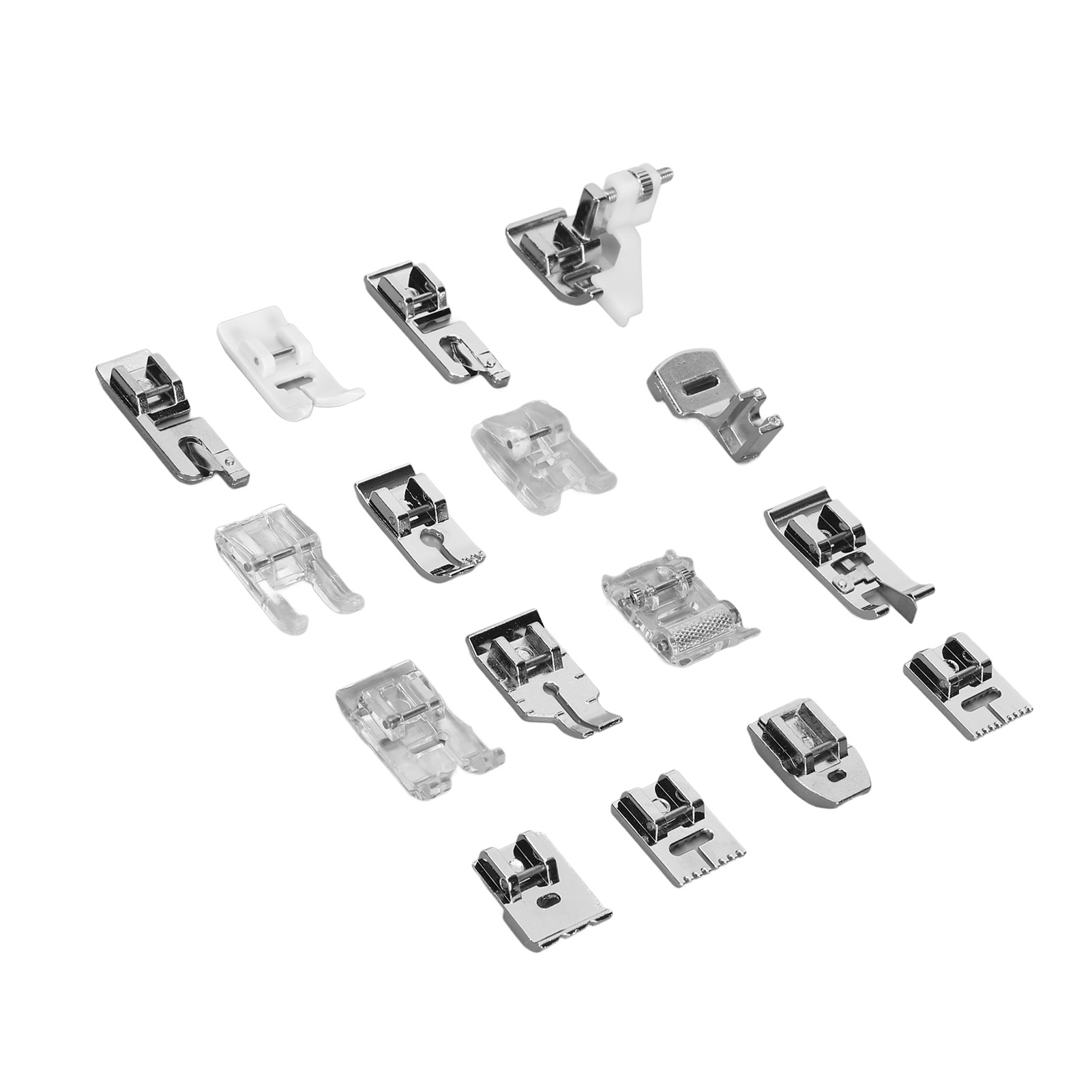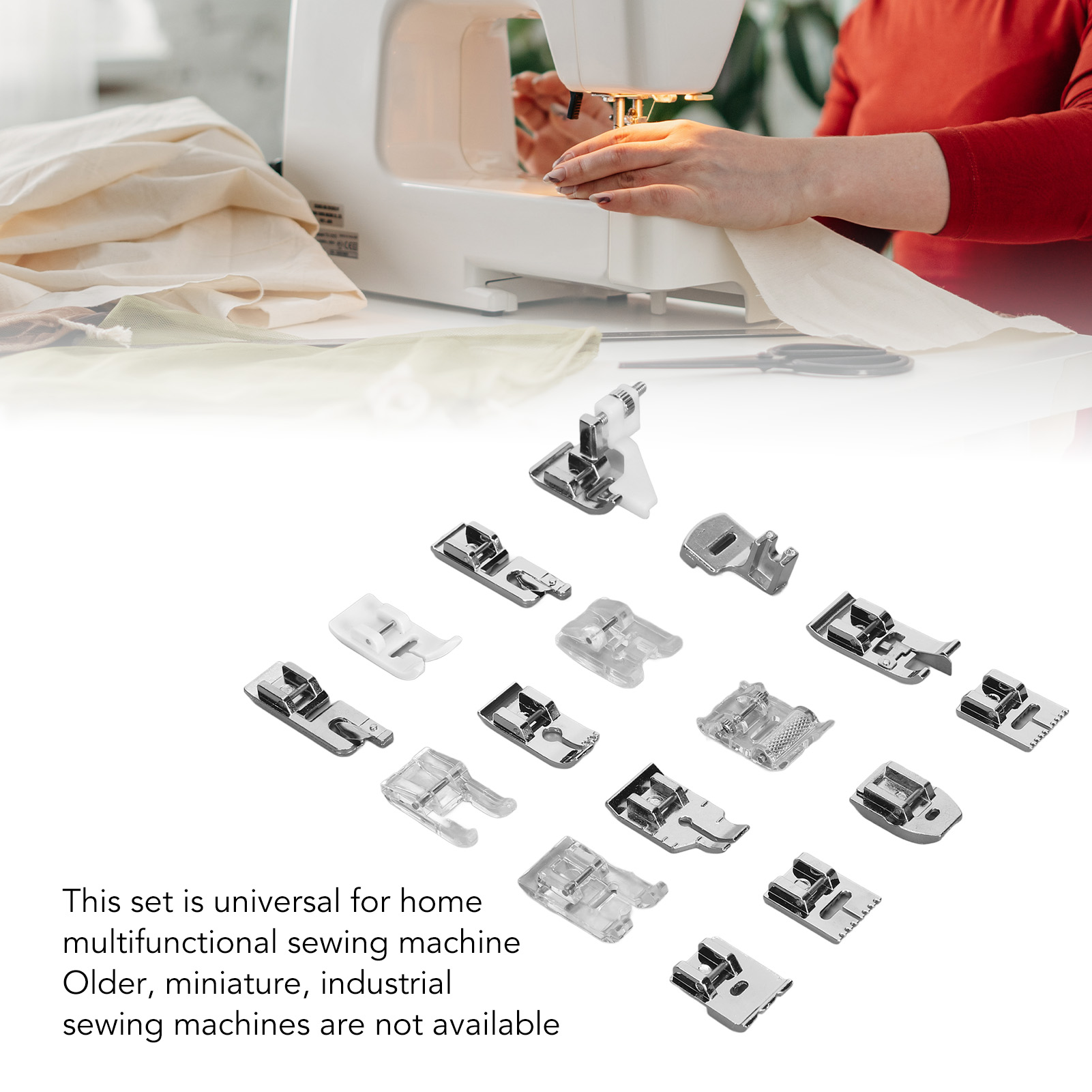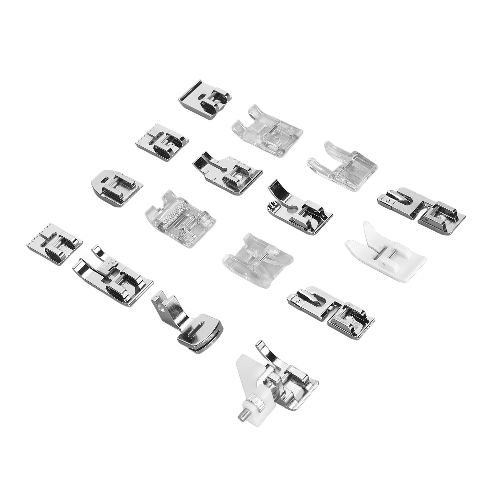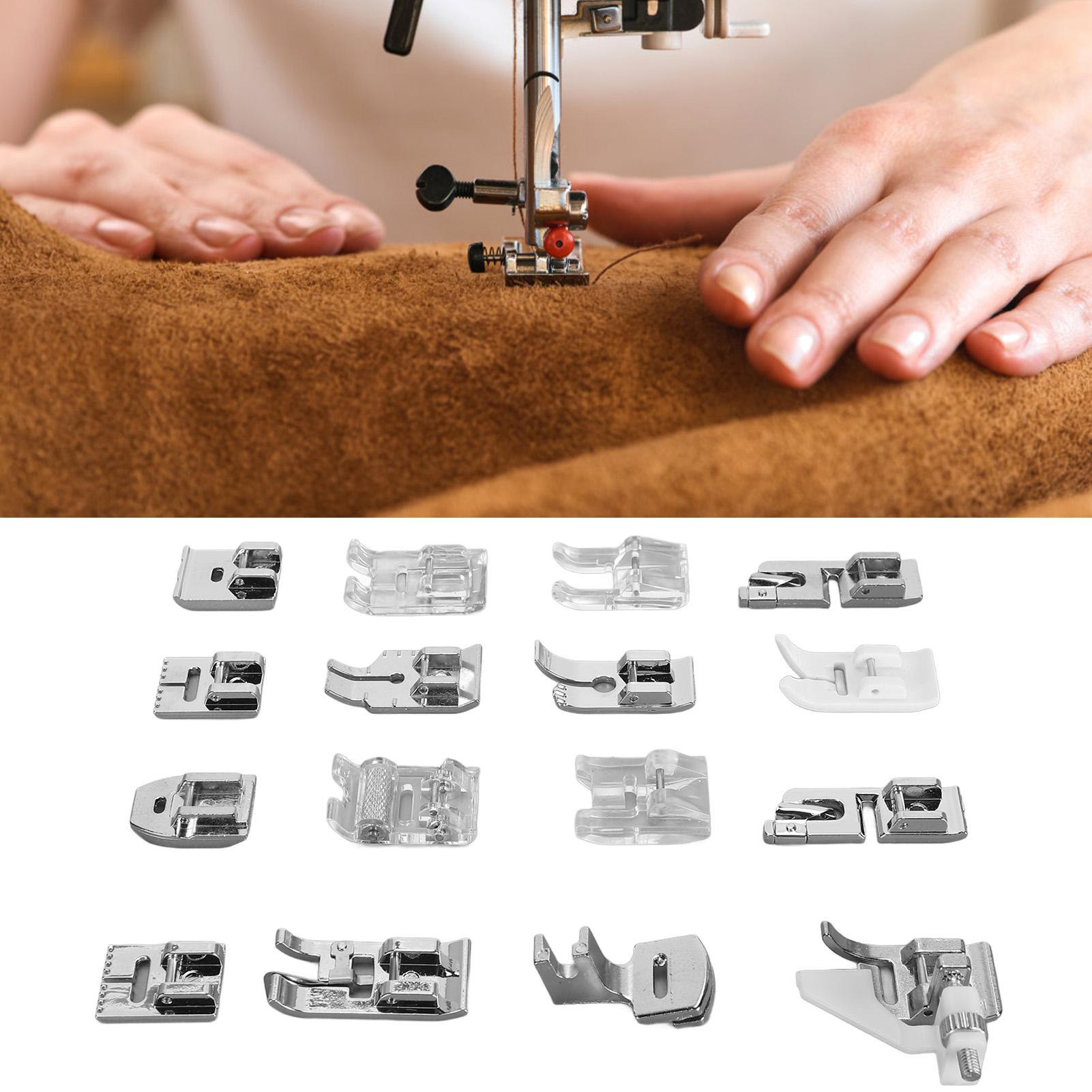 1、16PCS: This is a multifunctional presser foot kit, containing 16 different presser feet, which can meet your basic sewing needs. 2、STAINLESS STEEL MATERIAL: The sewing presser foot is made of stainless steel material, which is sturdy, durable, rust resistance and has high stability for long term use. 3、APPLICABLE: This set is universal for home multifunctional sewing machines, not available for old, small, industrial sewing machines! 4、IDEAL REPLACEMENT PIECE: Sewing presser foot is easy to use and can be used to replace the original part. A fine presser foot replacement for damaged presser feet or to improve your sewing machine. 5、COMPACT SIZE: Metal sewing machine presser foot is small and compact in size, easy to install and operate, a practical sewing machine accessory.