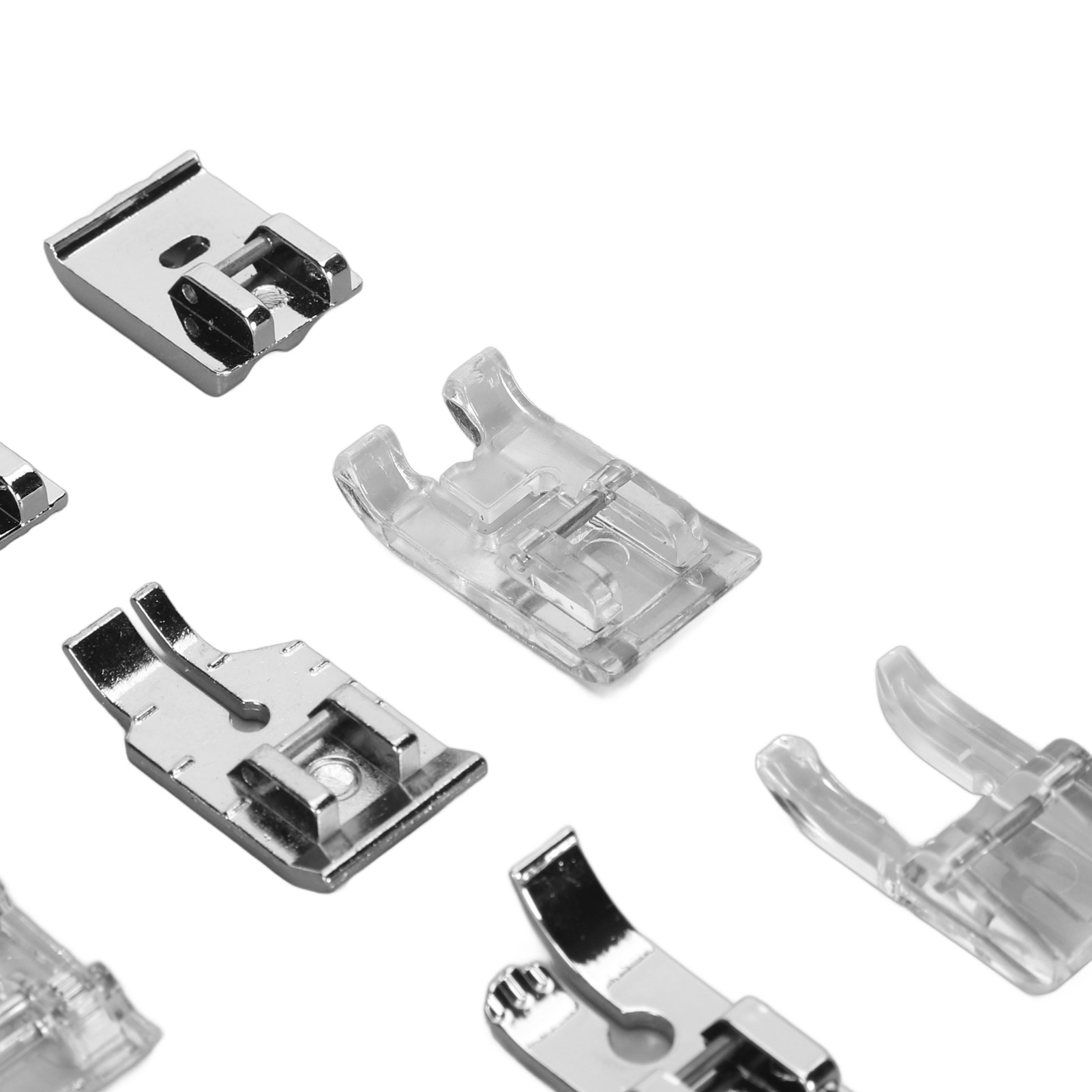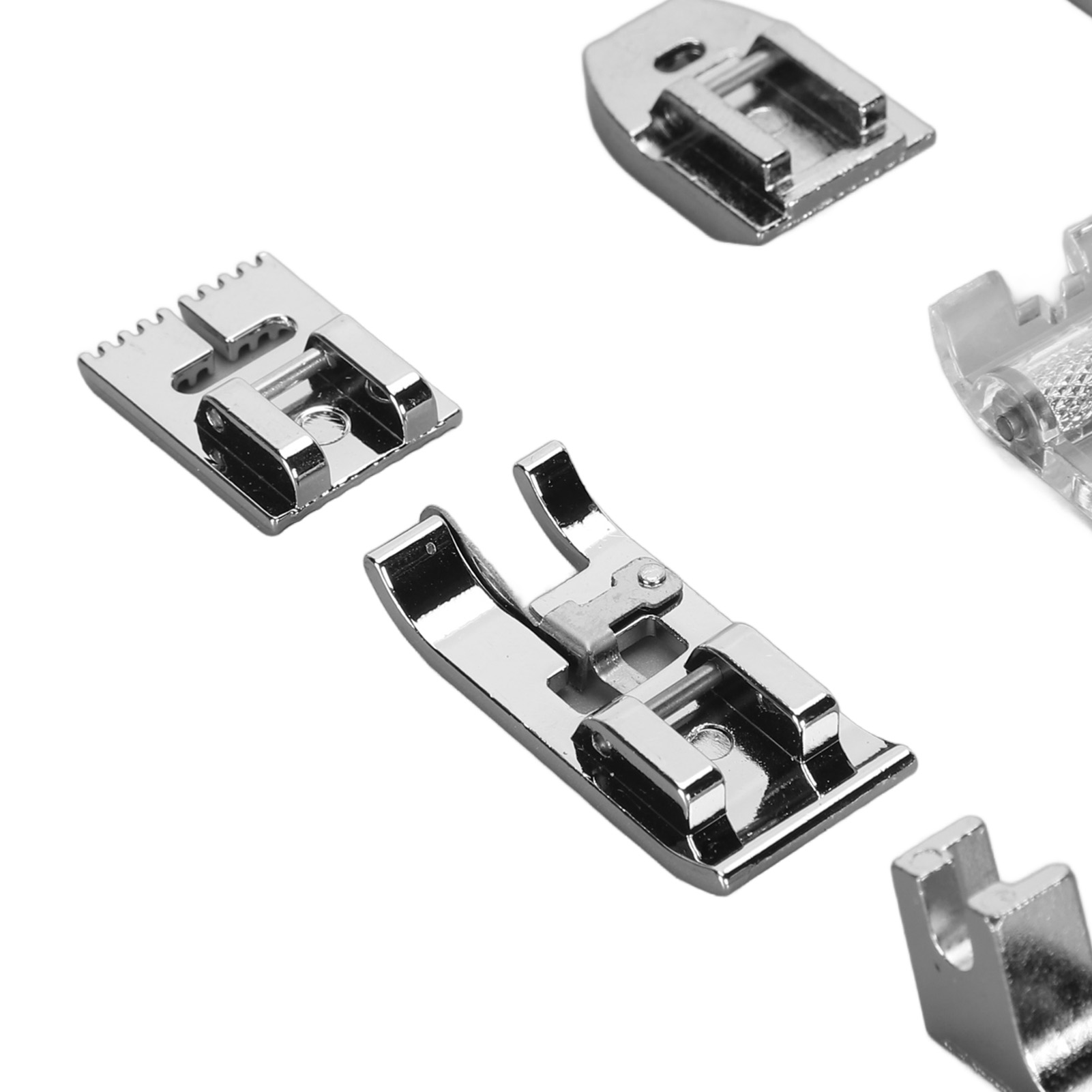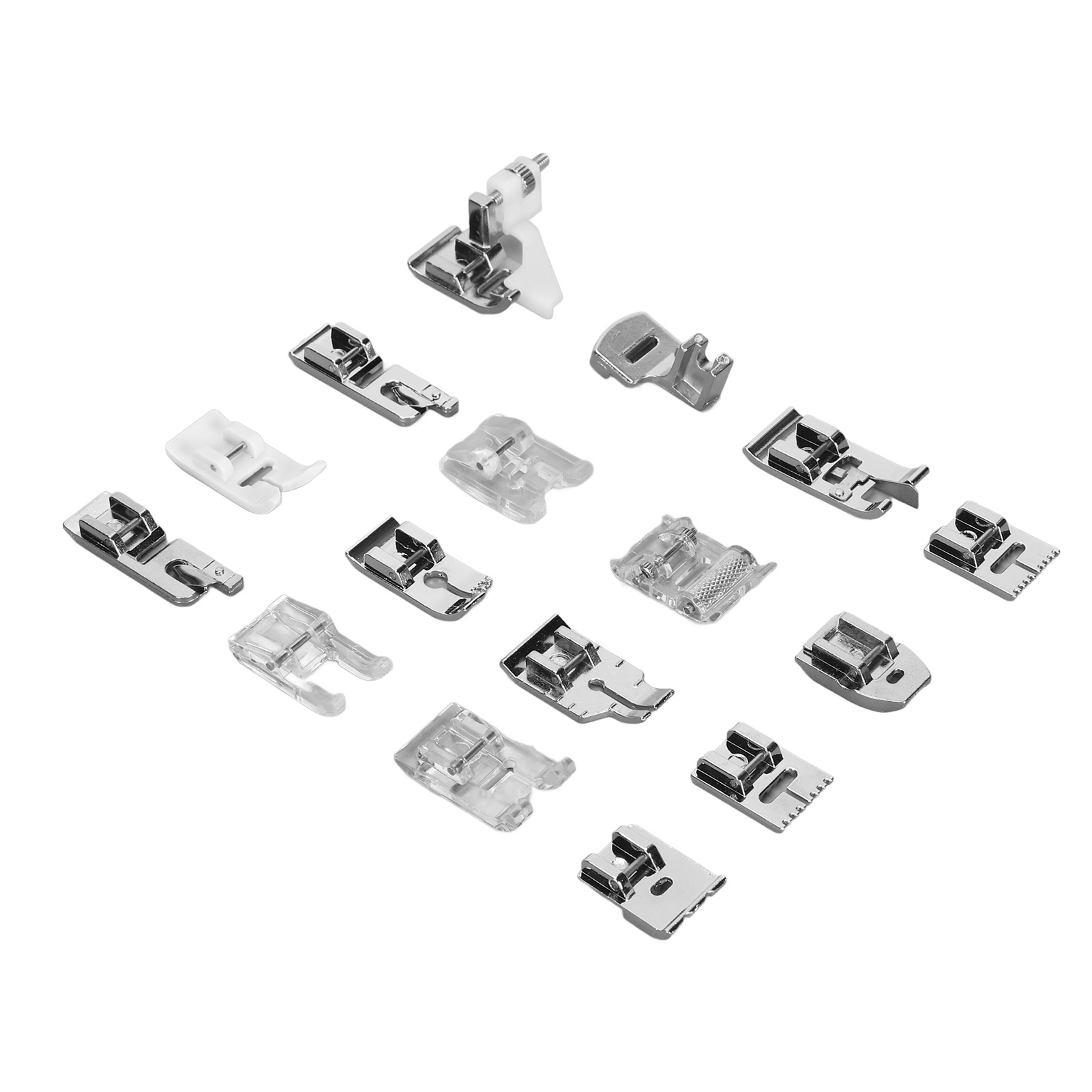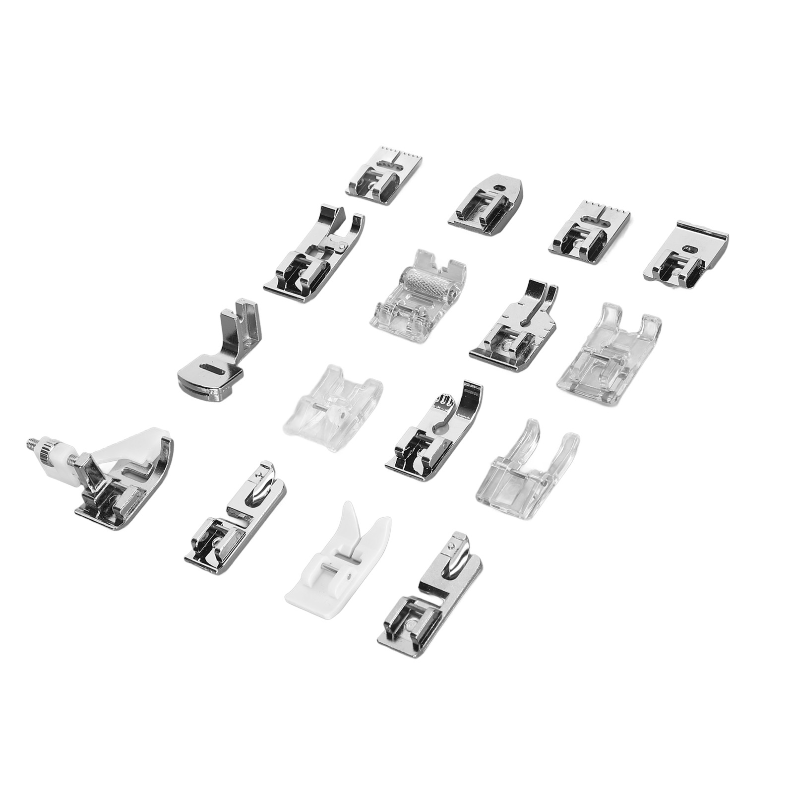 1、16PCS: This is a multifunctional presser foot kit, containing 16 different presser feet, which can meet your basic sewing needs. 2、STAINLESS STEEL MATERIAL: The sewing presser foot is made of stainless steel material, which is sturdy, durable, rust resistance and has high stability for long term use. 3、APPLICABLE: This set is universal for home multifunctional sewing machines, not available for old, small, industrial sewing machines! 4、IDEAL REPLACEMENT PIECE: Sewing presser foot is easy to use and can be used to replace the original part. A fine presser foot replacement for damaged presser feet or to improve your sewing machine. 5、COMPACT SIZE: Metal sewing machine presser foot is small and compact in size, easy to install and operate, a practical sewing machine accessory.