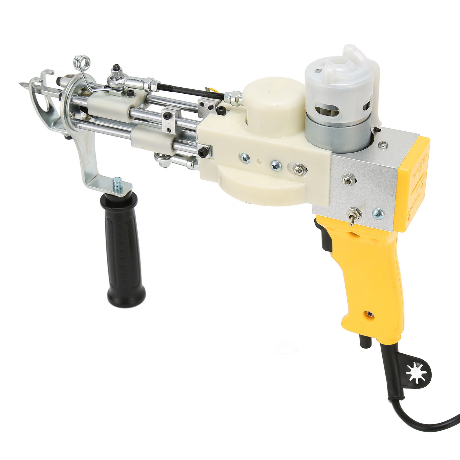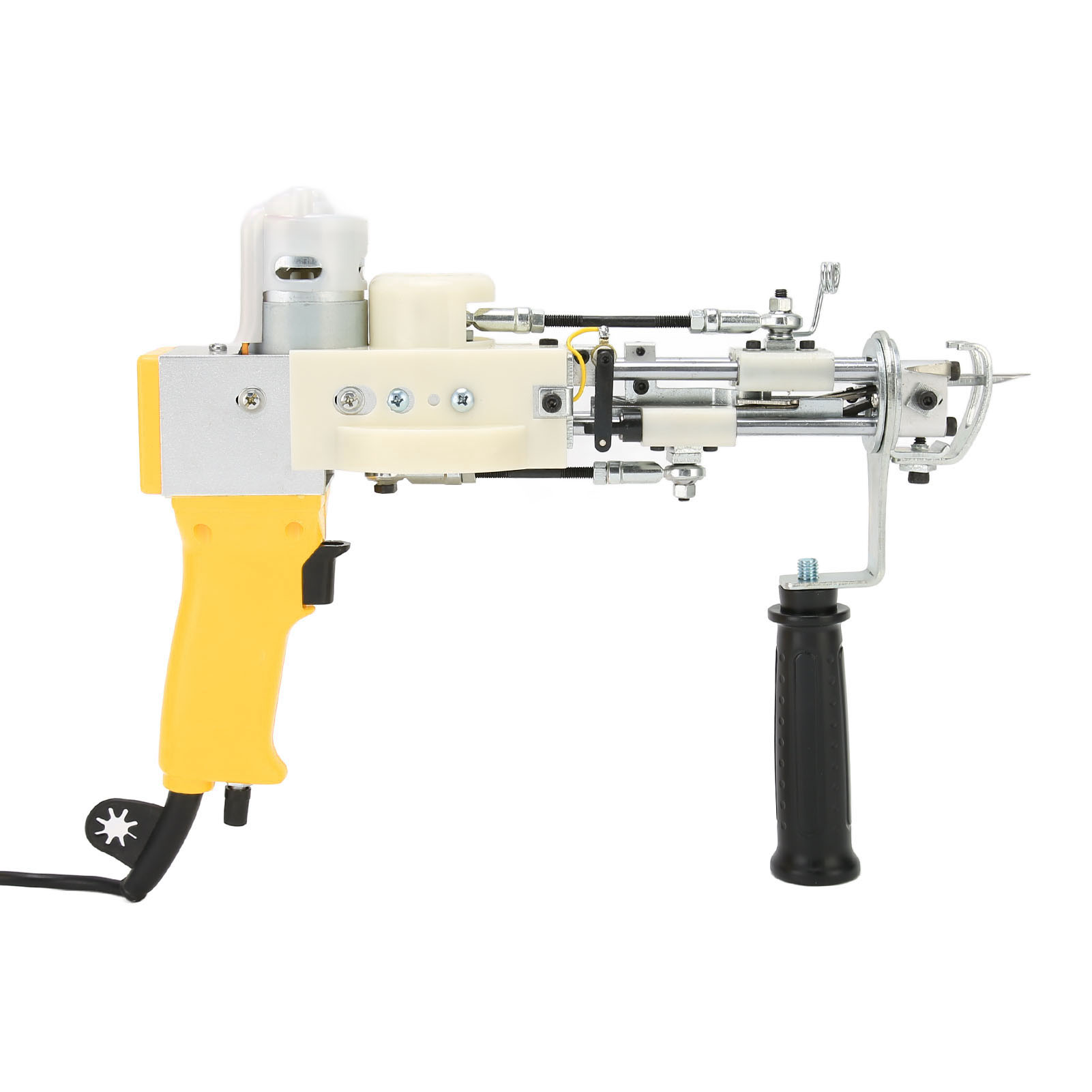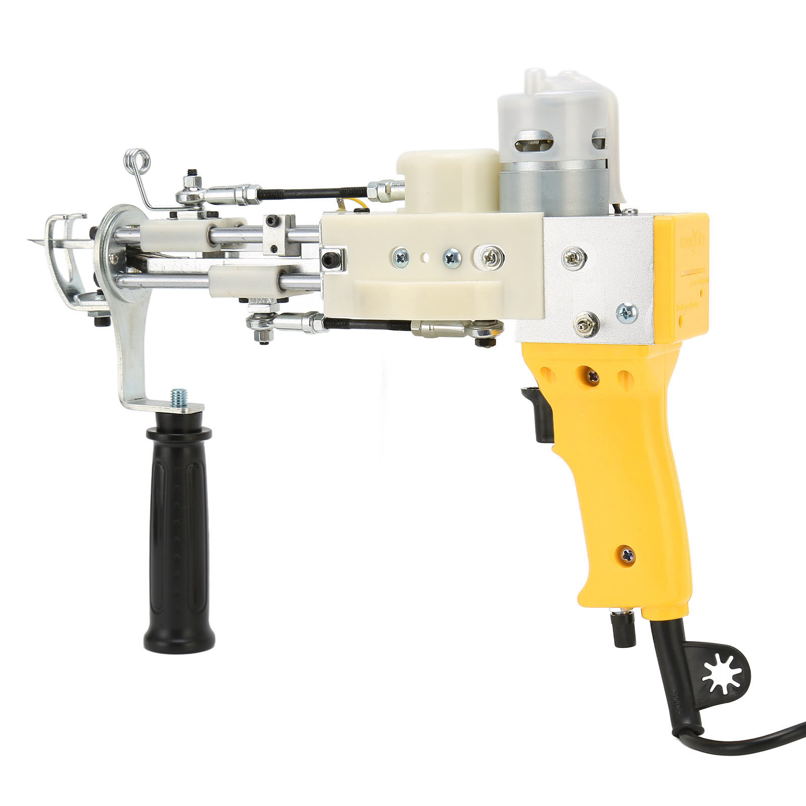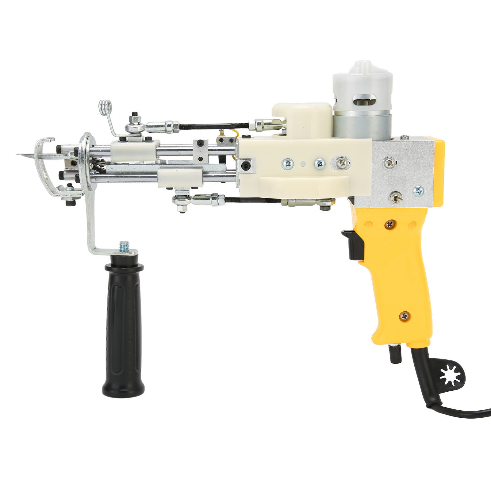 1、Adjustable Speed: The speed of the Carpet weaving machine is up to 40 stitches per second, which is highly productive and adjustable, very practical and safe. 2、360 Degree Adjustable Handle: Carpet gun machine is equipped with 360 degree adjustable auxiliary handle, which provides great comfort and flexibility when using. 3、Low Noise: The gears are twice injection molded and the teeth are made of special material, which is extremely low noise and more wear resistant. 4、DIY Production: Tufting machine can realize the conversion of cutting pile and circulating pile, you can use it to DIY your favorite carpet and make many beautiful artworks. 5、Widely Used: Electric rug gun machine is widely used for weaving various types of carpets. And compatible with all kinds of yarns, suitable for beginners or professionals.