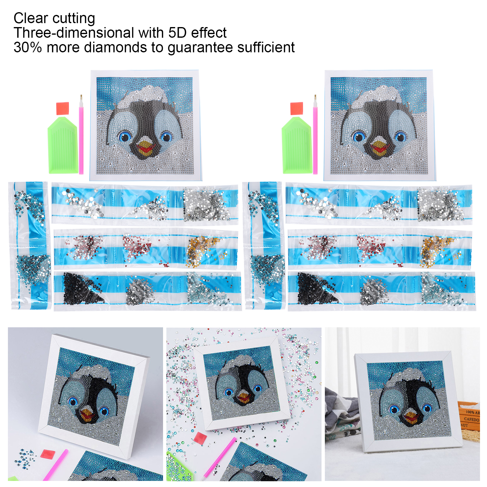 1、Easy to operate. Using the latest research and development natural environmentally friendly non‑iron round diamonds 2、Clear cutting with more three‑dimensional 5D effect, 30% more diamonds will be put in each painting to guarantee sufficient 3、Experiencing sense of accomplishment, reduce stress, adjust emotion, enhance self‑confidence 4、Suitable for both elderly and children, they can share happy time together 5、Used for decorating living room, bedroom, office, dining room, bar or any place to match different styles, also a great gift on birthdays and holidays