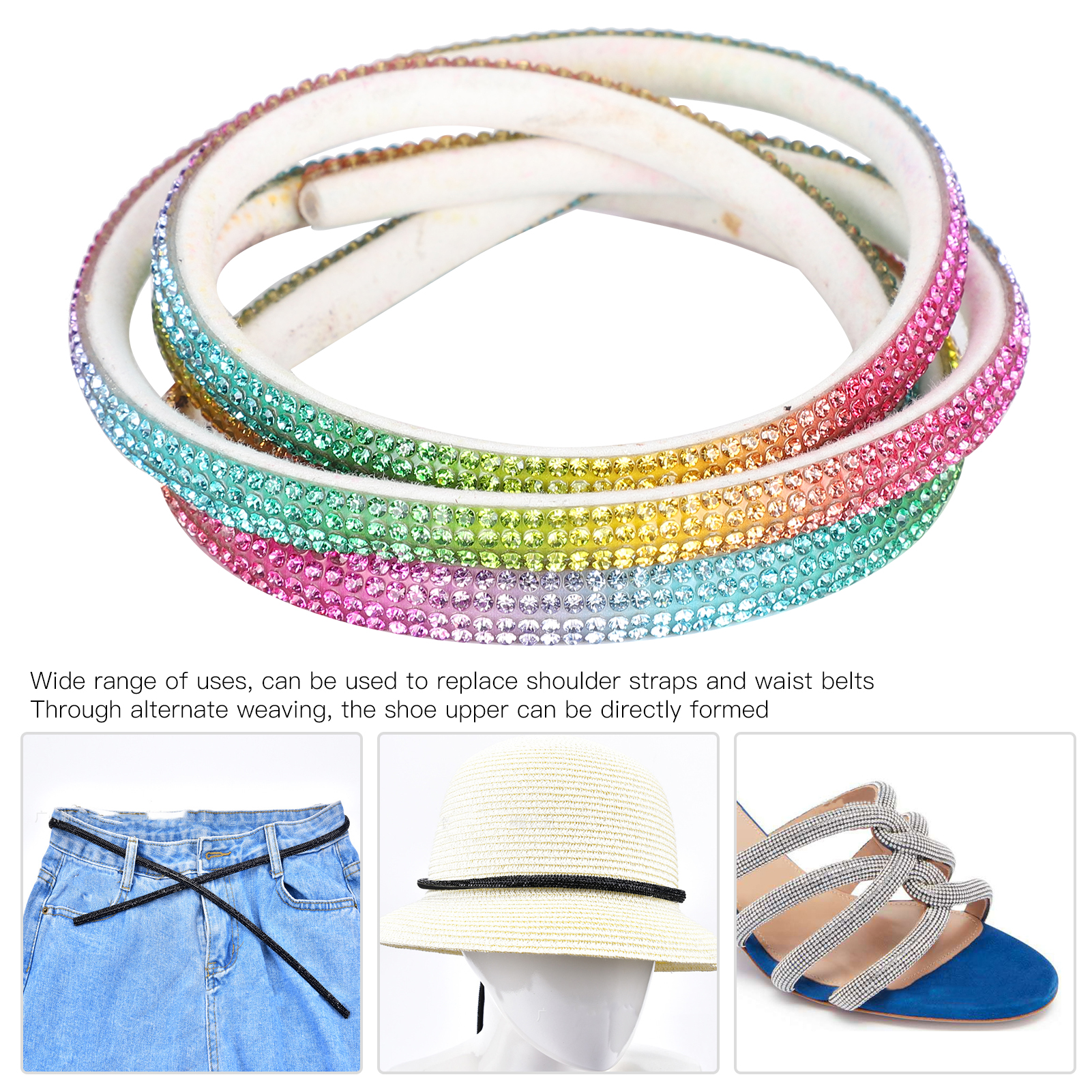 1、Soft and malleable, the outer ring is made of colored glaze, which is sparkling and has various colors to meet different needs. 2、Wide range of uses and can be used to replace shoulder straps and waist belts, is light and elegant, and can be eye‑catching when attending various places. 3、Can also be used as a substitute for shoe uppers, through alternate weaving, directly forming shoe uppers 4、A good choice for girlfriends, family members, wives and daughters, suitable for ladies of all ages. 5、Using high‑quality materials, strong and durable, has a long service life.