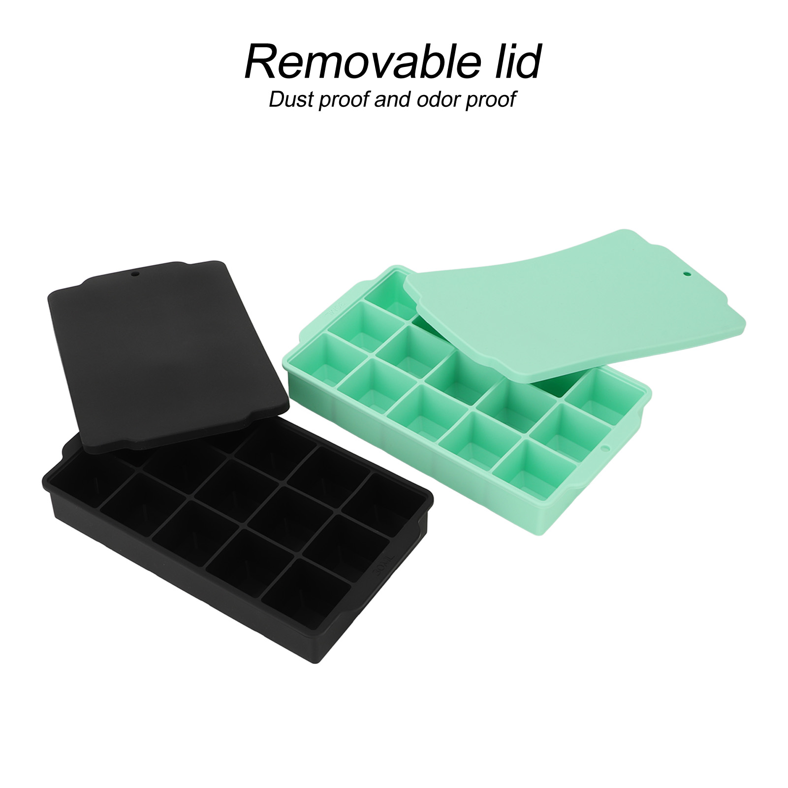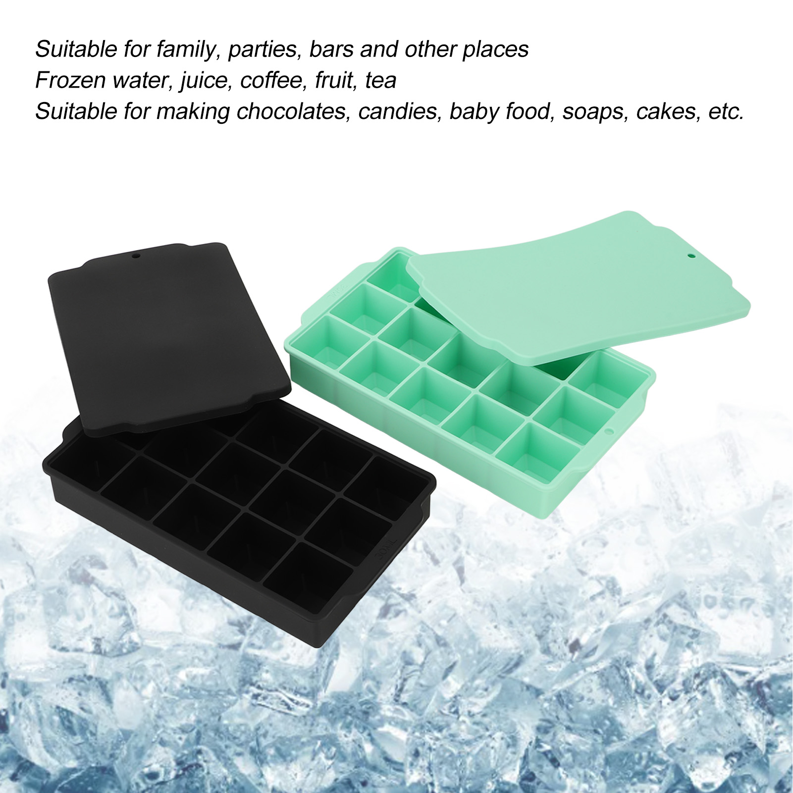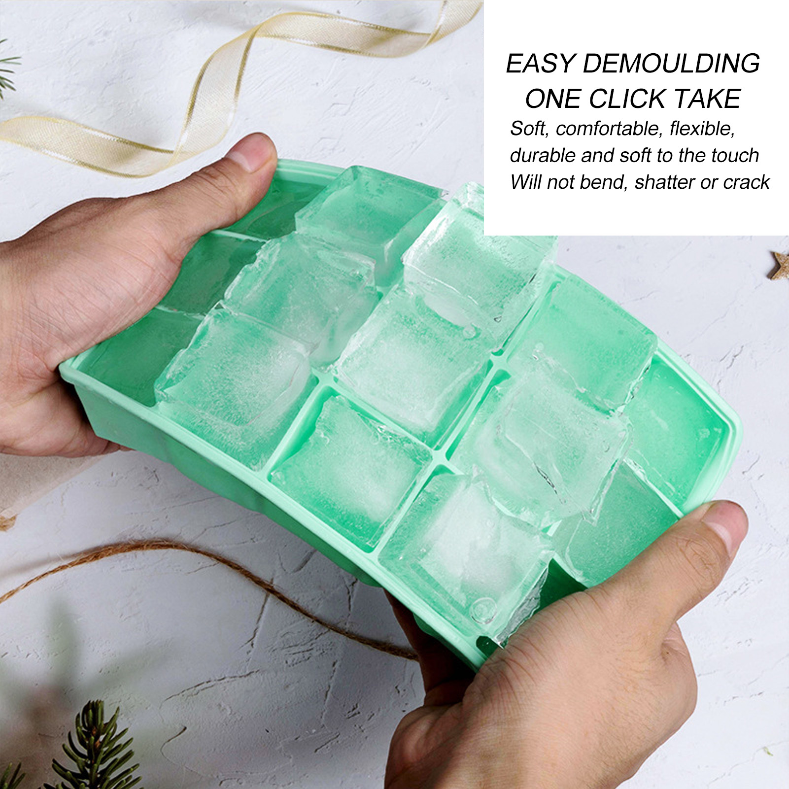 2Pcs Ice Cube Trays Silicone Soft Safe Easy Release Ice Mold with Removable Lid for Home Bar