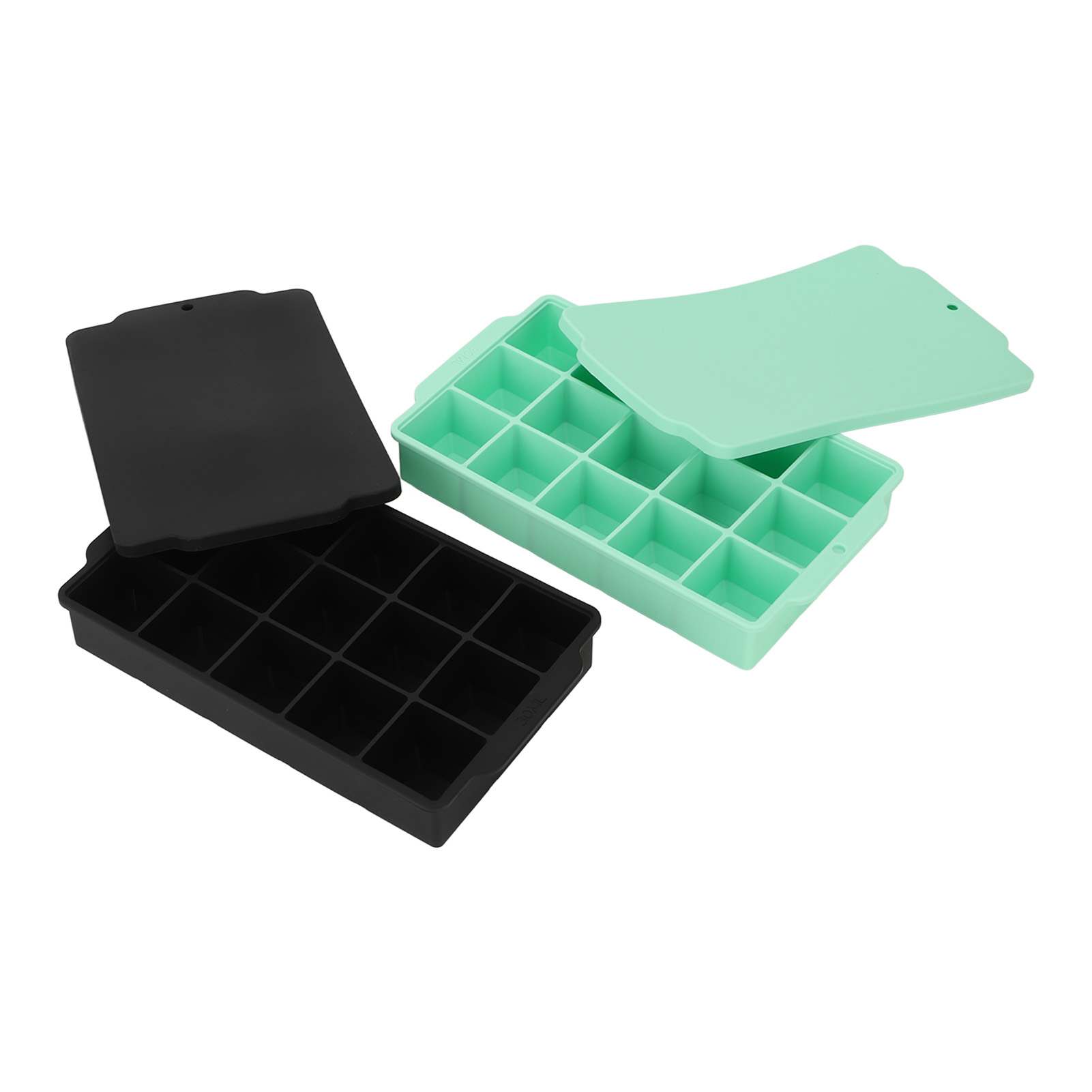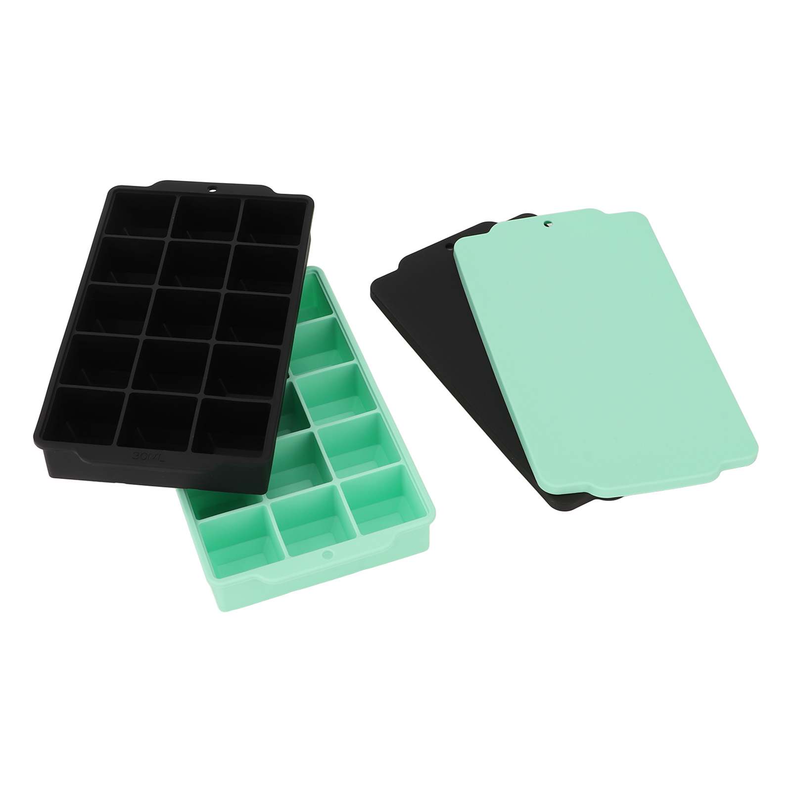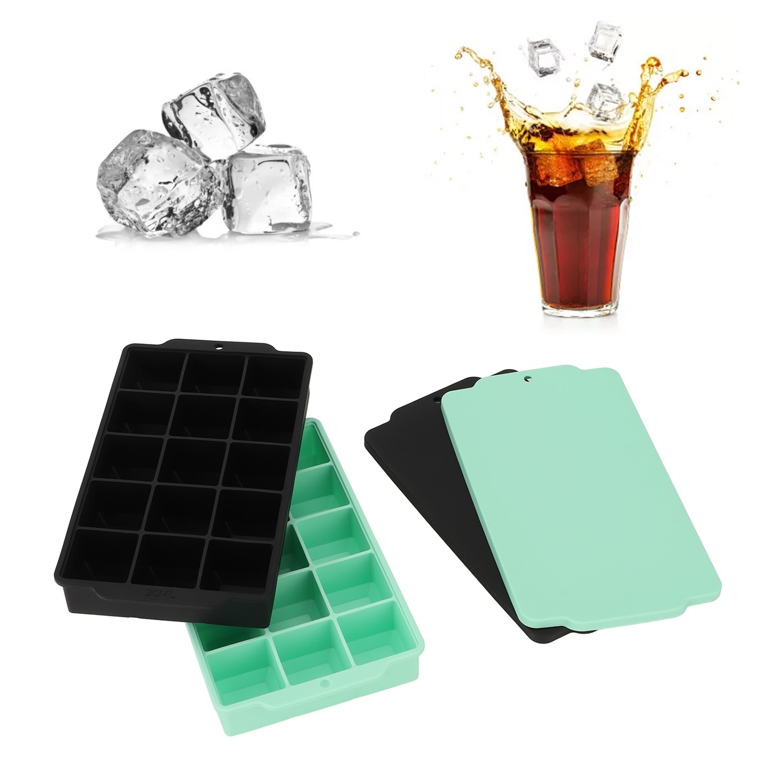 2Pcs Ice Cube Trays Silicone Soft Safe Easy Release Ice Mold with Removable Lid for Home Bar