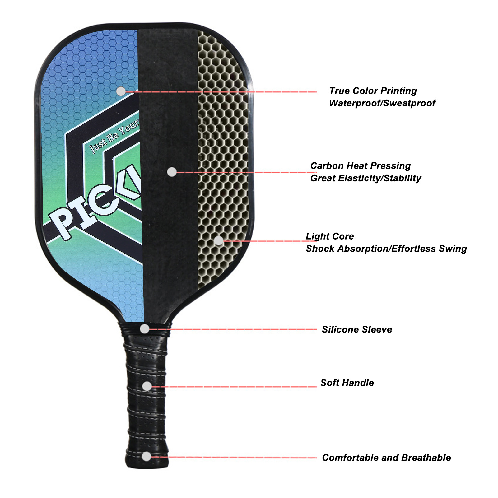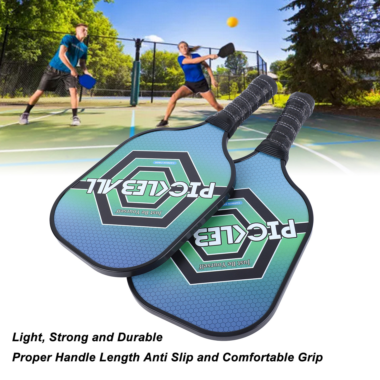 1、Paddles and Balls: You will receive 2 pickle ball paddles and 4 balls, also comes with a storage bag for more convenience, take it to where you want and have fun. 2、Durable Material: These pickleball rackets and balls are made of reliable carbon and PE core. Such grea t material match makes the pickle ball racket lightweight, strong and durable. 3、Comfortable Grip: These pickle ball rackets with proper handle length provides anti slip and comfortable grip, easily absorb the sweat of your palm. 4、For All Ages: These pickle paddles are suitable for people of all ages and different levels, enjoy the great fun with your kids and family, meeting your basic needs. 5、Ideal Gift: These pickle ball racquets with balls are perfect gift giving choice, ideal for both beginners, pros and enjoyed by friends and family.