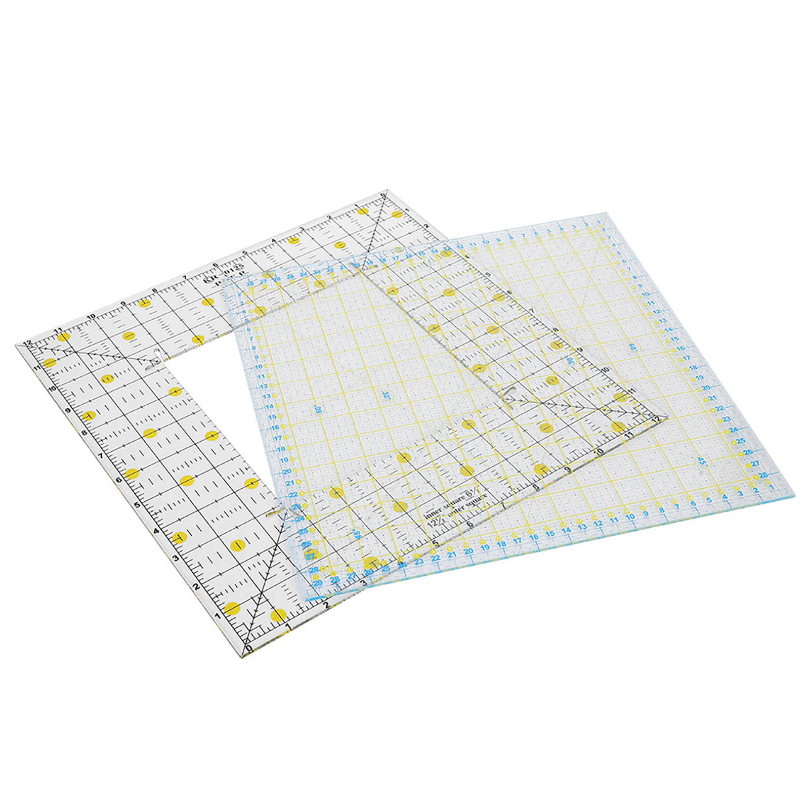 1、This affordable patch-work ruler is made of sturdy, high-quality plastic, laser cut, with cleaner edges and easier cutting. 2、The quilting ruler has hanging holes for easy removal of the acrylic ruler, keeping the workbench neat and not easy to lose. 3、Our fabric ruler is designed with a two‑handed angle system to confirm precise cutting, whether you are left‑handed or right‑handed, you will find numbers and angle marks. 4、This sewing ruler can be used for quilting, sewing, measuring, painting and crafting to meet your needs. 5、The quilting ruler can also be used as a cutting ruler with the classic ring rotary cutter, which is practical and convenient.