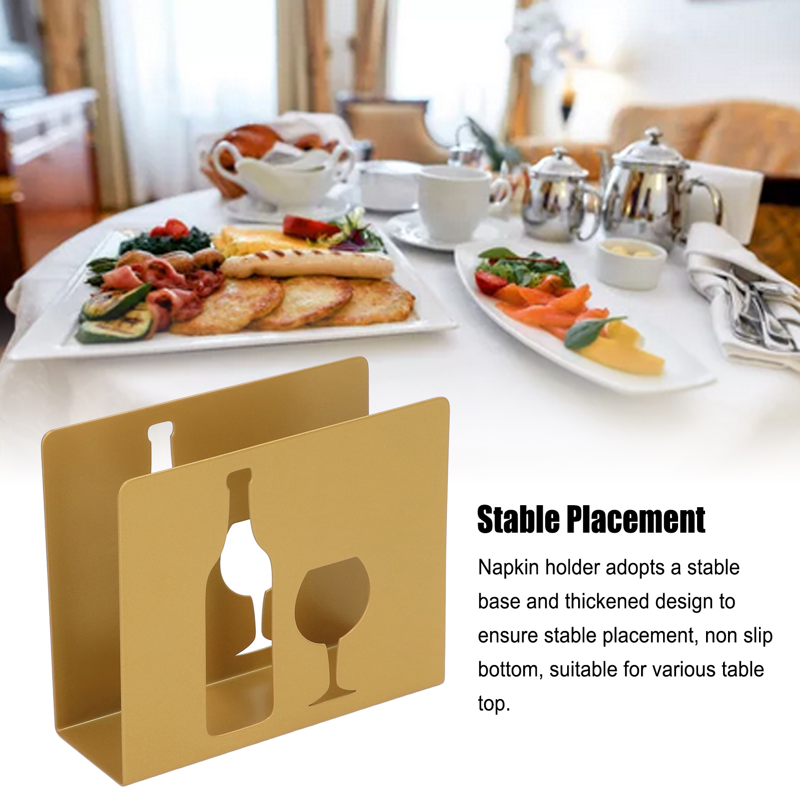 1、Hollow Pattern: Hollow pattern on the napkin holder, with a charming and elegant curved design, delicate color, no fading, overall looks stylish and exquisite. 2、Stable Placement: Napkin holder adopts a stable base and thickened design to ensure stable placement, non slip bottom, suitable for various table top. 3、Multiple Applicable Place: Table napkin holder keeps your napkins neat and tidy, a great accessory for table decoration, can be used in bars, cafes, hotels, restaurants, etc. 4、Fine Workmanship: Attention to details, mellow edge and corner prevent hand scratches, safe for use. 2pcs of tissue napkin holder are available, meet different use needs. 5、Stainless Steel Material: Paper napkin holder is made of stainless steel material, firm and anti rust, sturdy and no deformation, stable and durable for use.