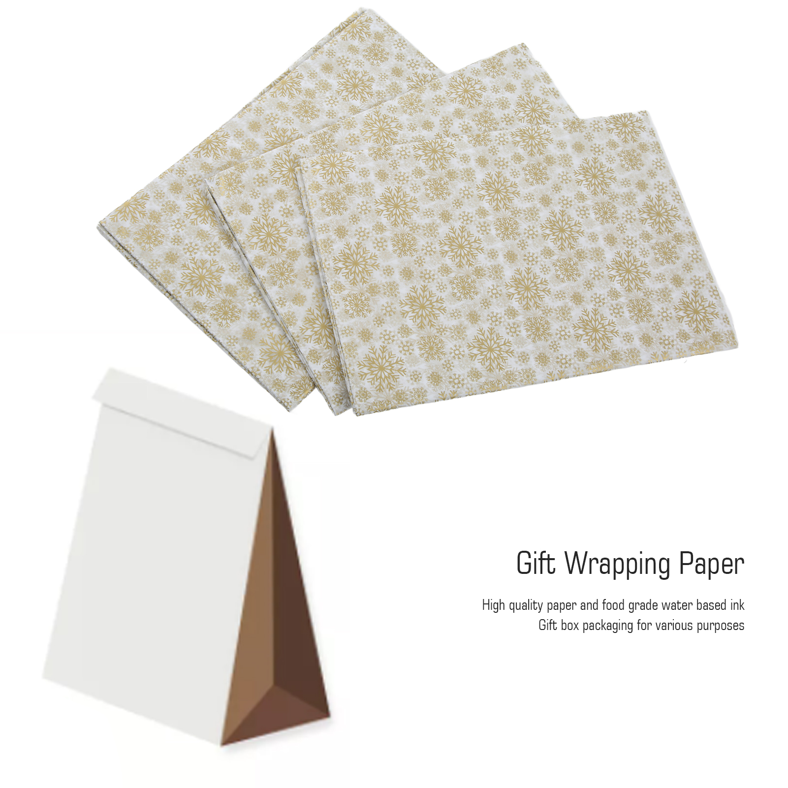 30Pcs Gift Wrapping Paper Golden Printing Food Grade Waterborne Ink Environmental Friendly Gift BagsSnowflake