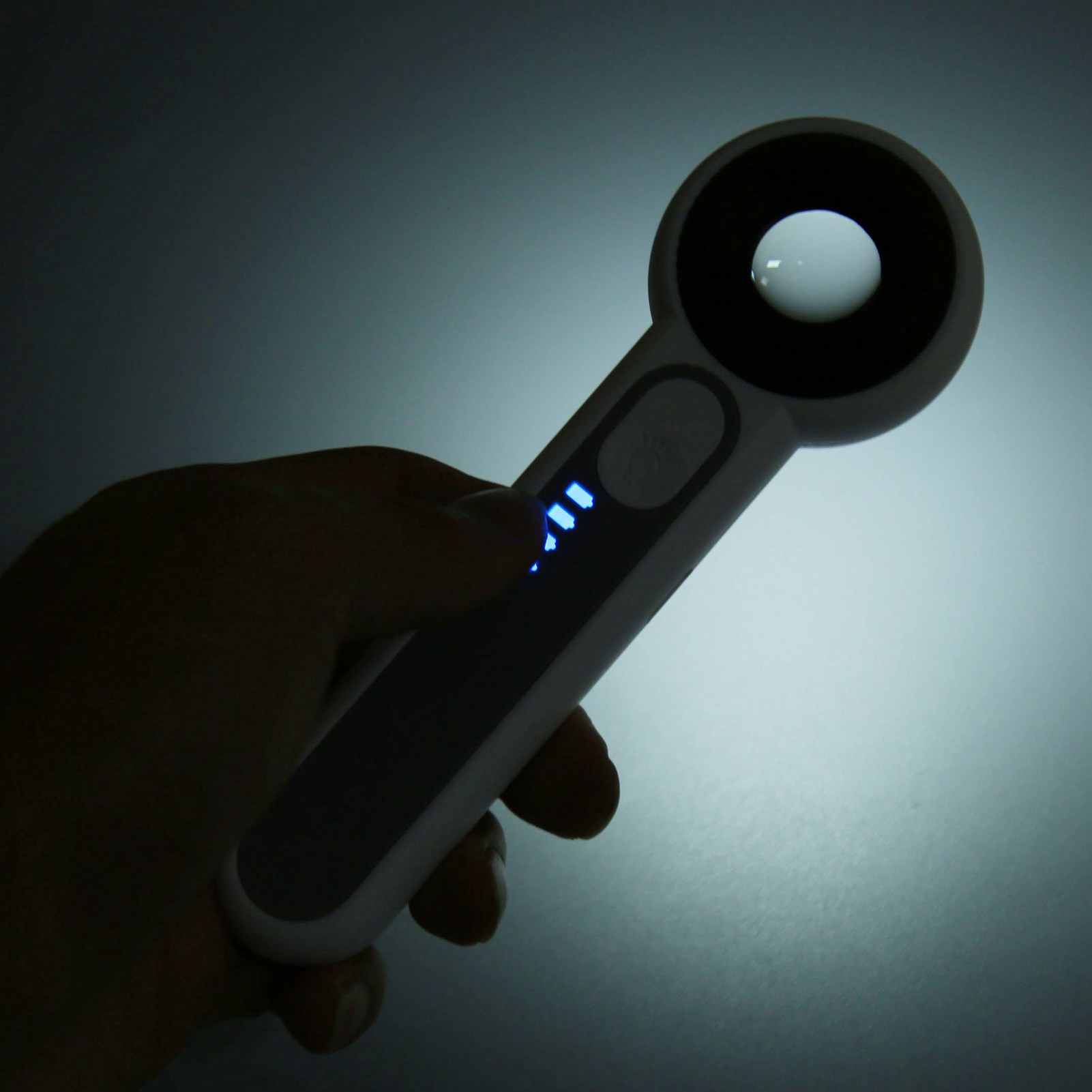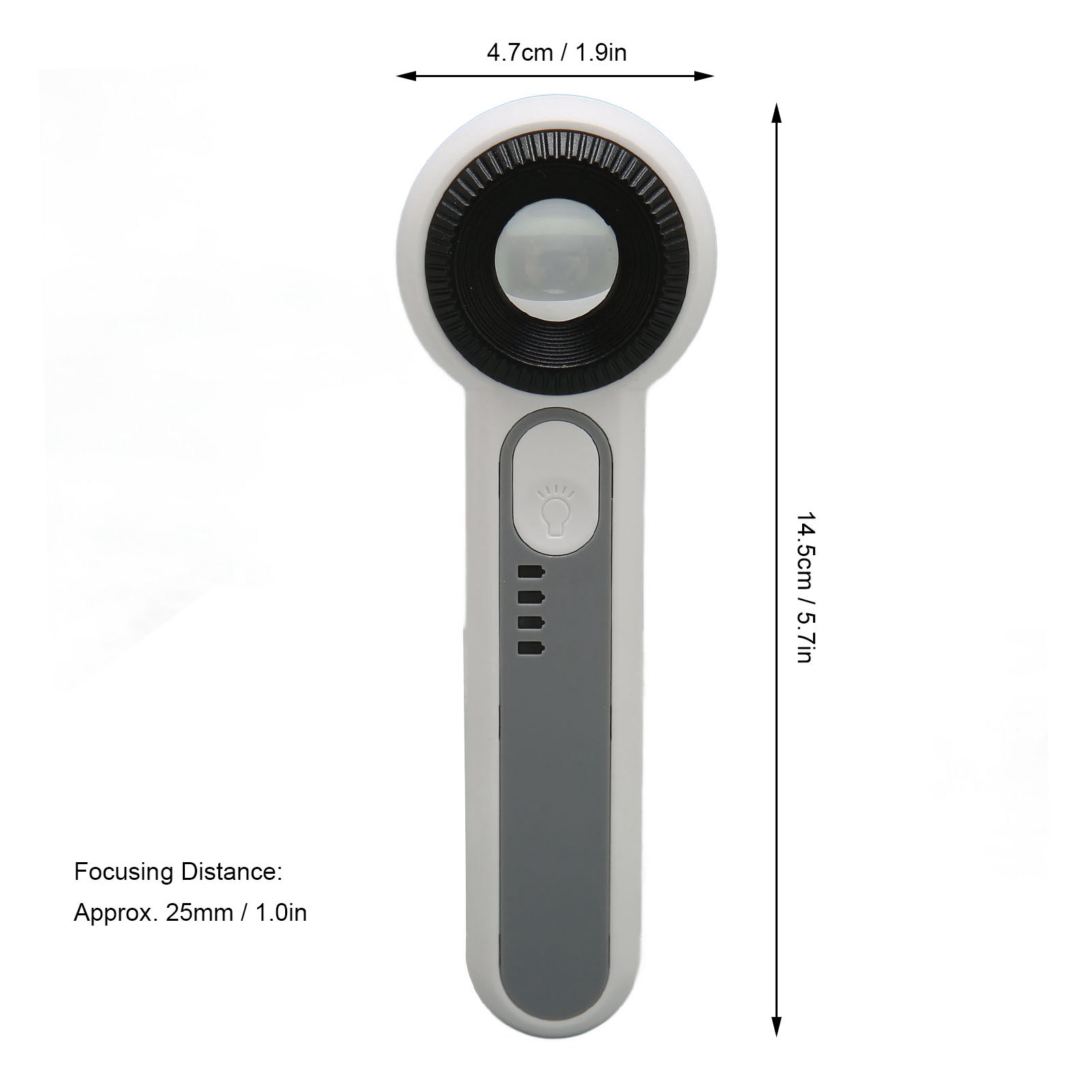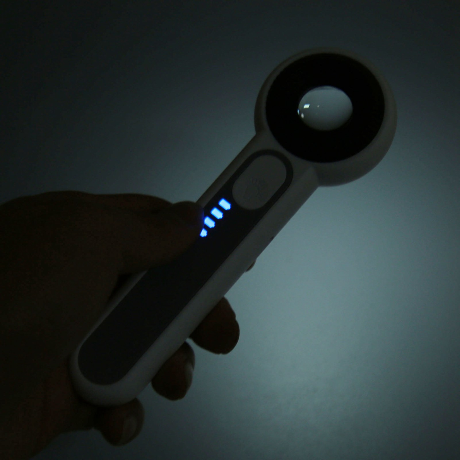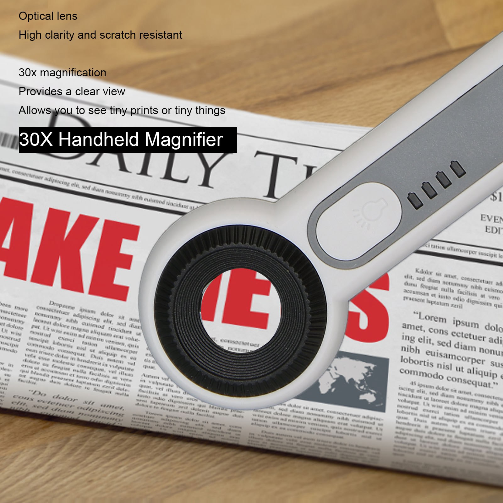 1、30X Magnification: The magnifier offers 30x magnification without distortion, providing a clear view of fine prints or tiny objects. 2、Optical Lens: The handheld magnifier features an optical lens for high clarity and scratch resistance, perfect for coin collectors, jewellers to view details. 3、6 Light Beads: The Handheld magnifier has 6 light beads, providing you with three levels of light to suit your different needs. 4、Battery Indicator: The LED lighted magnifier glasses come with a battery indicator, making it easy for you to keep an eye on the remaining charge for your convenience. 5、Multiple Uses: LED magnifier glasses are best for older people to read small print on books, newspapers, magazines, coupons, stamps or medicine bottles, great for children to observe insects, miniature models, plants and for people with low eyesight.
