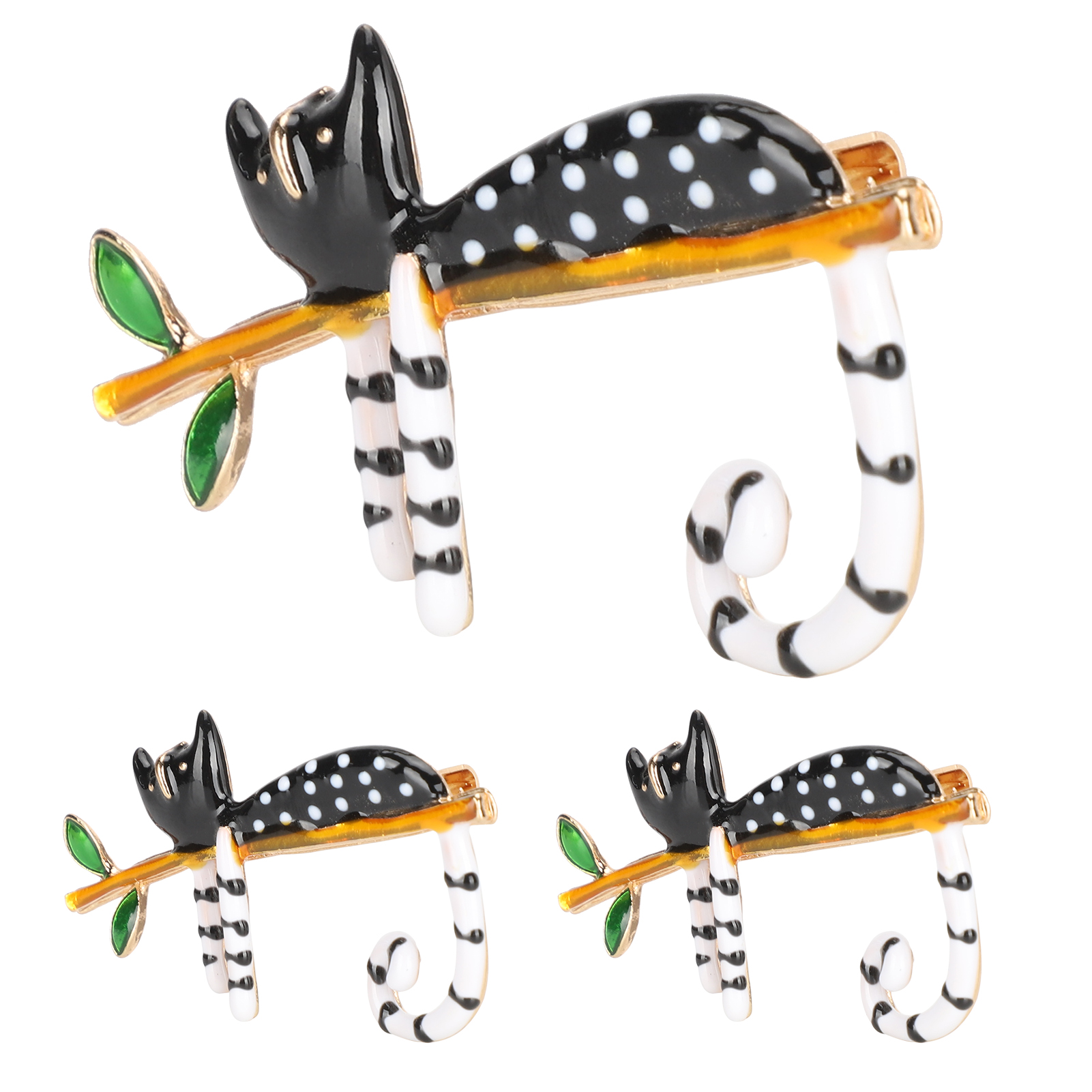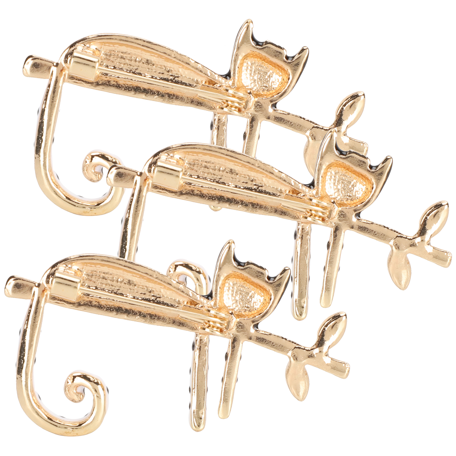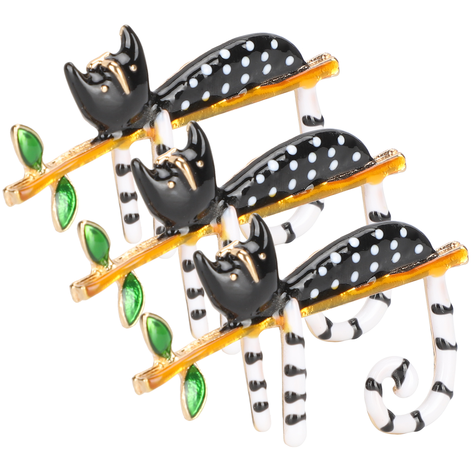 3Pcs Brooch Pins Hand Made Retro Fashion Alloy Cat Shaped DIY Wedding Bouquet Kit Black