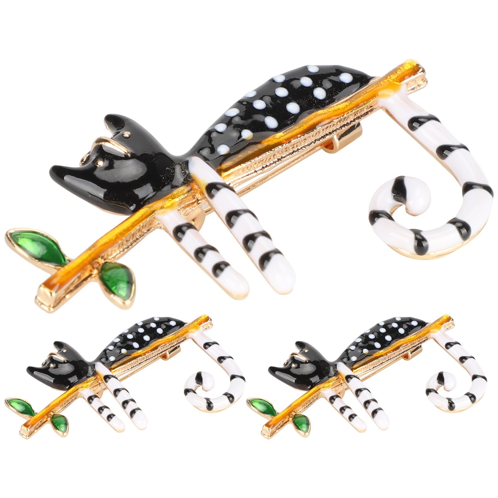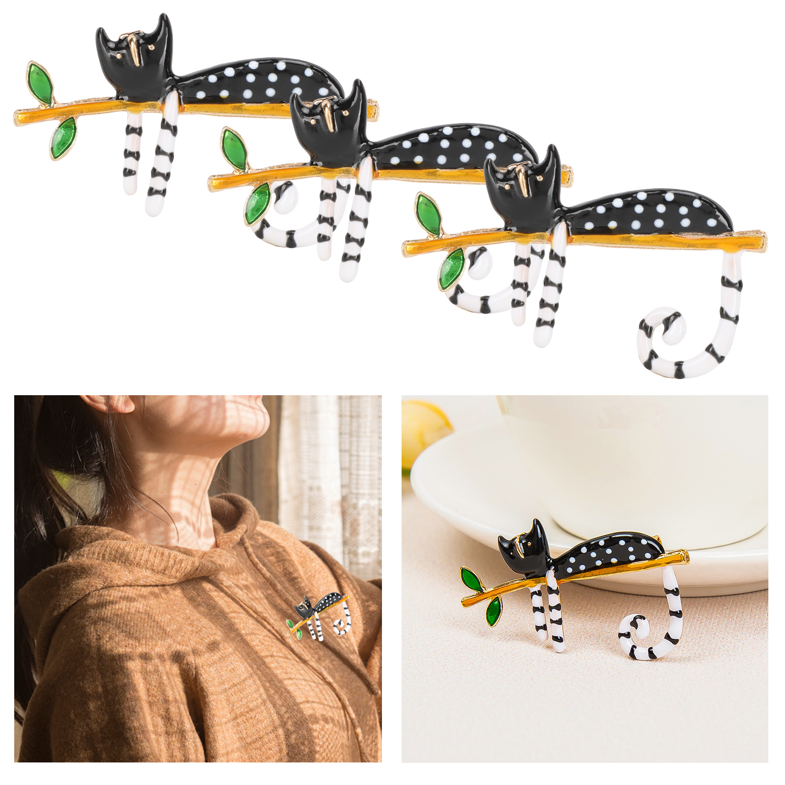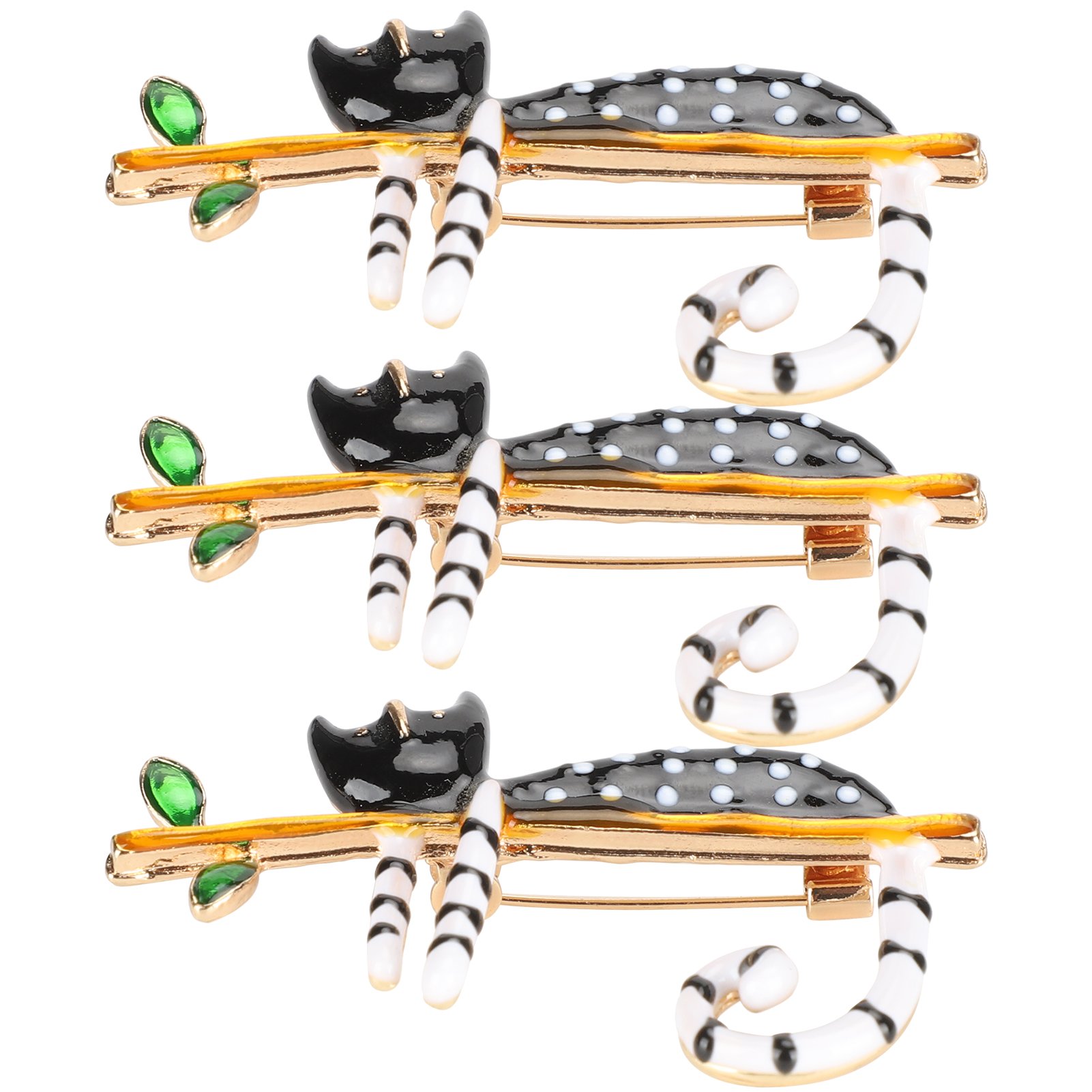 3Pcs Brooch Pins Hand Made Retro Fashion Alloy Cat Shaped DIY Wedding Bouquet Kit Black