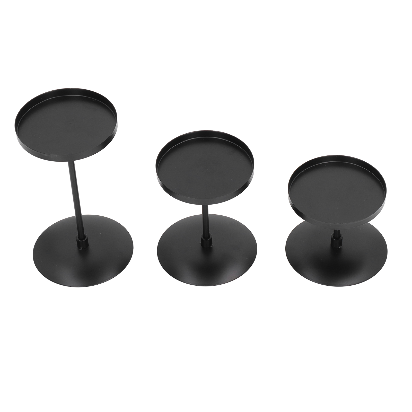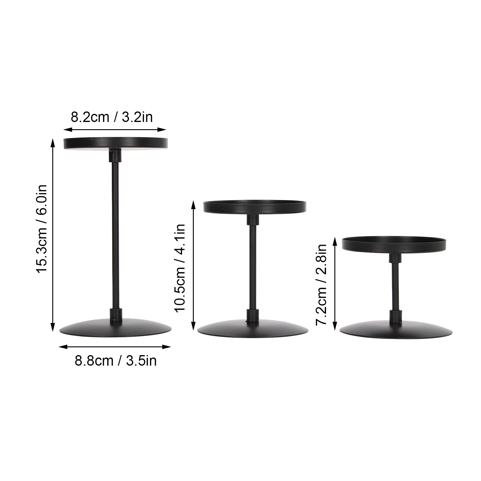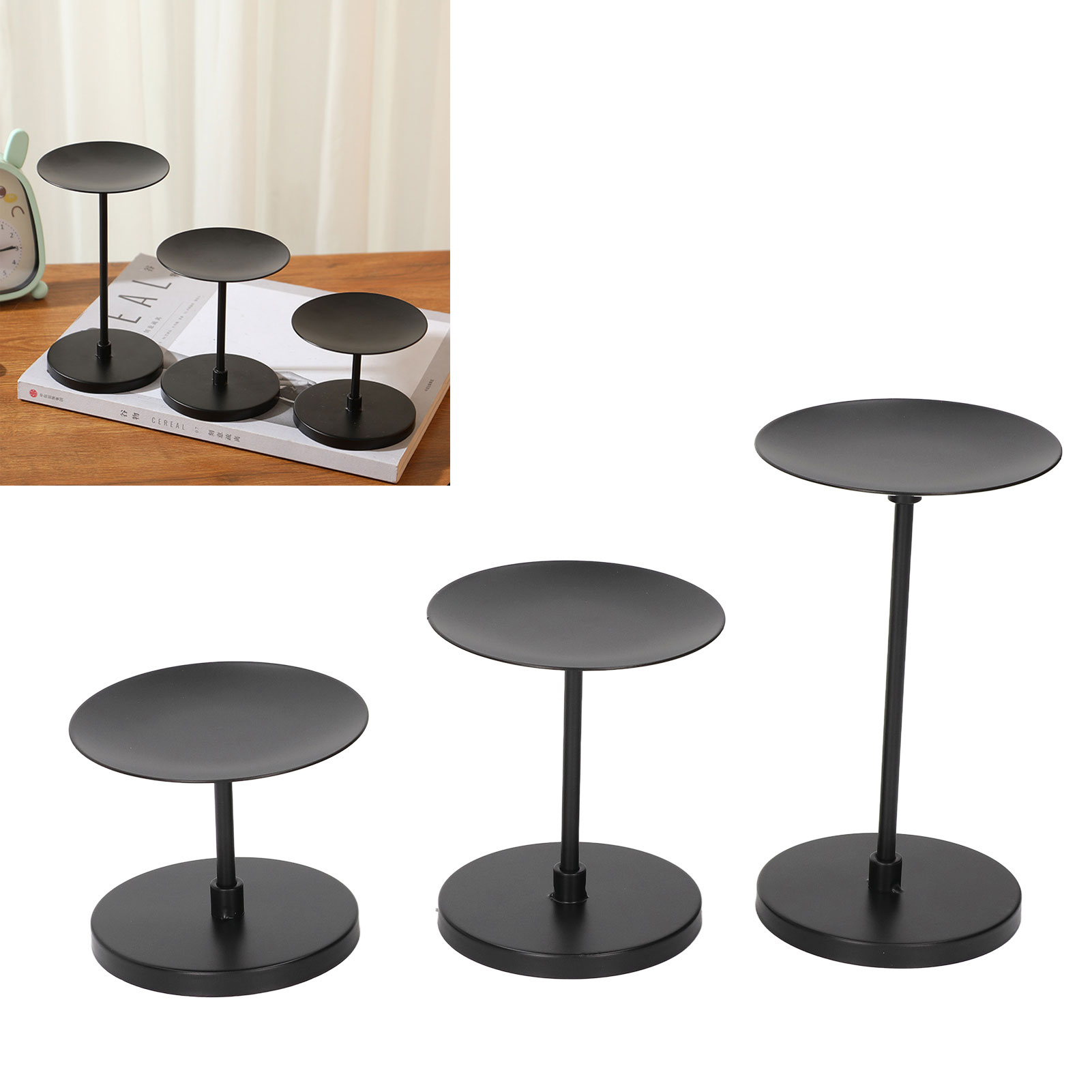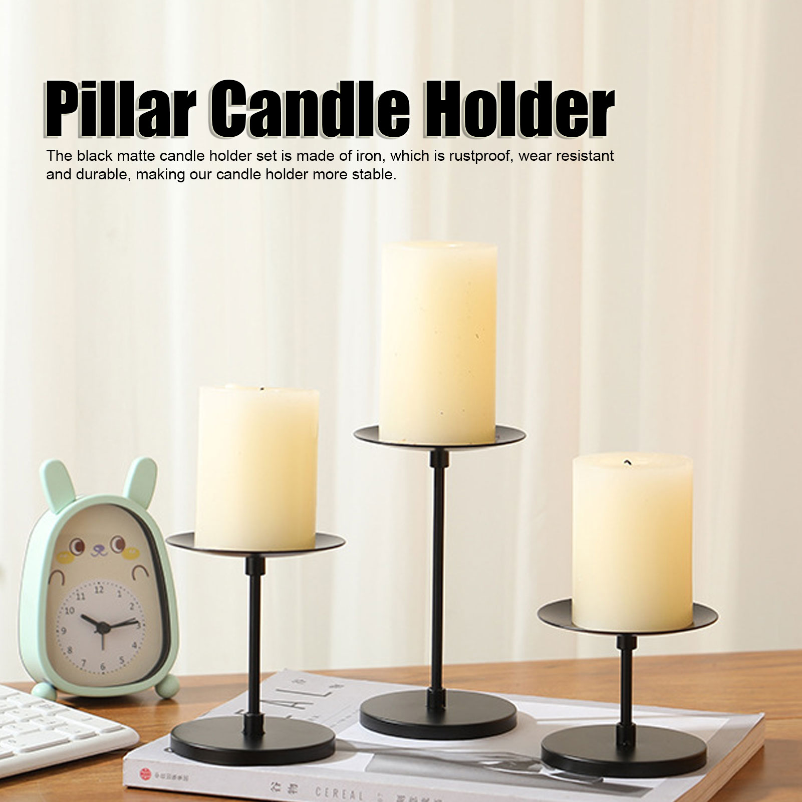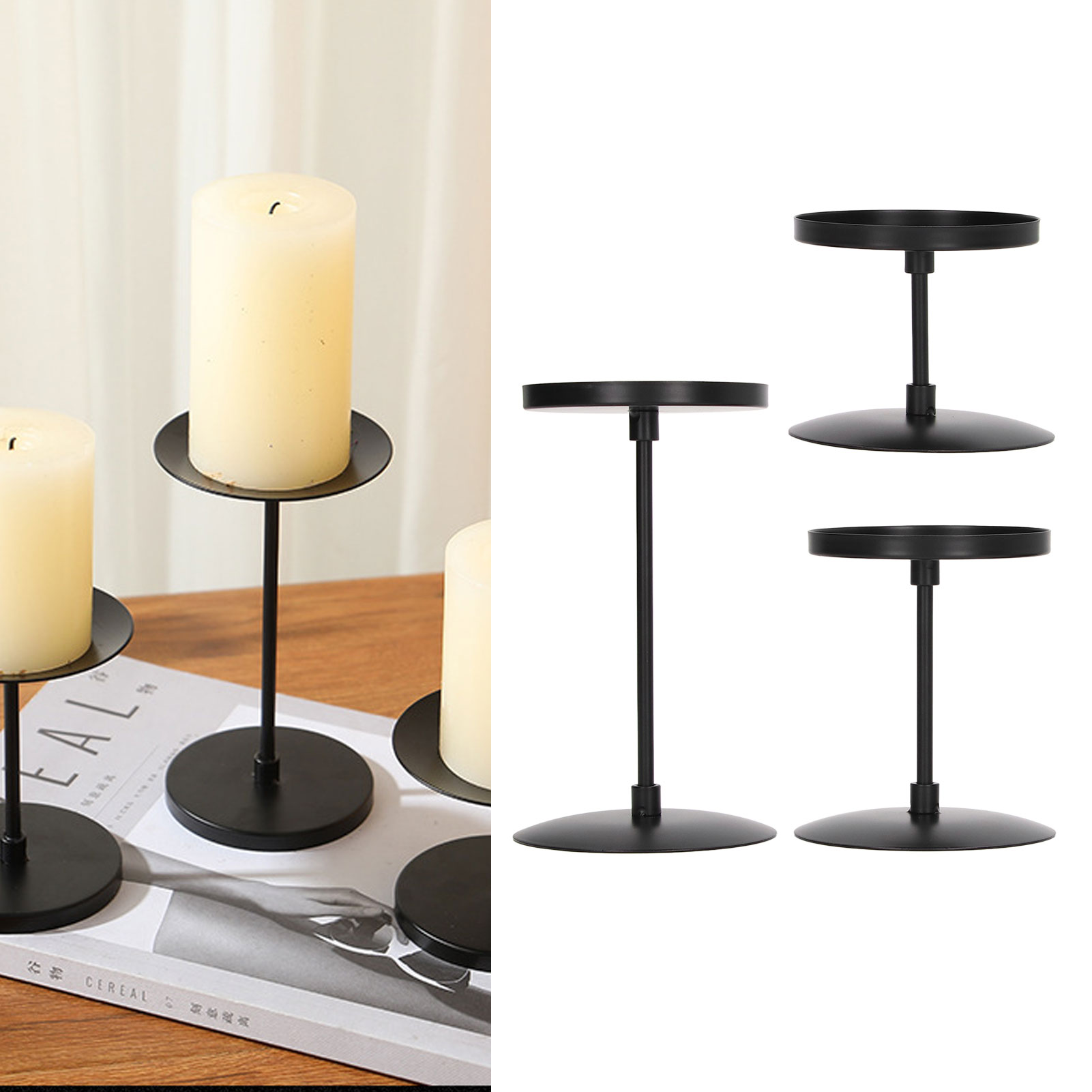 3pcs Pillar Candle Holder Black Double Sided Black Piano Paint Antirust Iron Pillar Candle Holder for Incense Cones Wedding