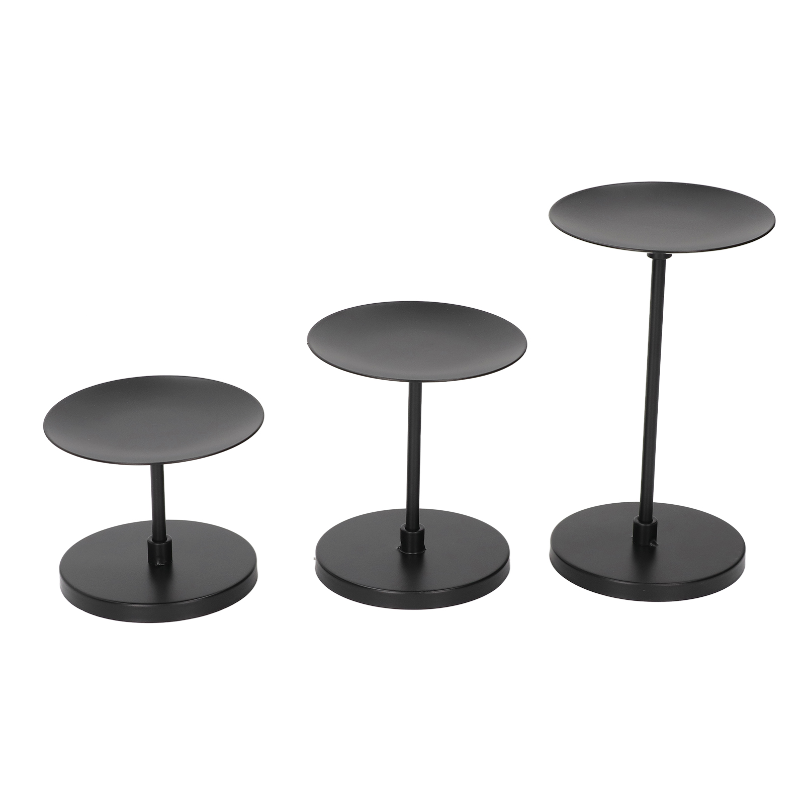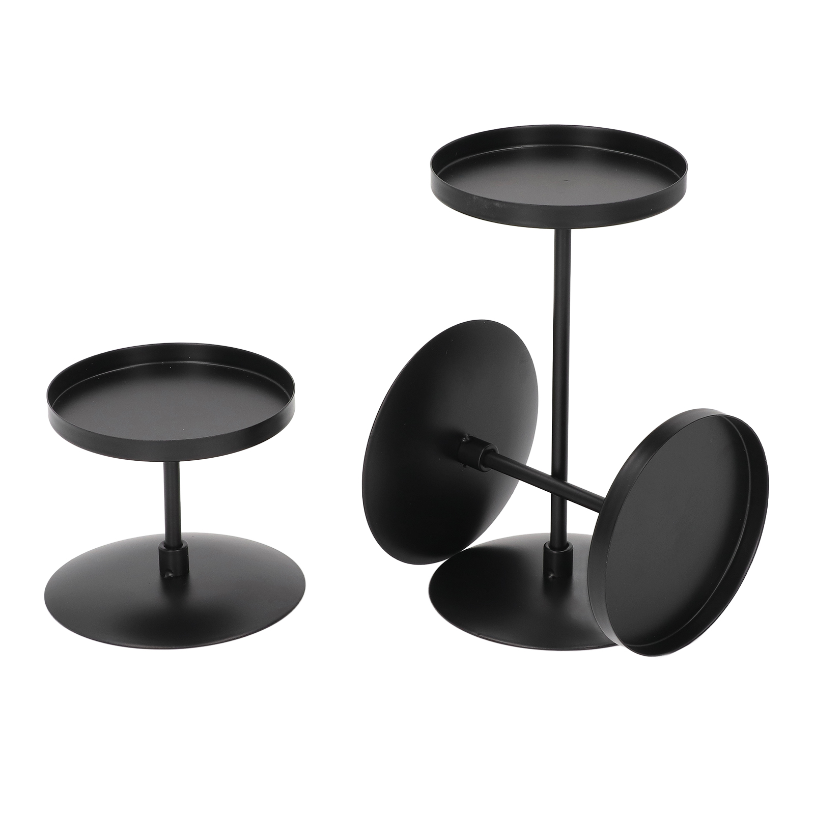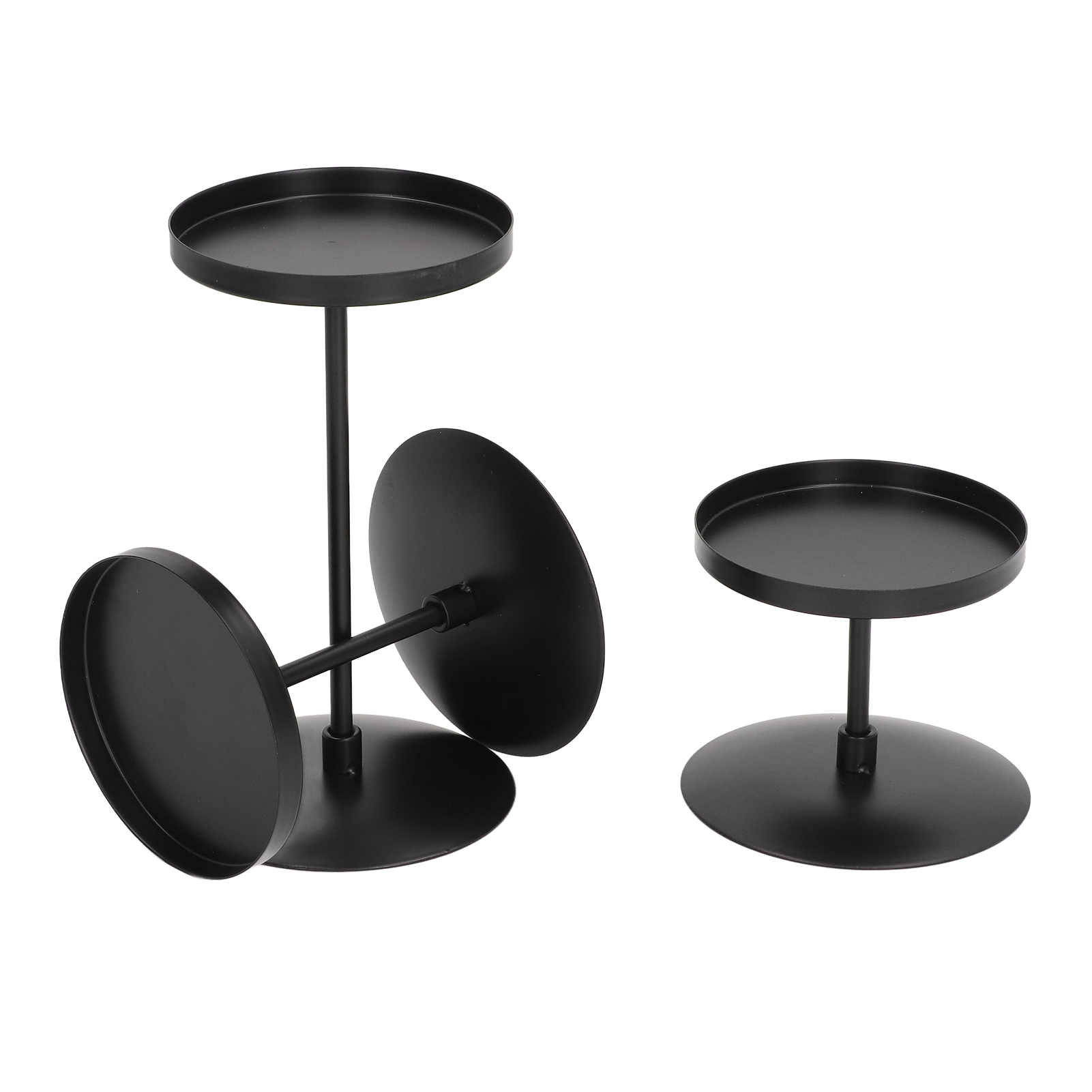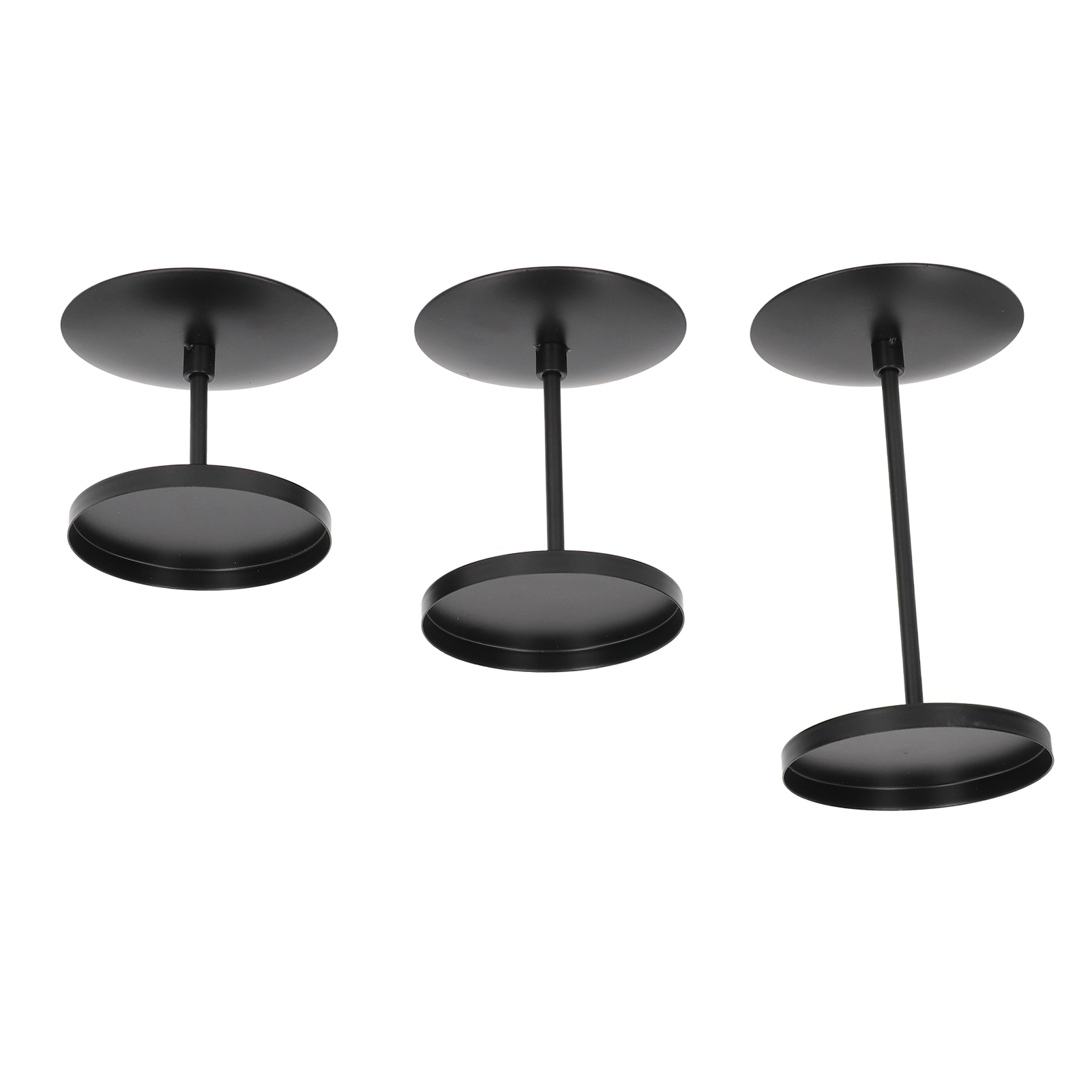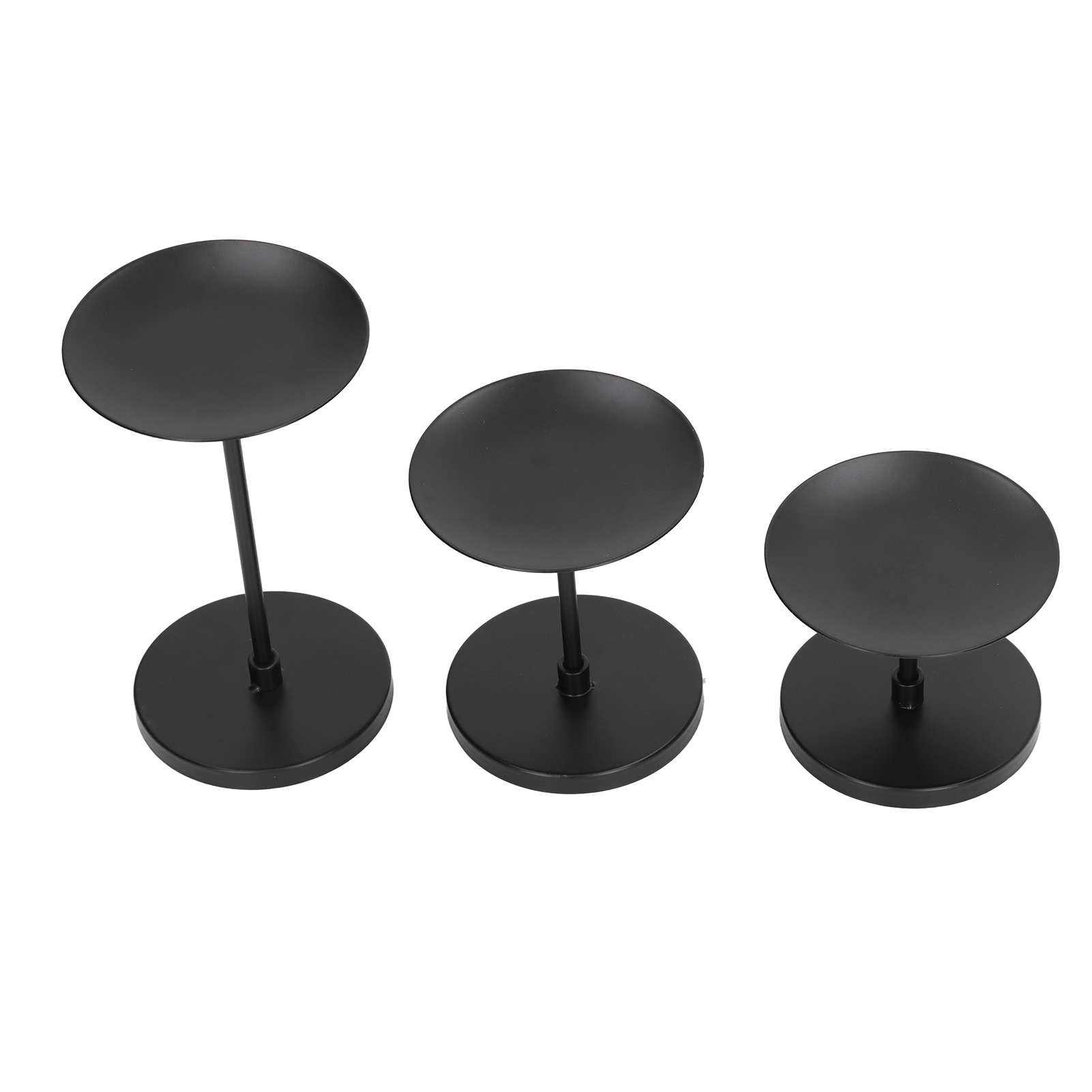 3pcs Pillar Candle Holder Black Double Sided Black Piano Paint Antirust Iron Pillar Candle Holder for Incense Cones Wedding