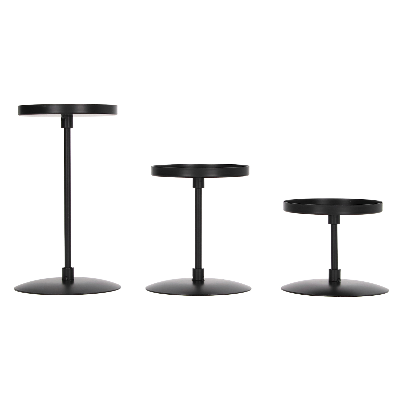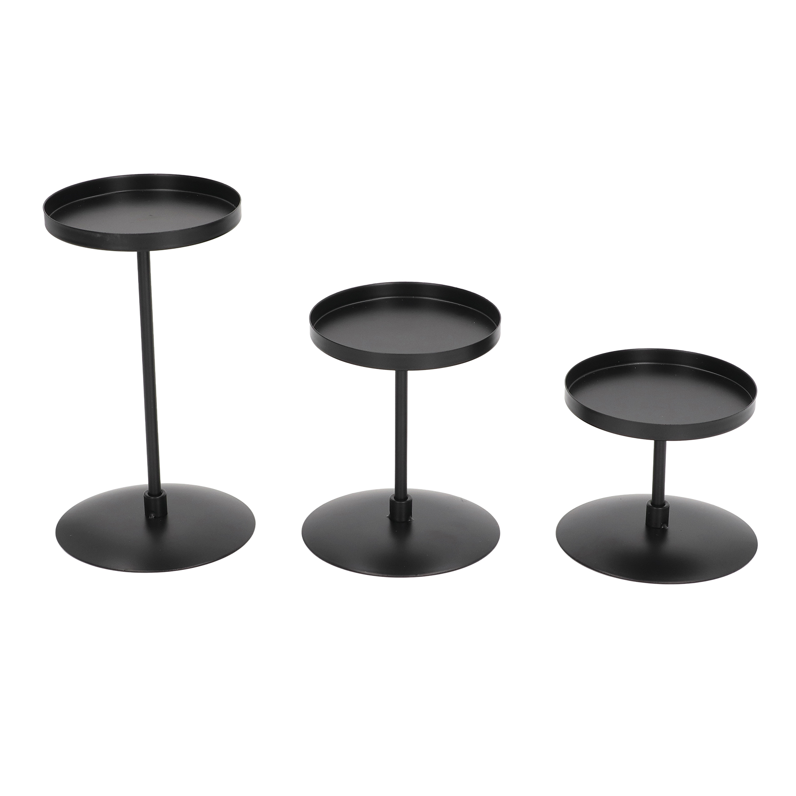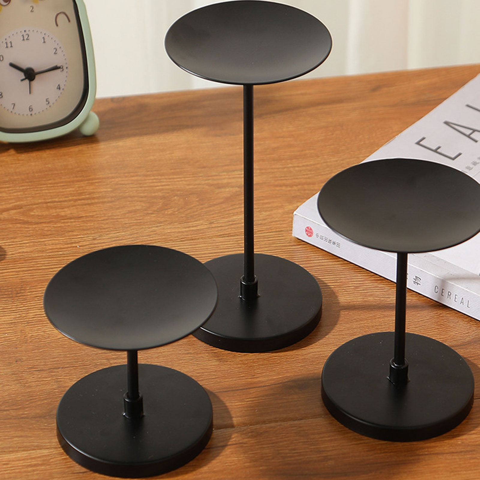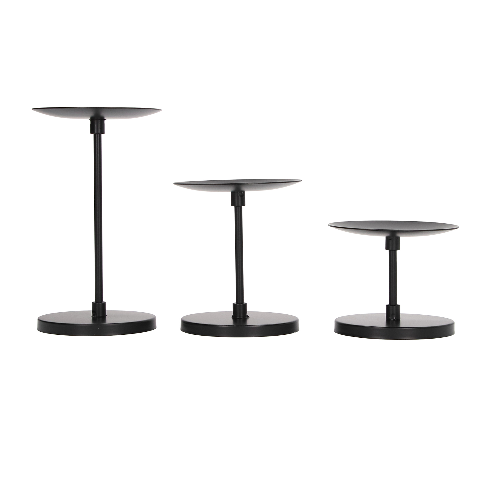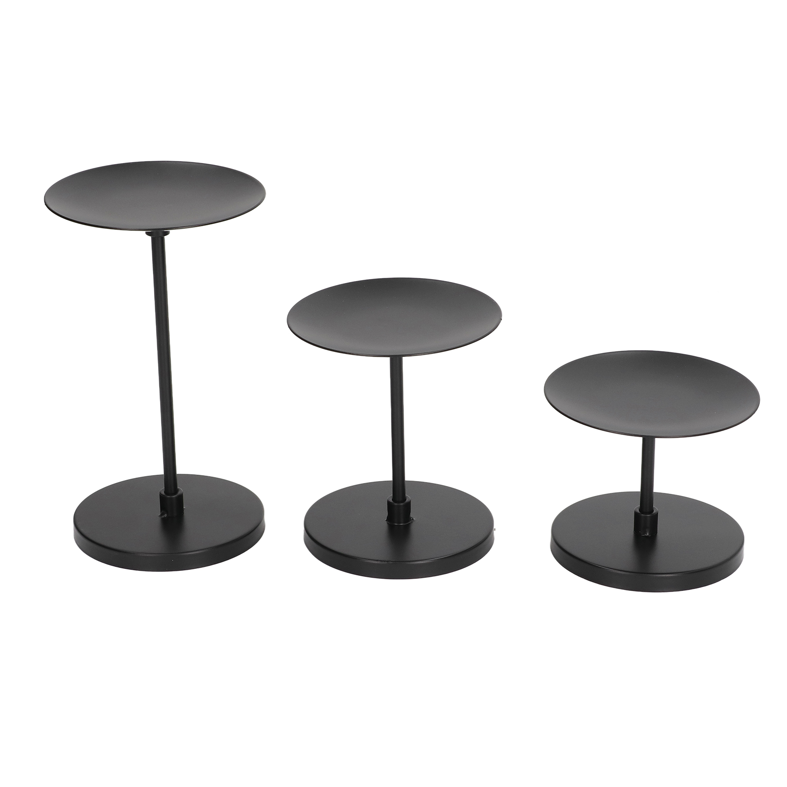 3pcs Pillar Candle Holder Black Double Sided Black Piano Paint Antirust Iron Pillar Candle Holder for Incense Cones Wedding