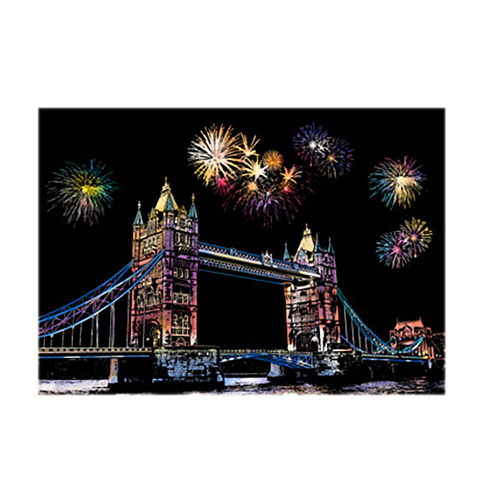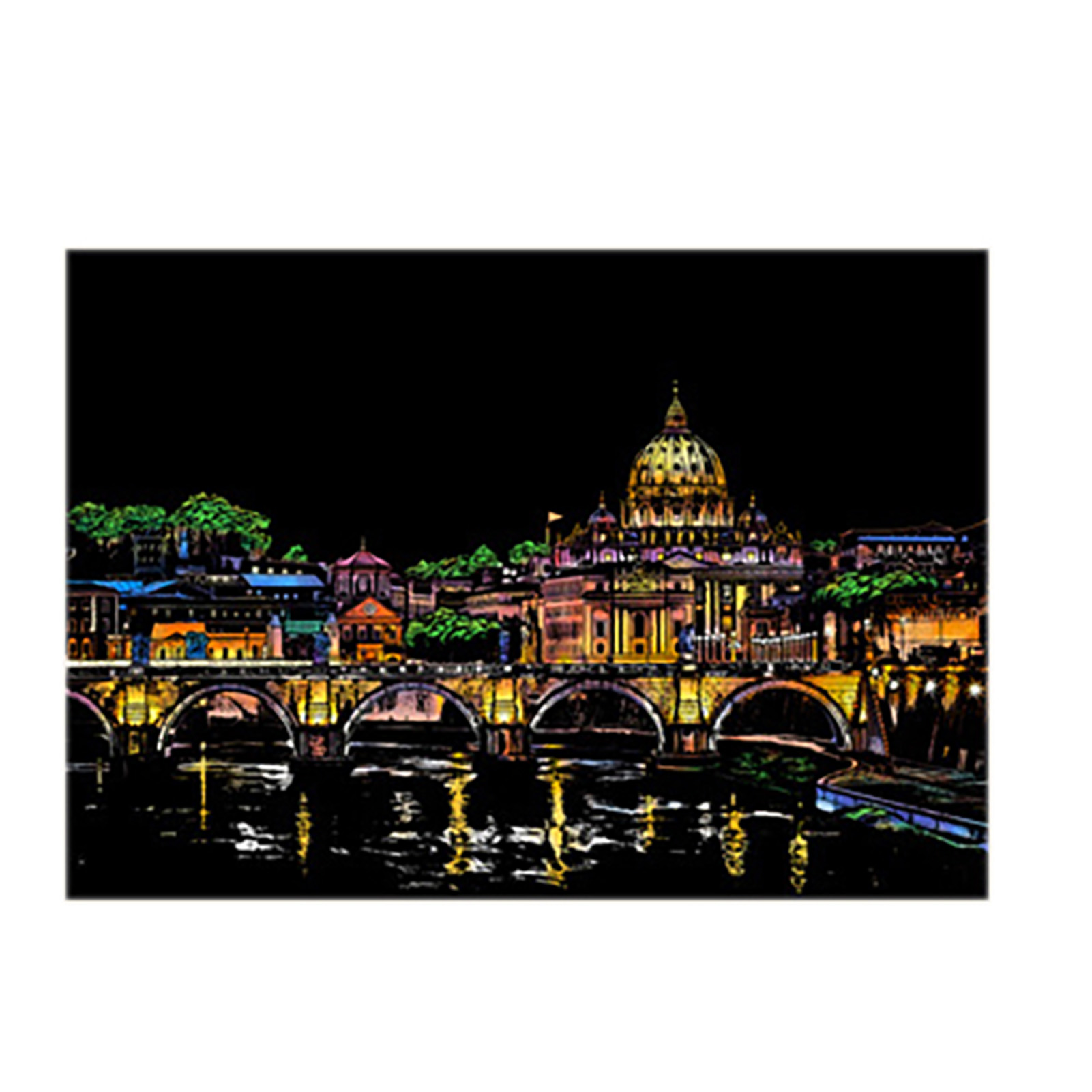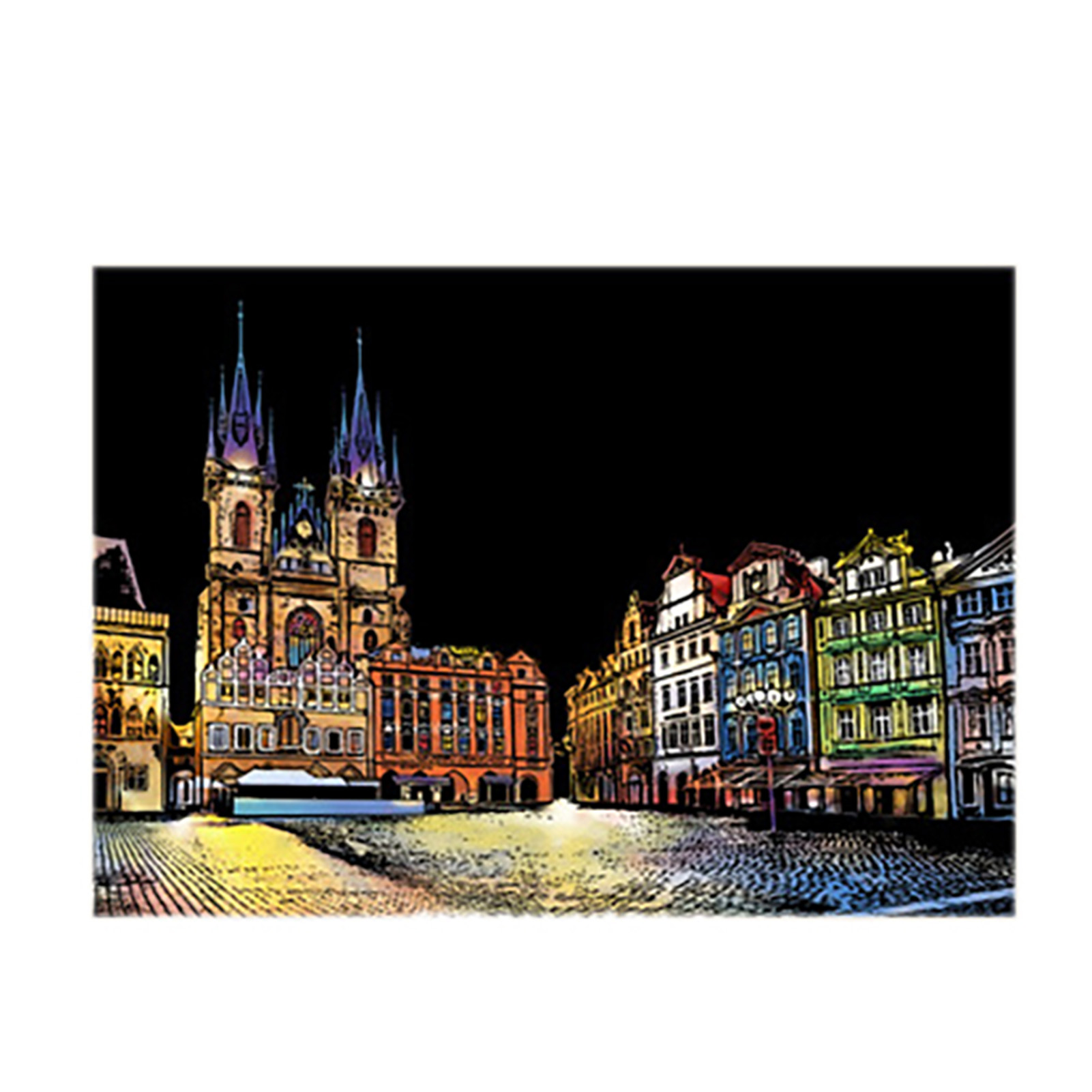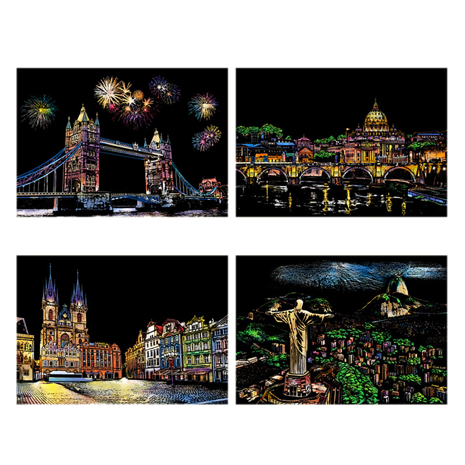 4 Sheets Scratch Paper DIY Handicraft A4 White Cardboard Landscape Scratchboard Scratch Painting Paper Beautiful City