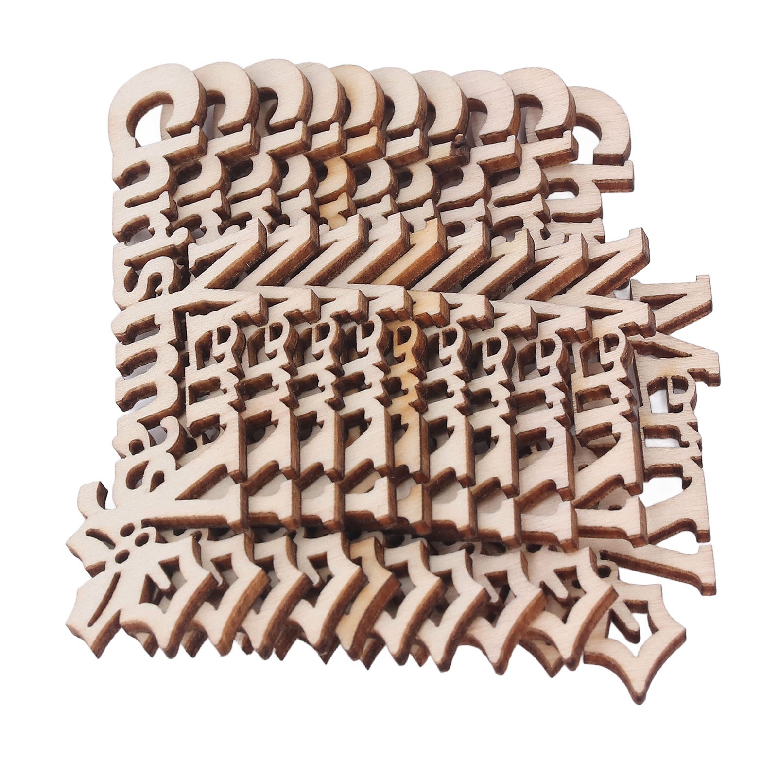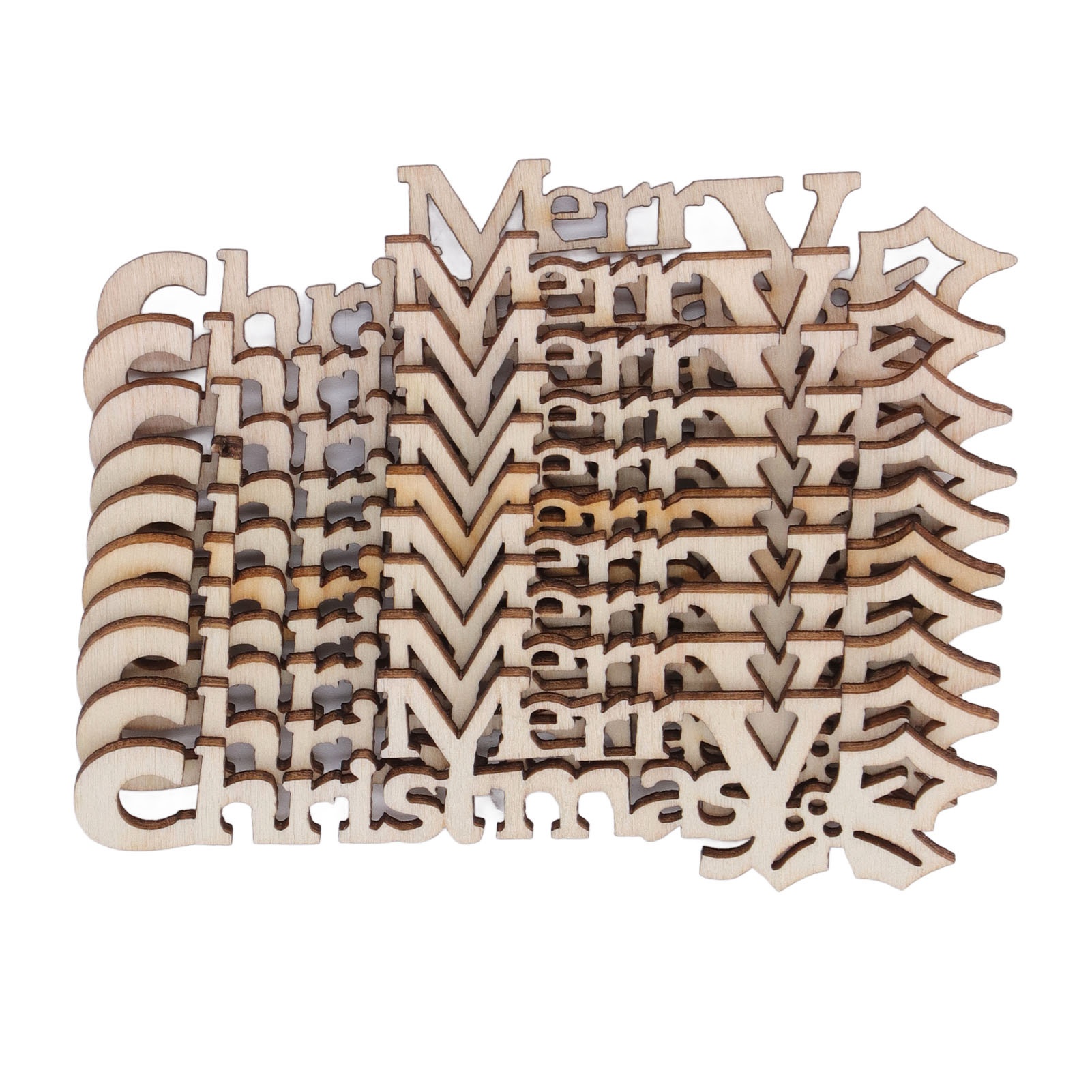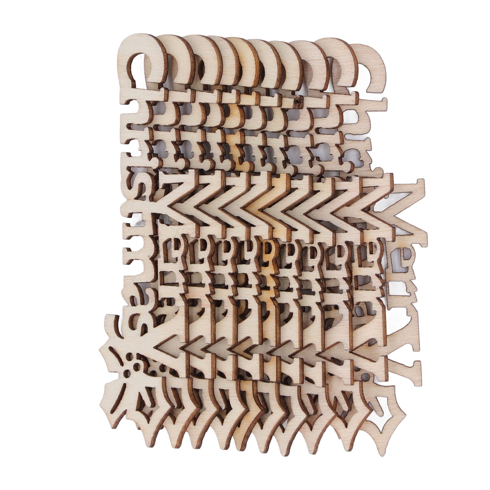 40Pcs Christmas Words Slices Density Board Christmas Tree Hanging Ornament for Christmas DIY Craft Accessory
