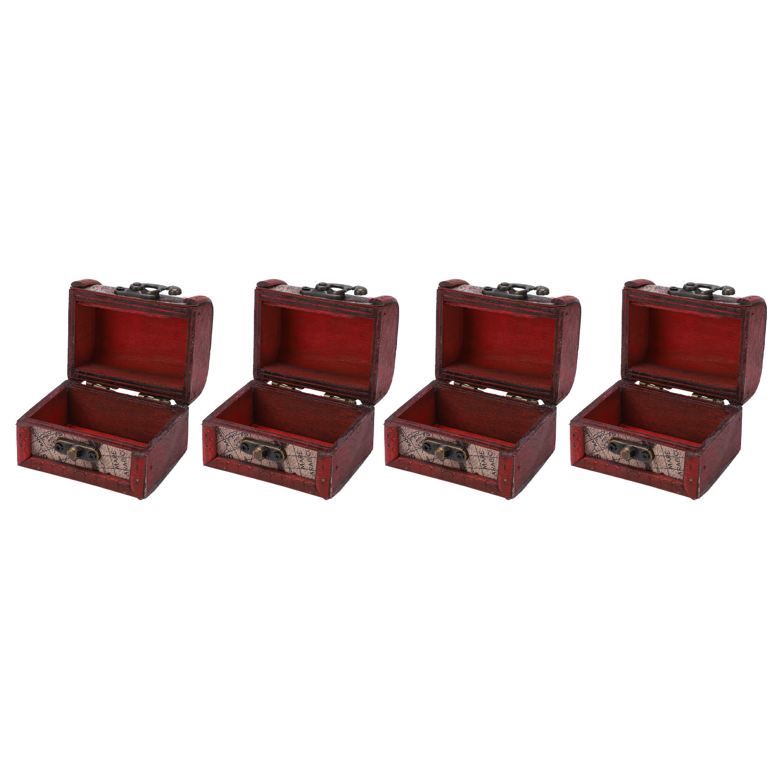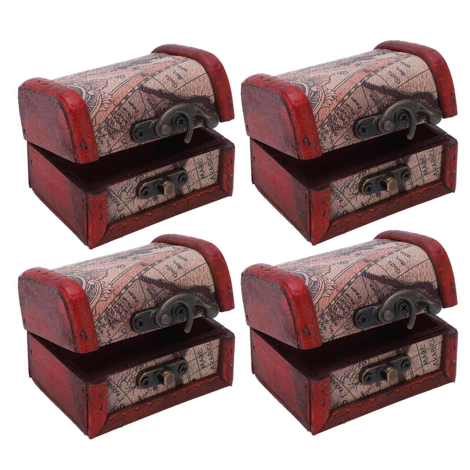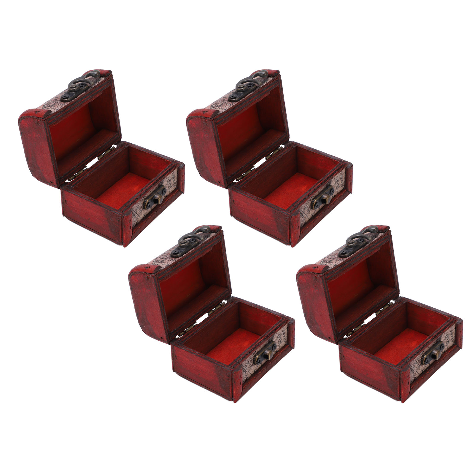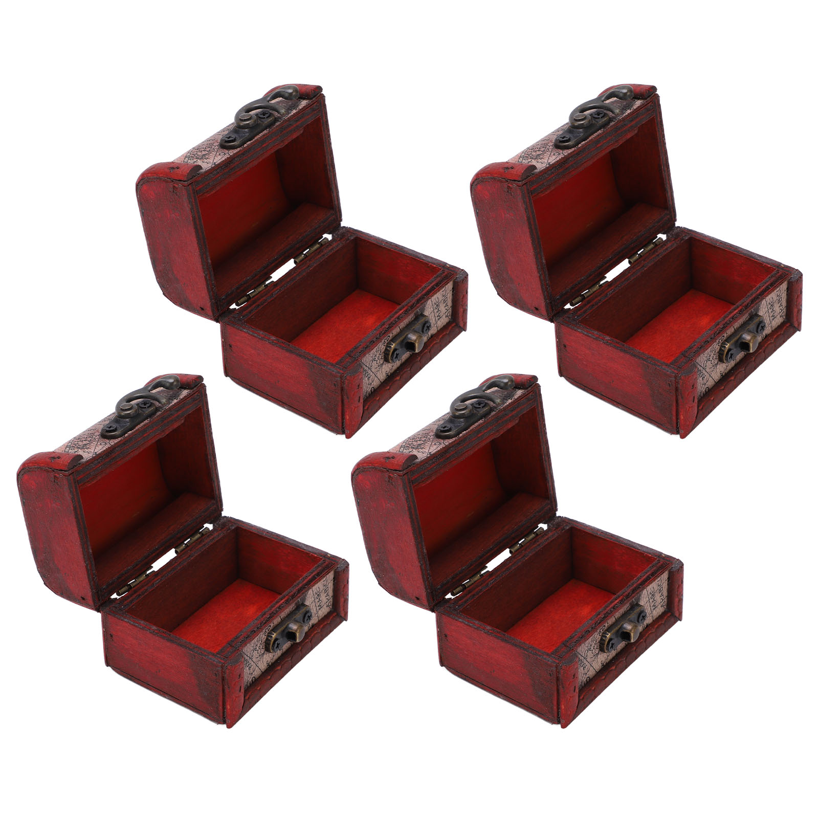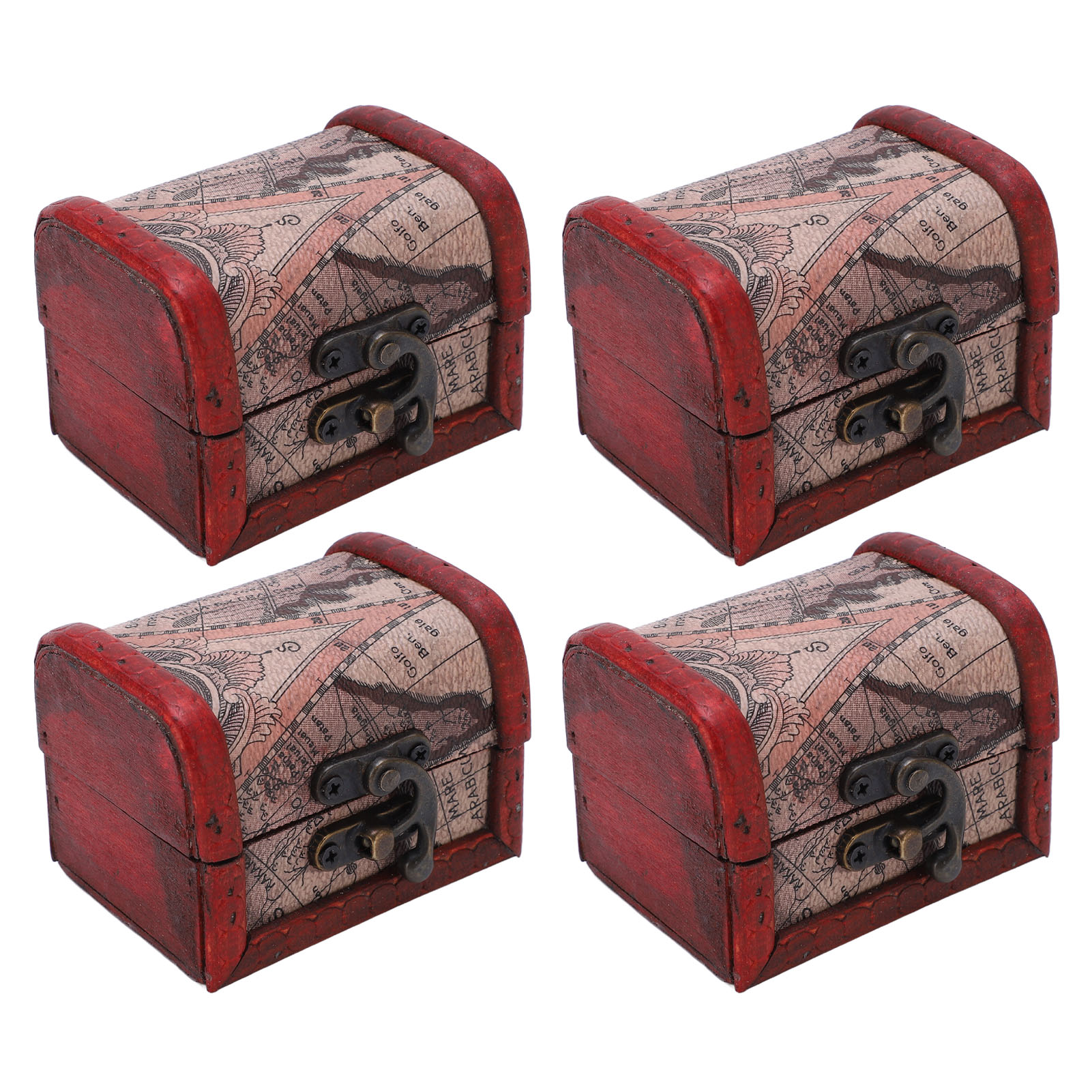 4Pcs Wooden Jewelry Box Retro Style Grass Tree High Strength Odorless Durable Safety Lock Small Jewelry Box