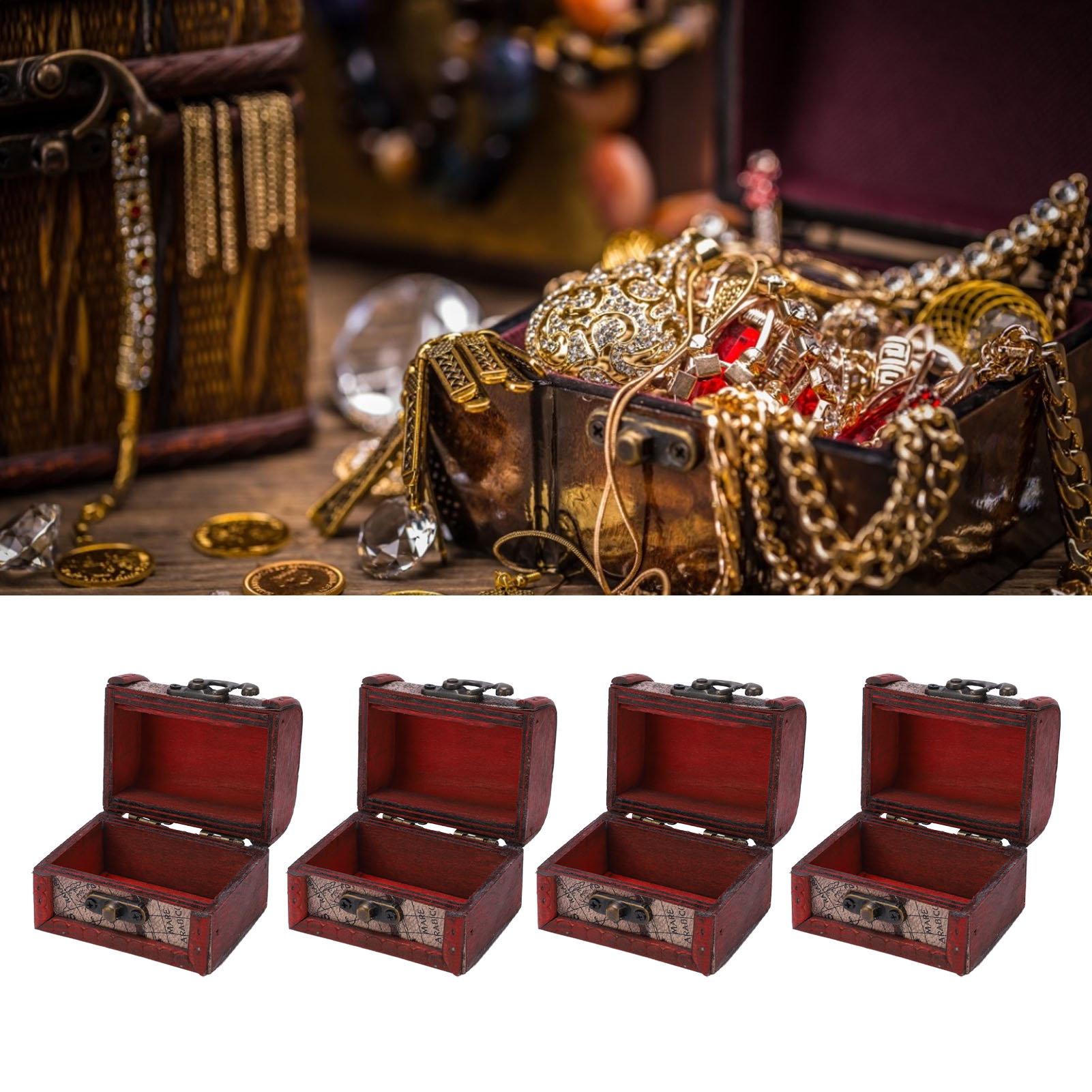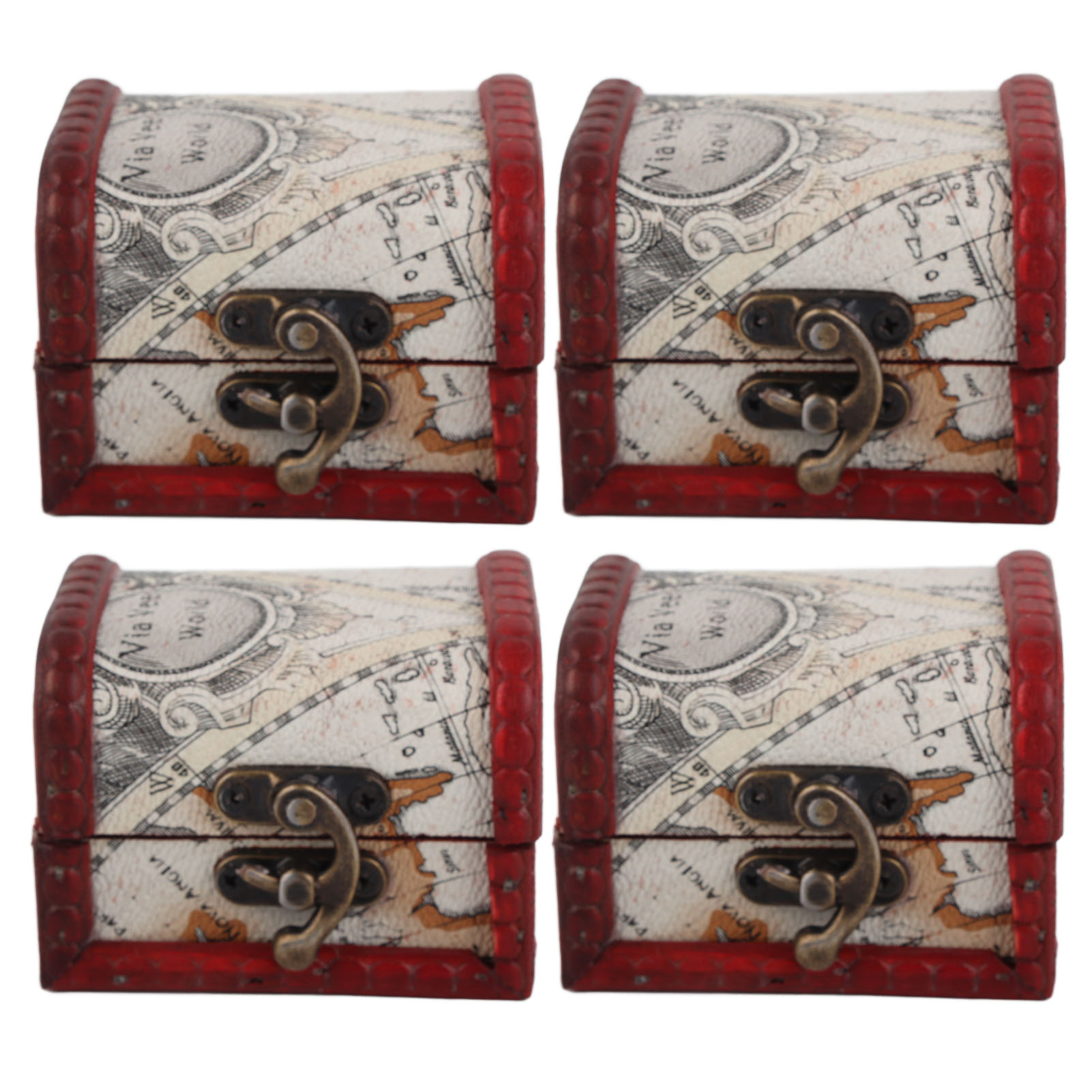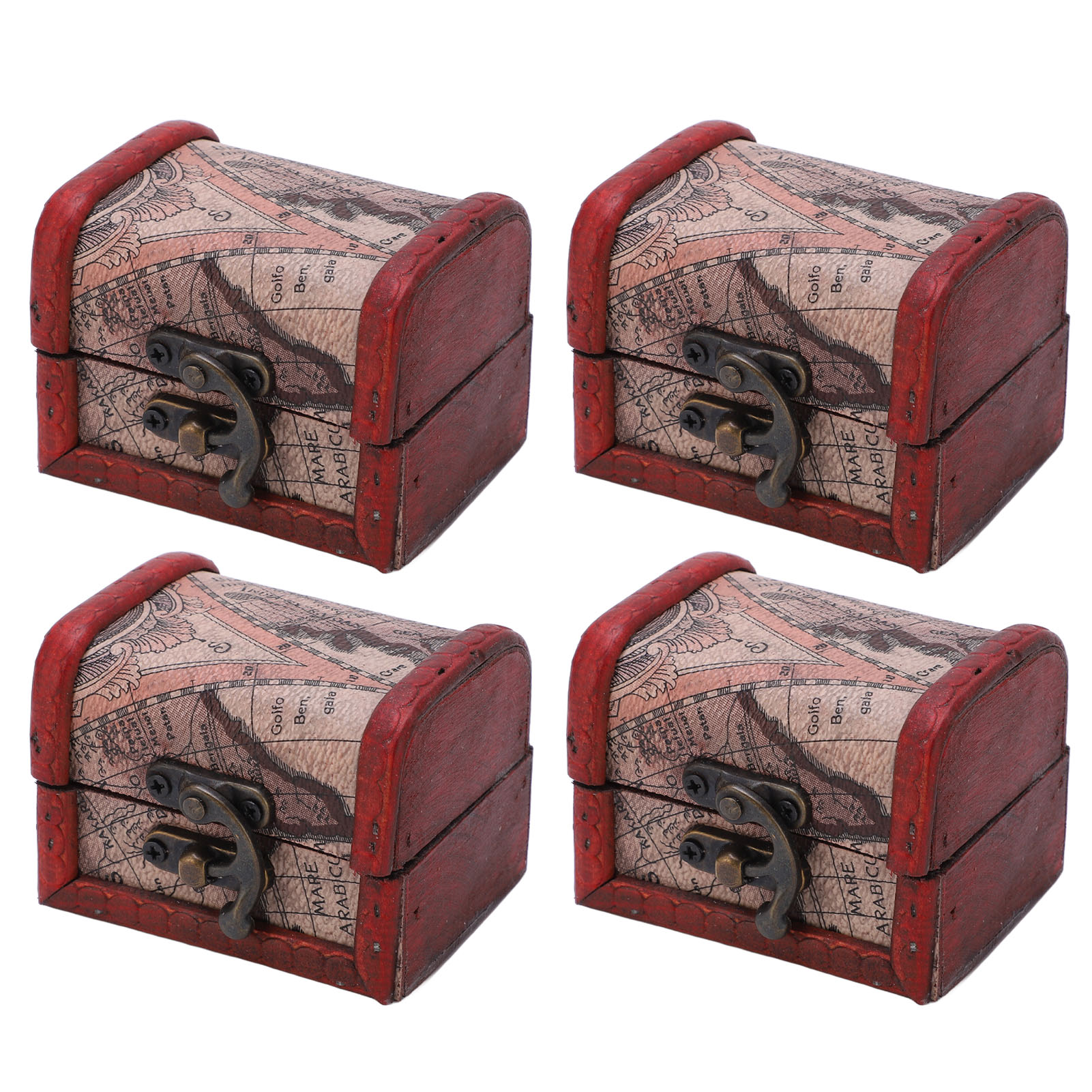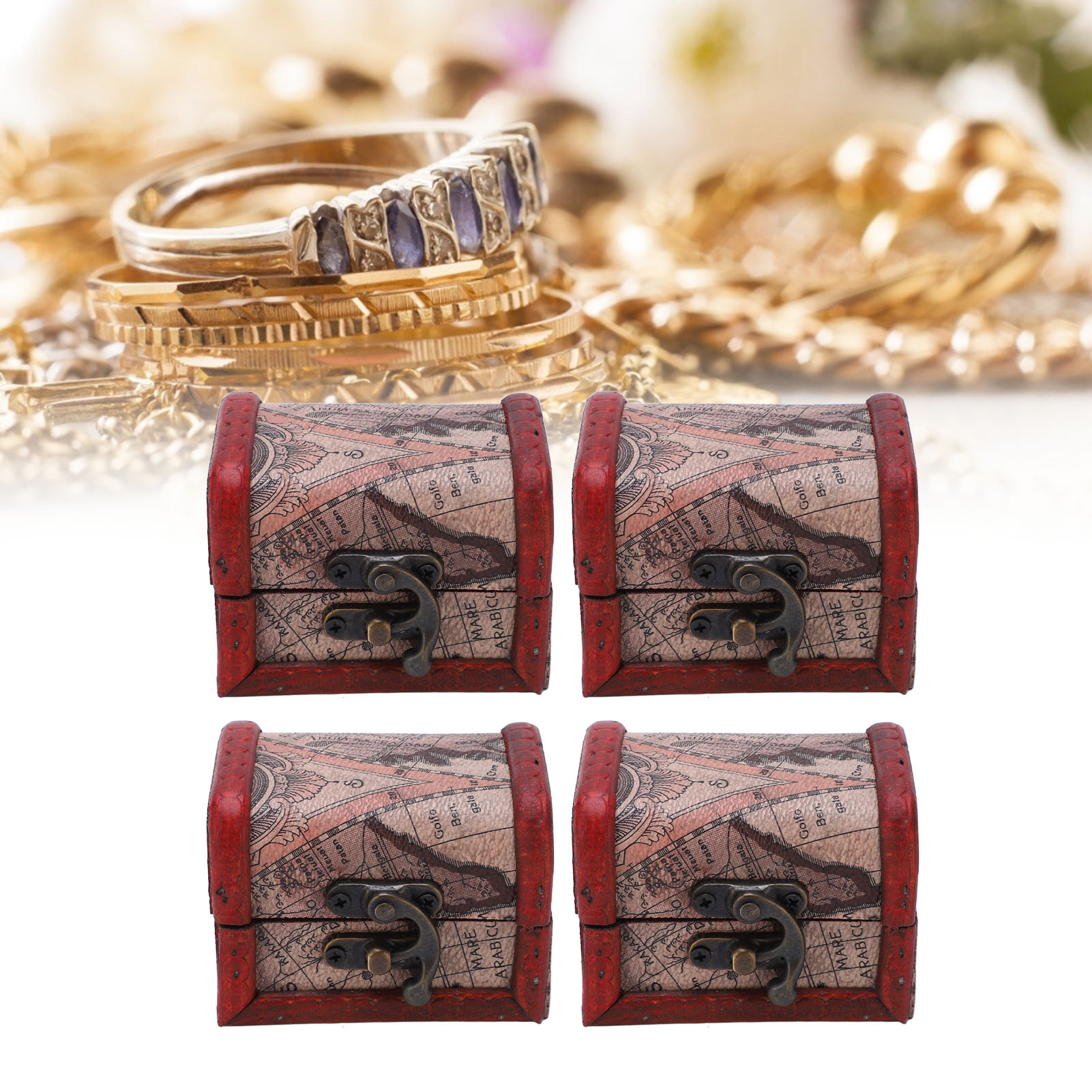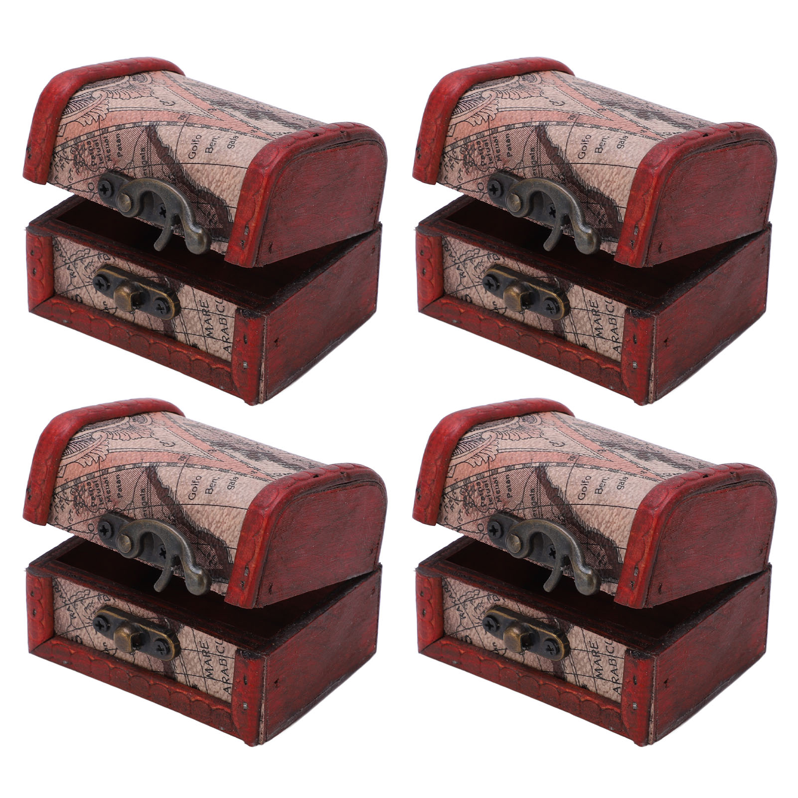 4Pcs Wooden Jewelry Box Retro Style Grass Tree High Strength Odorless Durable Safety Lock Small Jewelry Box