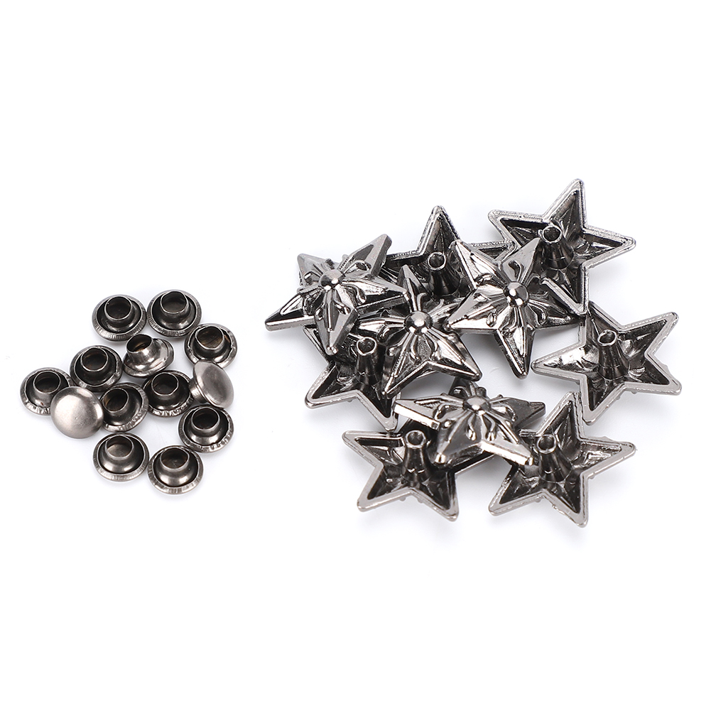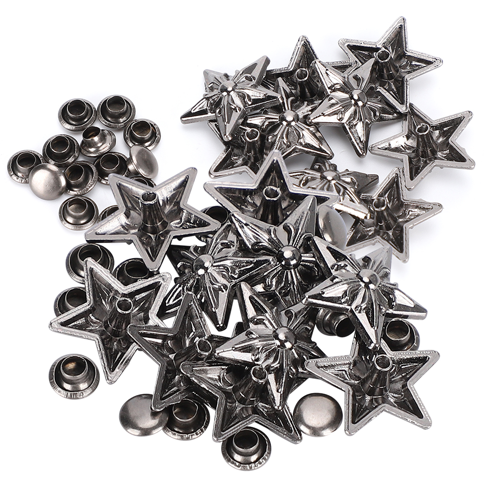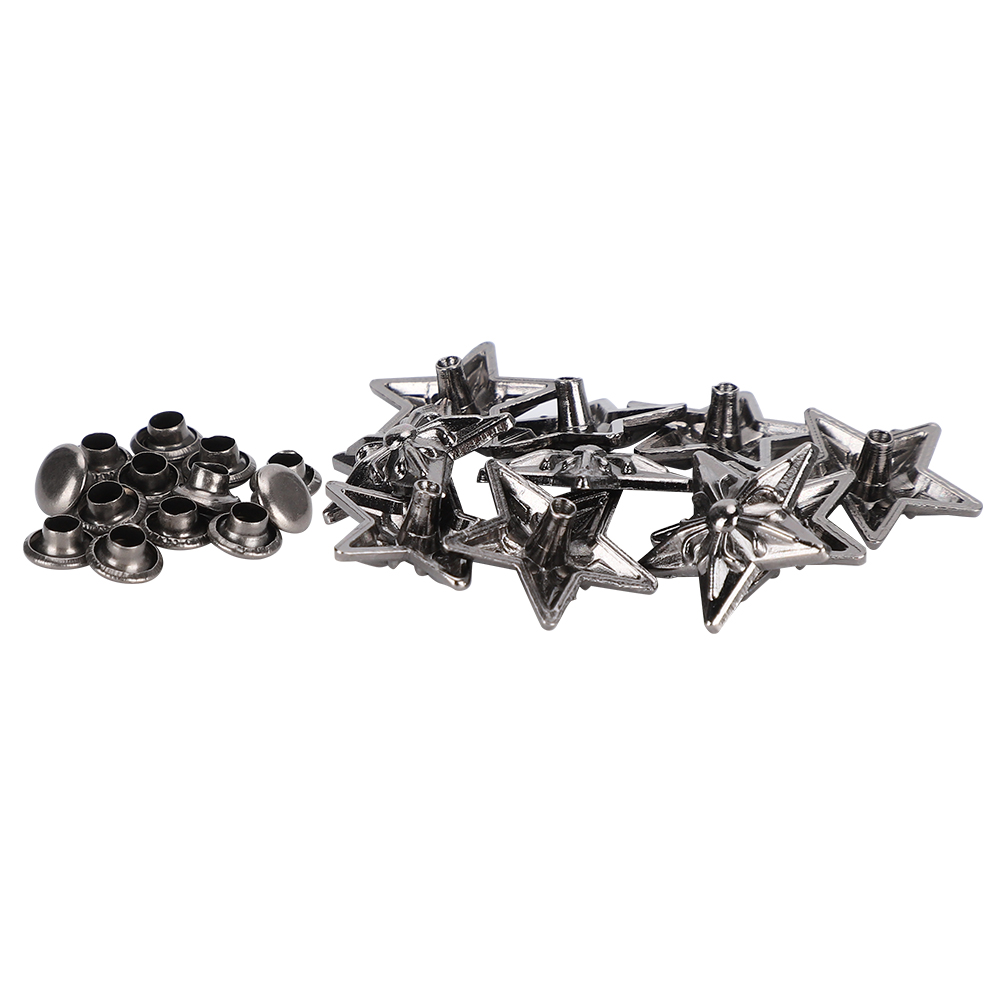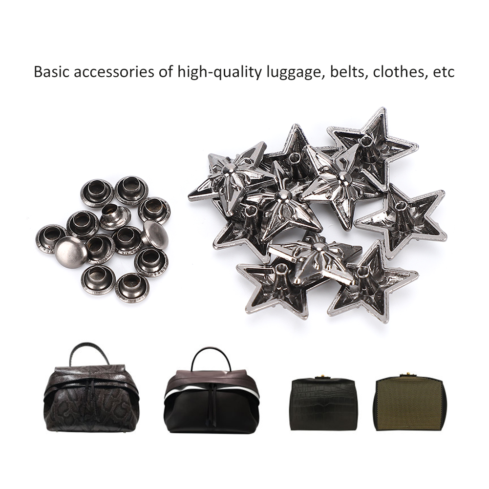 1、Superb technology bring smoother edges, surface plating treatment helps to anti‑rust, anti‑corrosion. 2、Alloy rivets are basic accessories for making high‑quality luggage, belts, clothes, etc. 3、Equipped with screws for easy installation, just make an indentation with an awl or chisel. Drive the screws against the leather. 4、Gun‑color, elegant and versatile, not easy to fade, best choice for luggage decoration. 5、Made of high class alloy and iron material of good quality, which is sturdy and durable.