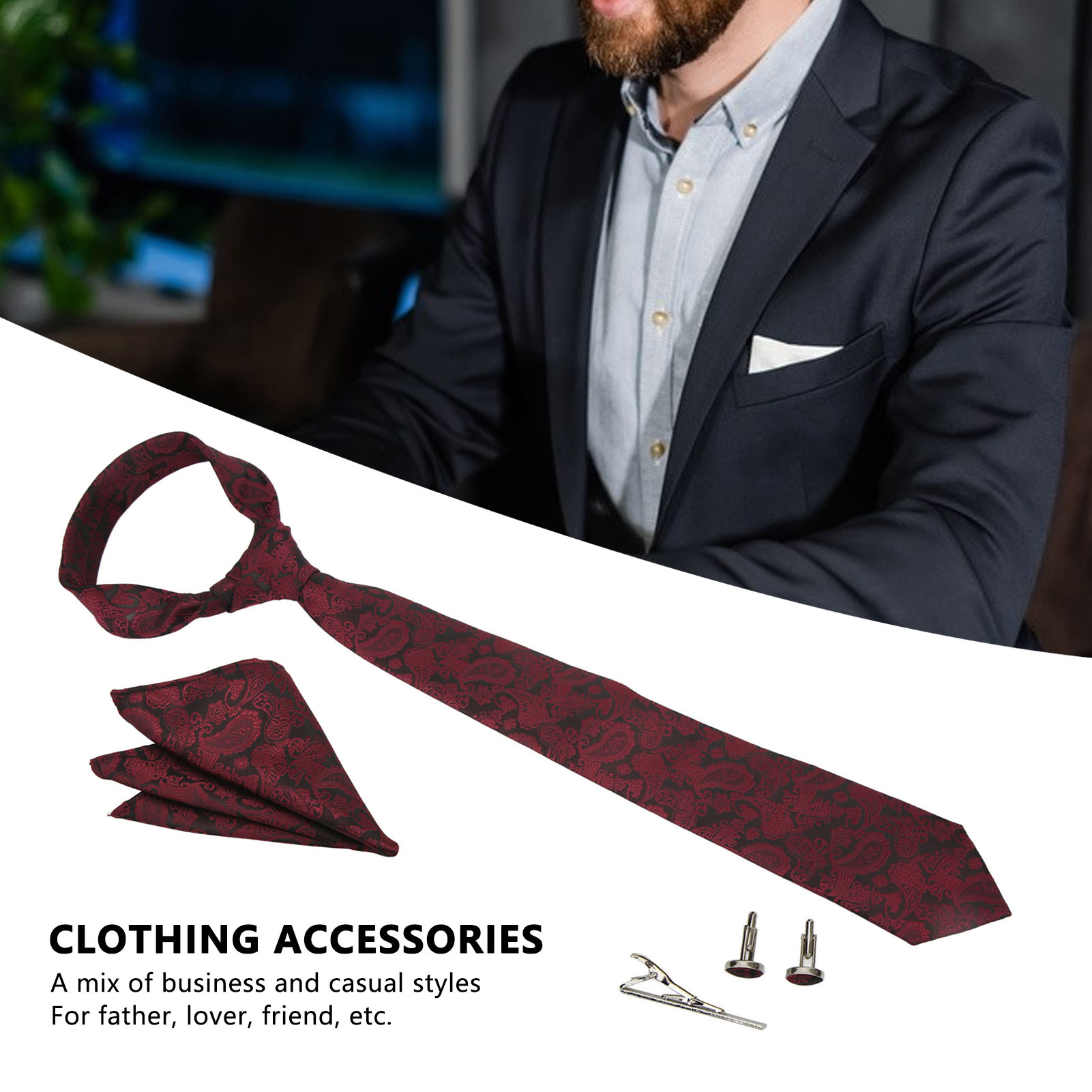 6 Pcs Men Ties Set Classic Versatile Business Dress Wedding Men's Tie Pocket Hand Towel Cufflinks Tie Clip Gift Box Set