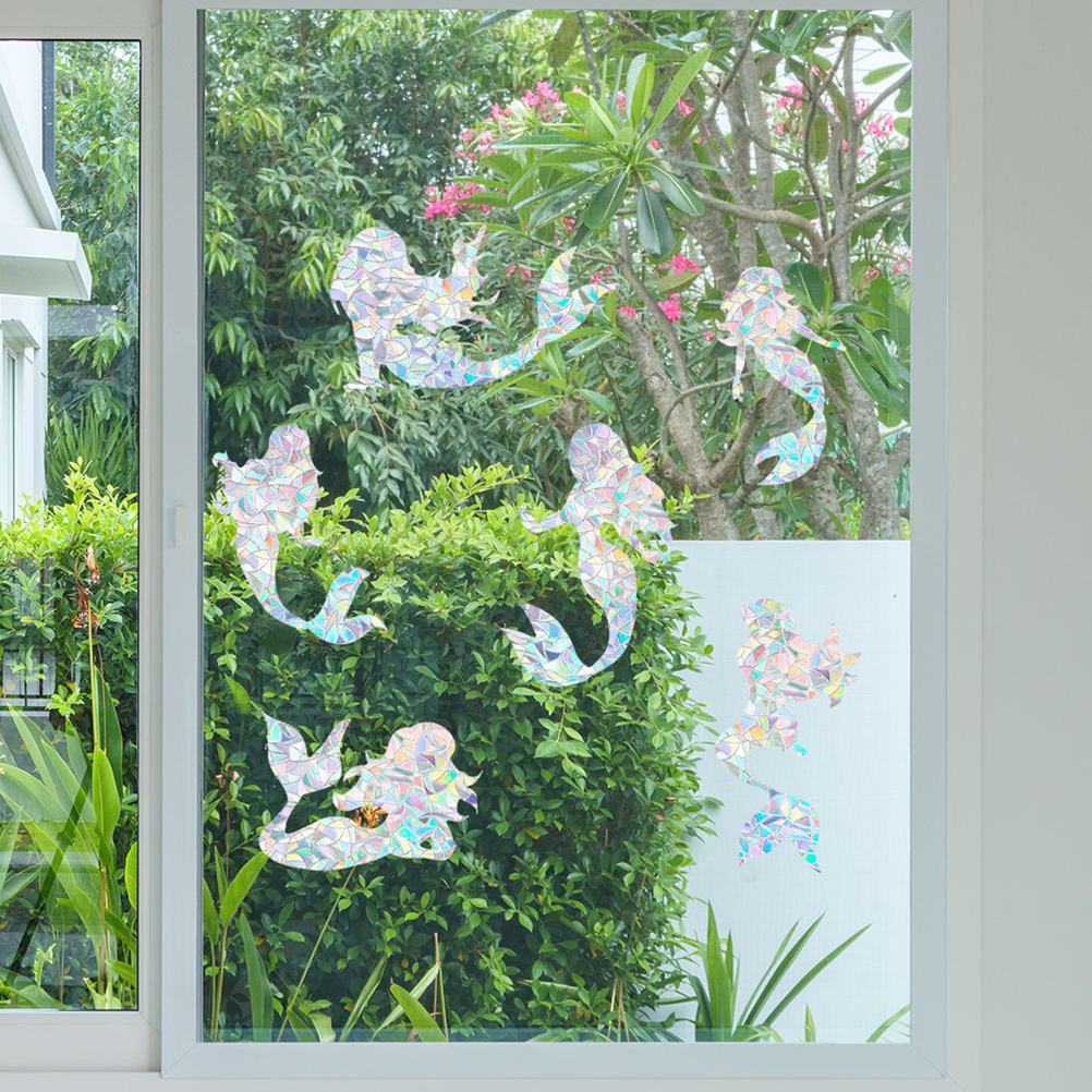 1、1.【Save Your Birds】Birds can't see glass, these decals can help birds notice glass, stop birds from hitting windows and sliding doors and save your beautiful feathered friends. There are multiple sets to choose from, each pack contains 6pcs glass decals of different shapes. 2、2.【Rainbow Maker, Sunshade】Shade stickers allow you to decorate windows or doors with glass in any space. Can be used for windows in your home, workplace, studio, or in your car! Get lost in the daydream of the rainbow and create beautiful rainbows for your home and family with our collection of aesthetic light catchers. 3、3.【No Glue, No Smudge】These decals are electrostatic adsorption layers. Just peel off the transparent backing paper, spray some water on the glass surface, and stick the smooth side of the adsorption film to the glass. Recommended for outdoor use. Please make sure your surface is clean and free of any stains, films, coatings, and other decorations before installation. Tip: The backing film must be removed before gluing the window, otherwise the mucosa will come off within a few hours. 4、4.【Reusable, Repositionable, Cleanable】If the window needs to be washed, it can be removed and reinstalled after washing. These adsorption membranes can also be washed with water. 5、5.【Perfect Gift】Believe it, no one doesn't like rainbows. Make it an extra special gift for yourself or someone who wants to bring a little color to the space.