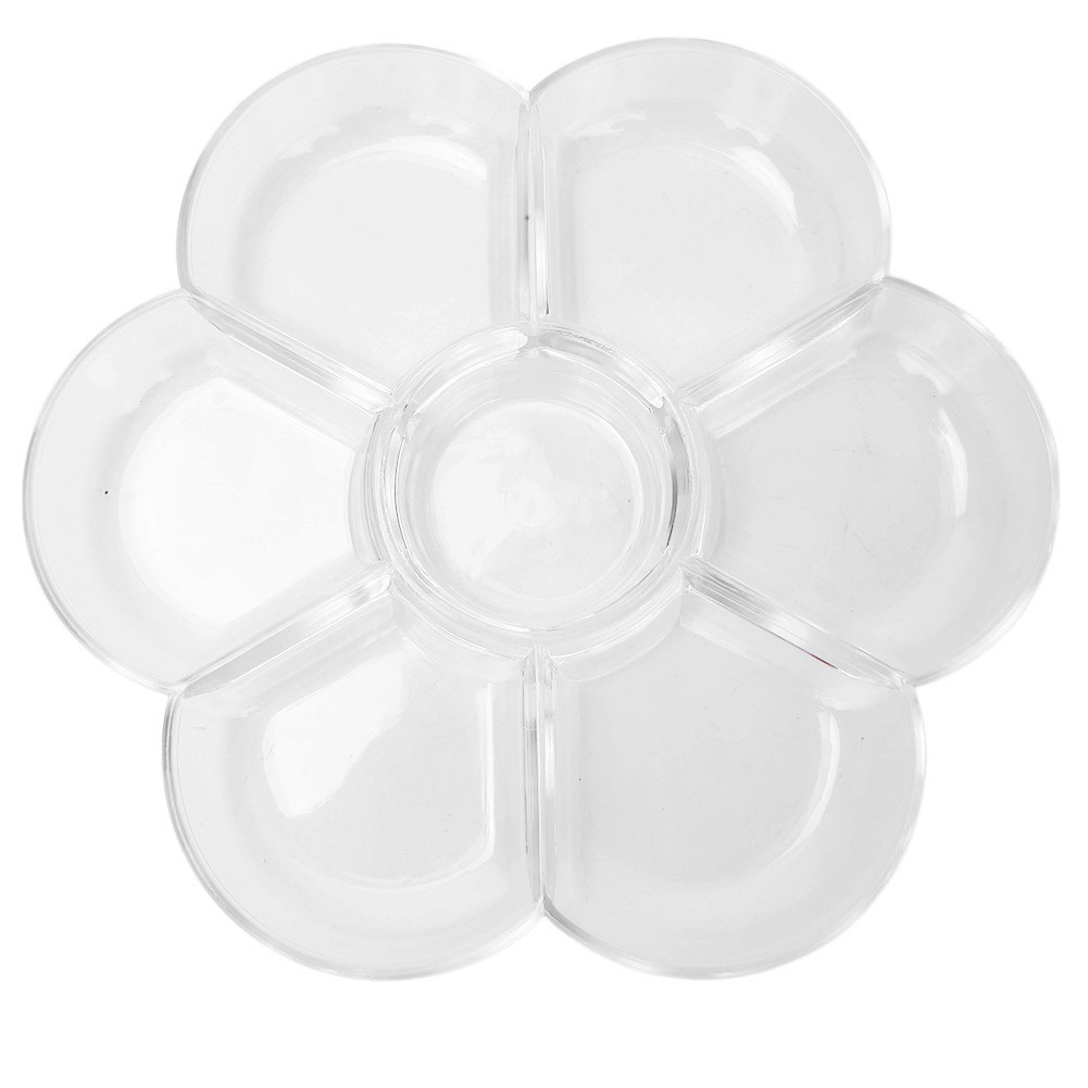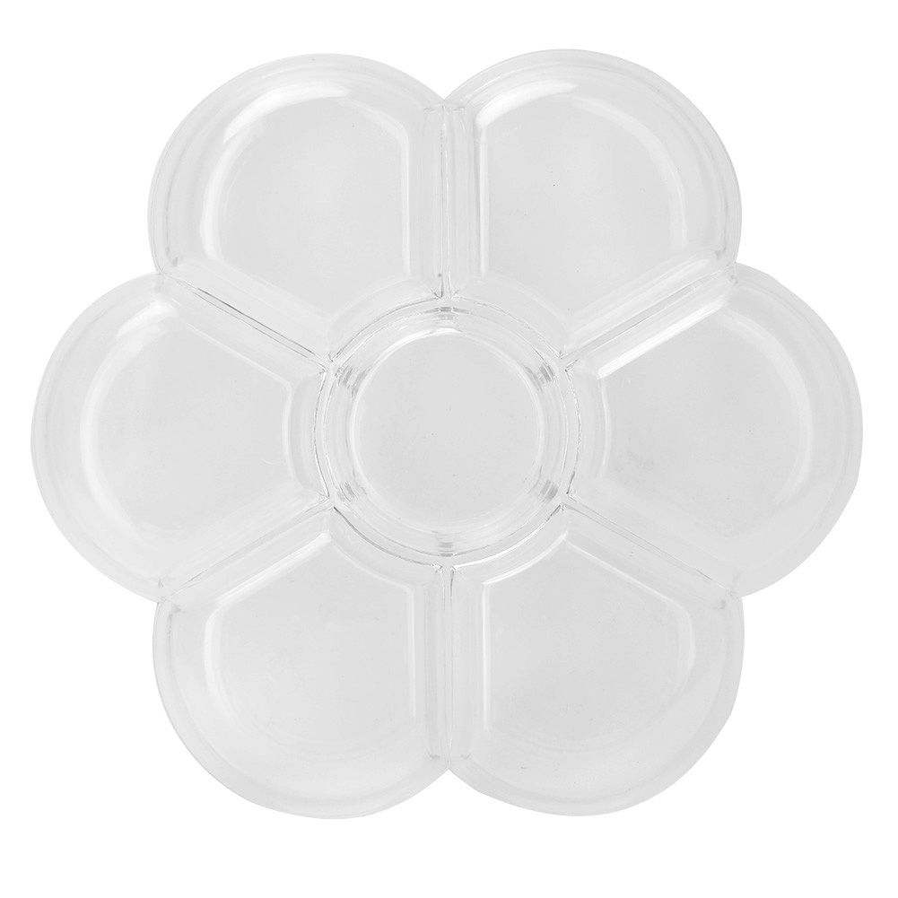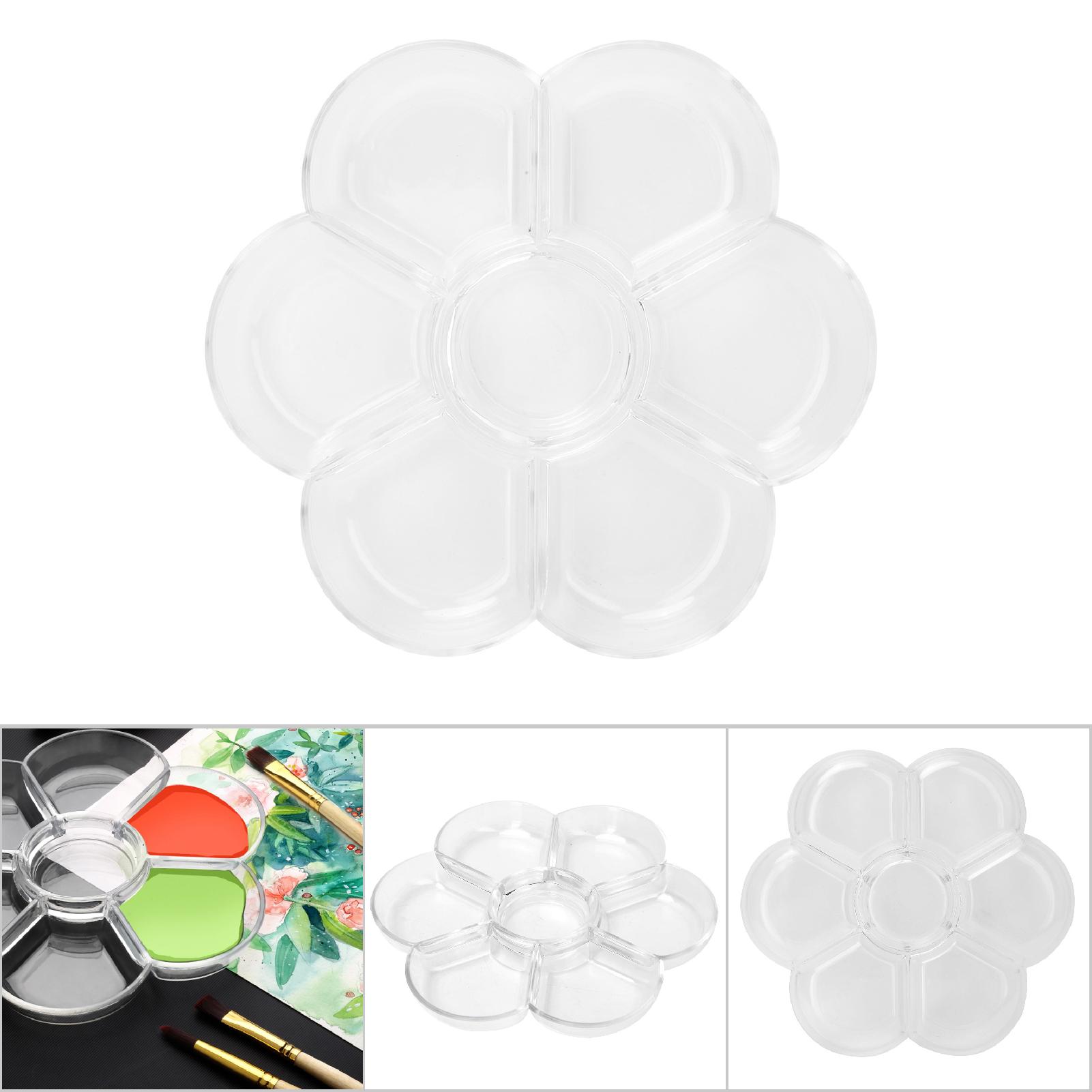 1、Made of high quality plastic material. 2、Medium size, portable design, easy to carry. 3、Plum‑shaped palette, anti‑oxidation, easy to clean. 4、7 holes designed for easy color mixing. 5、Suitable for gouache, watercolor, oil painting, acrylic, etc.