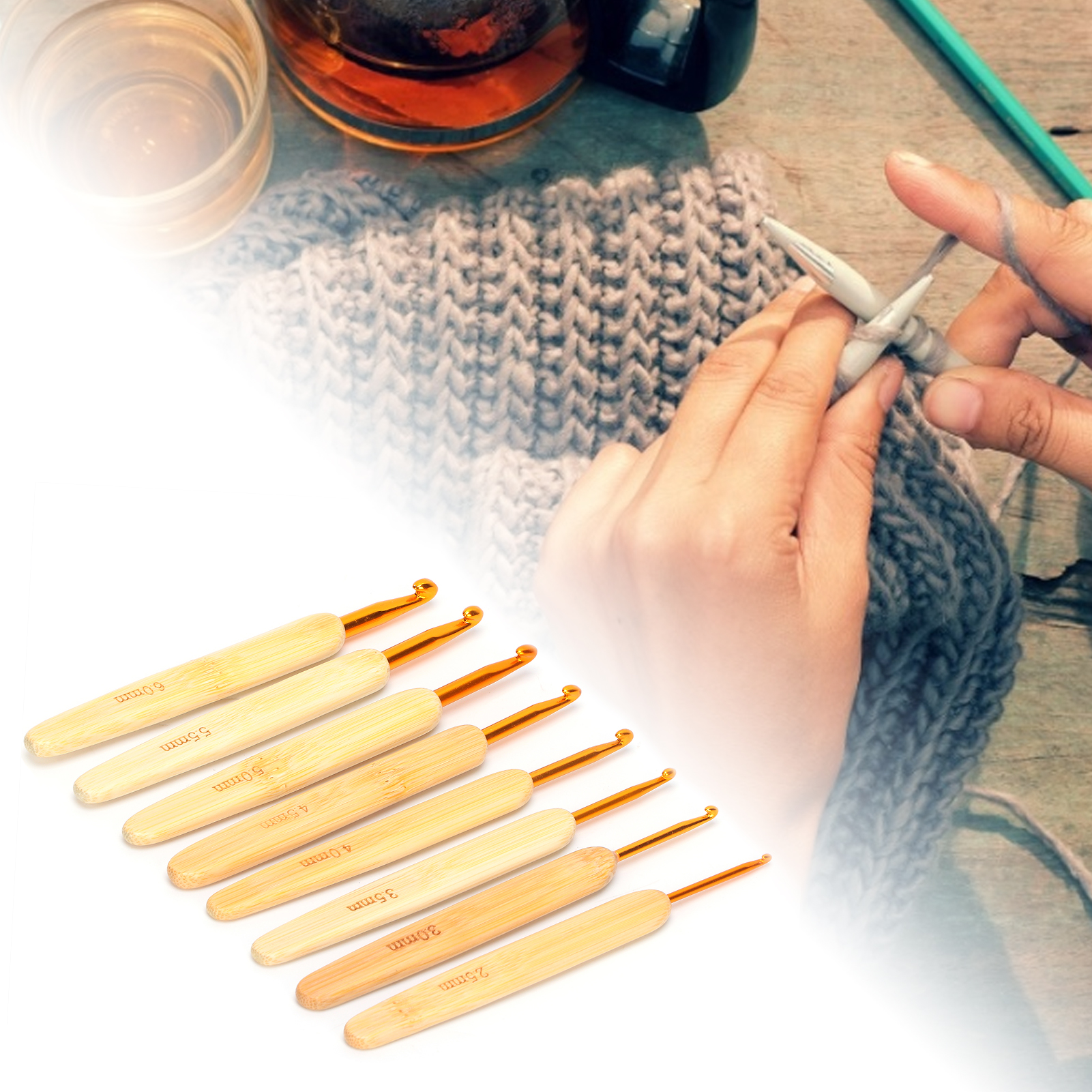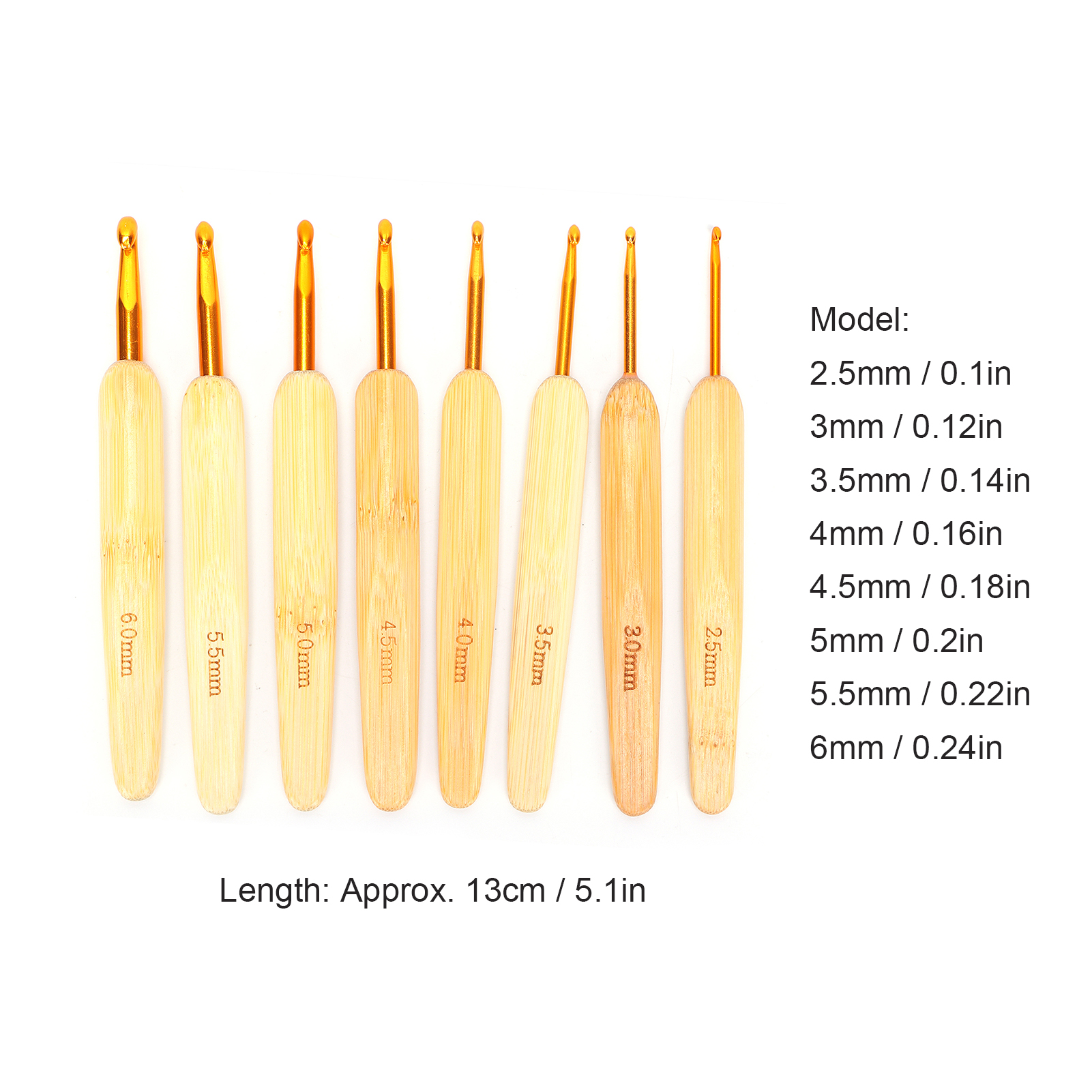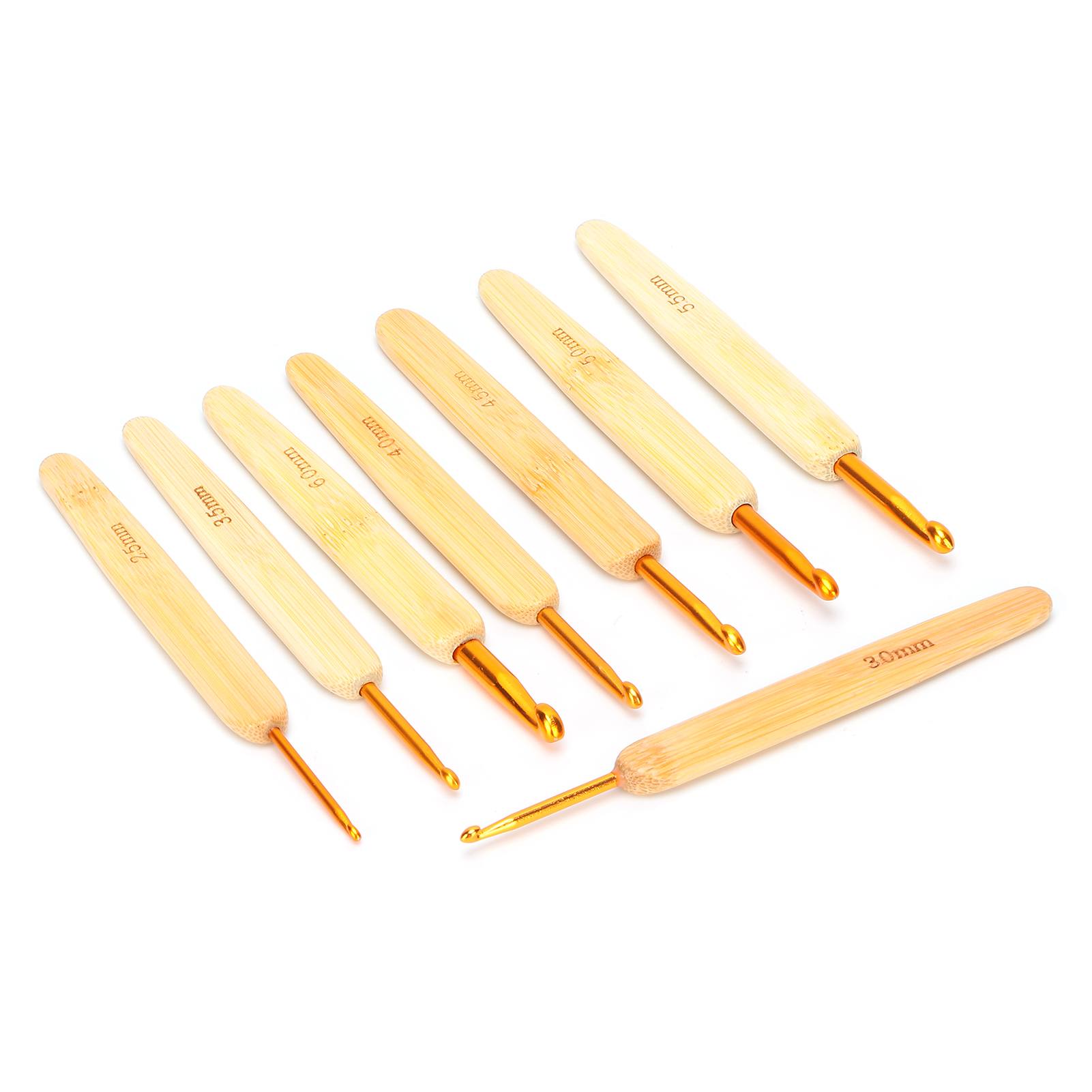 8pcs Aluminium Oxide Crochet Hook Golden Crochet Needles Set for Sweater Knitting