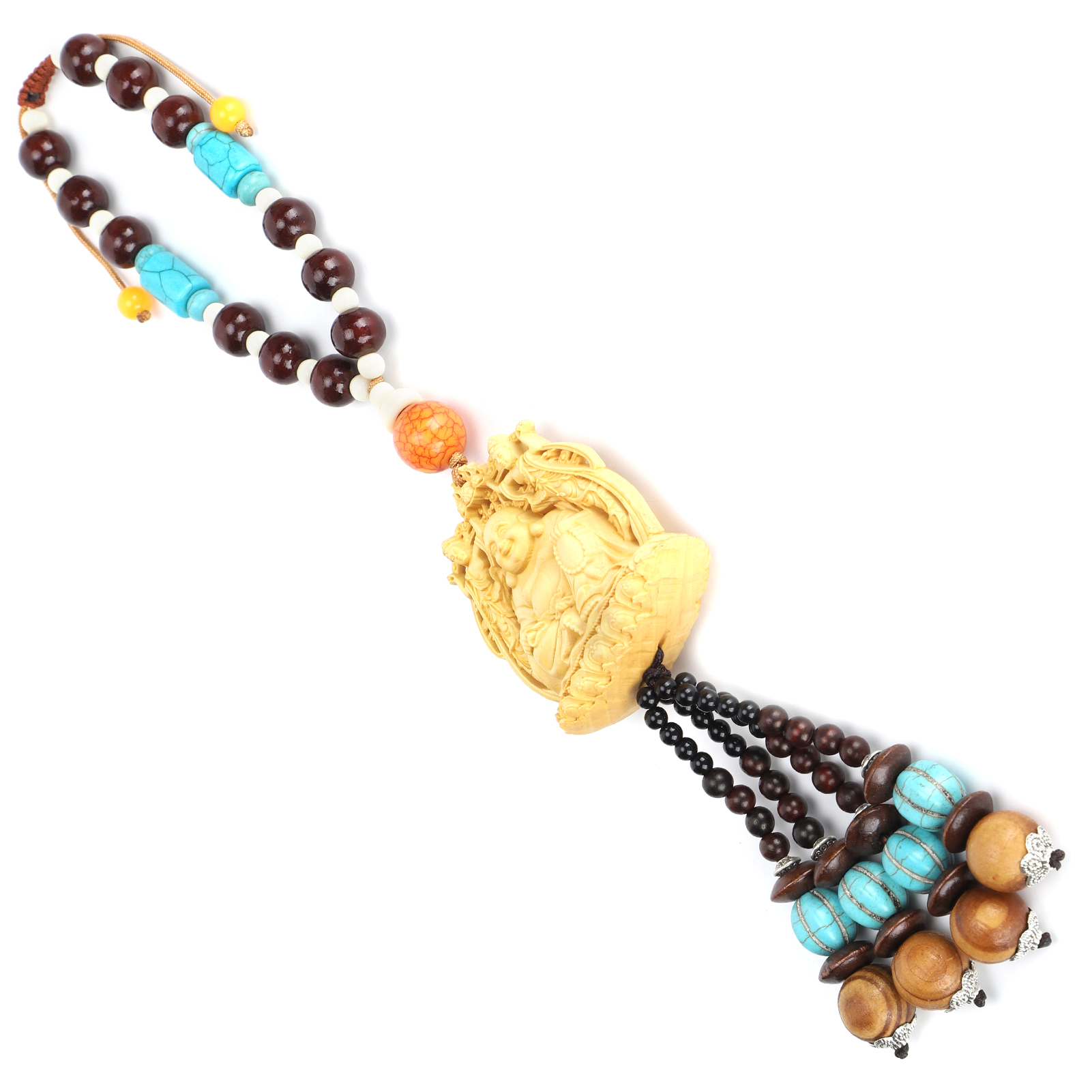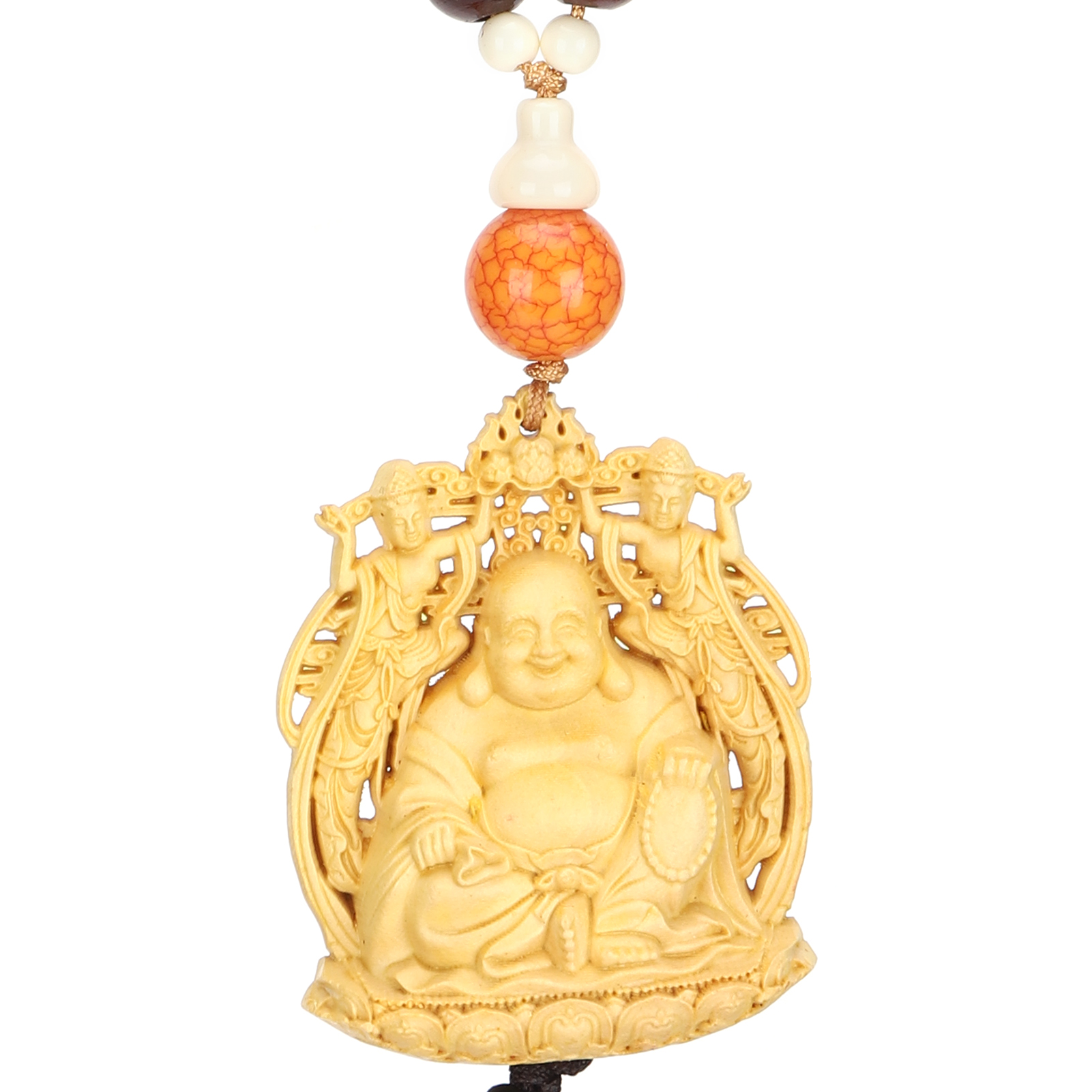 1、Great workmanship, made of boxwood material, with bright colors and gorgeous appearance. 2、Not only a pendant, but also an amulet with the meaning of safety for family members. 3、Can be hung anywhere, as a good decoration, used for house decoration, car interior, etc. 4、Can be used with peace of mind, with strict quality control and quality assurance. 5、With meticulous carving, the pattern of the Buddha statue on the pendant is lifelike, very delicate.