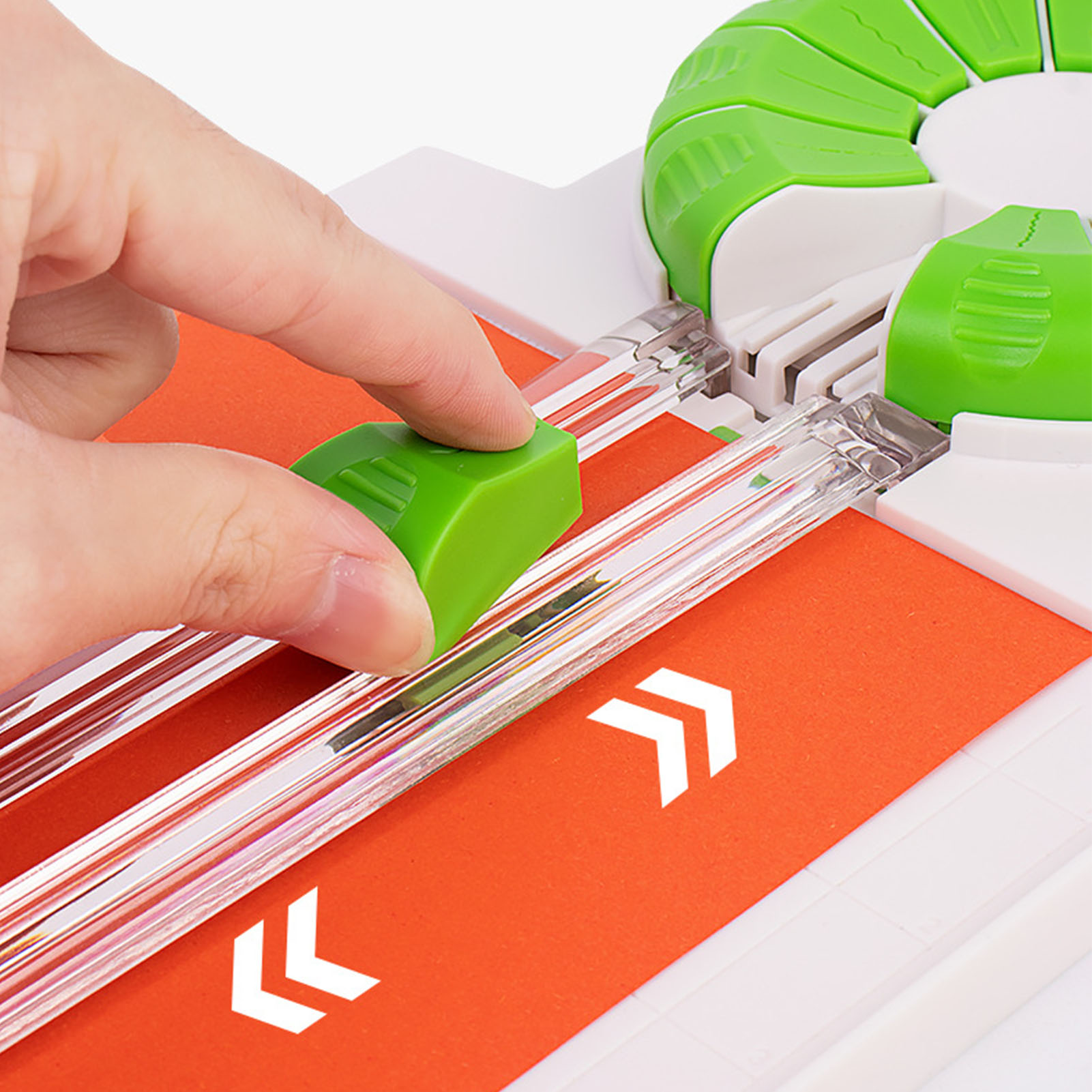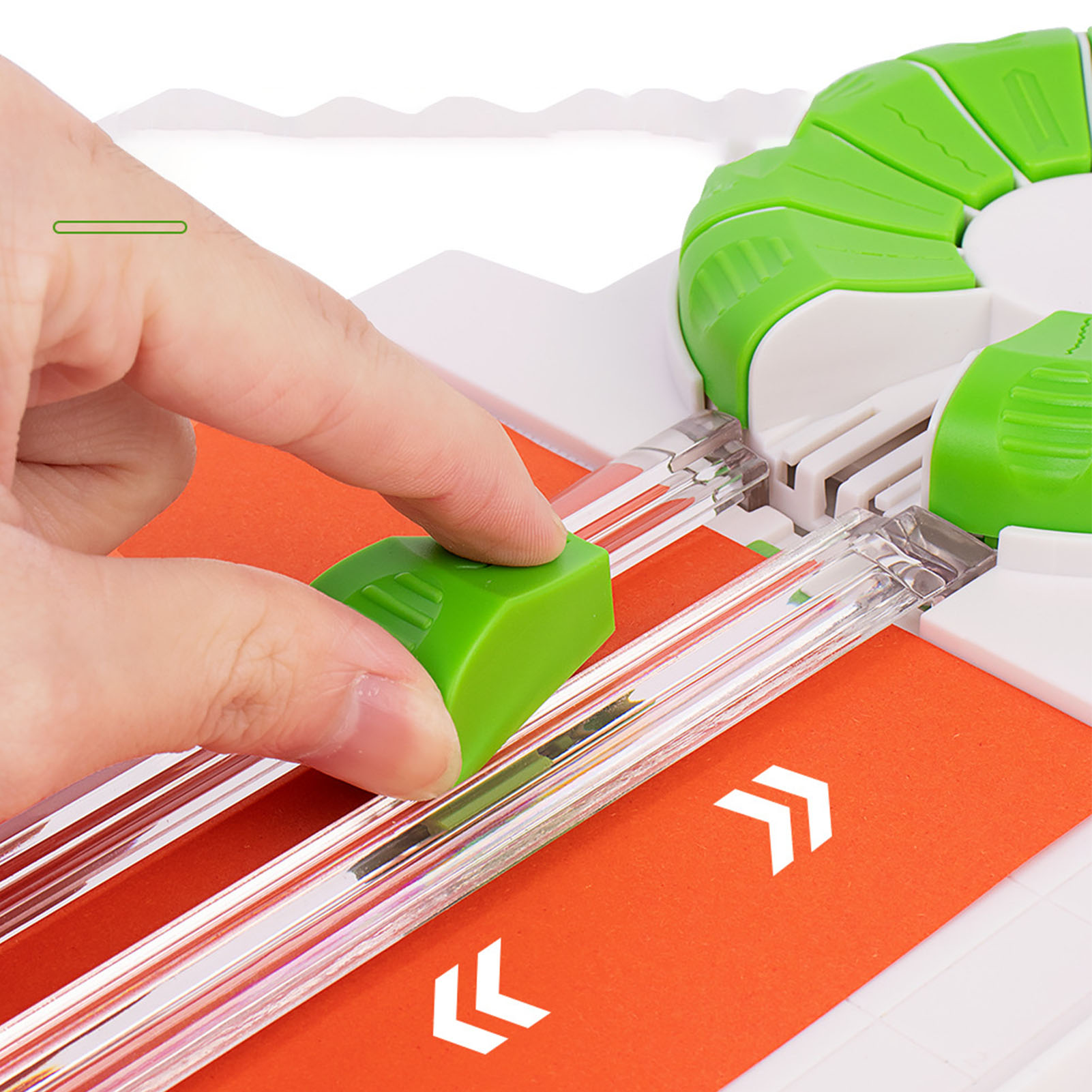 1、12 In 1 Function: This paper trimmer scrapbooking tool has a 12 in 1 function that is versatile and can be used for a variety of cutting and creasing needs. 2、Simple And Easy To Use: This paper cutter is convenient for hand operation, which is very simple to use, you can easily cut and fold the paper, suitable for both children and adults. 3、Flat Cutting: This craft paper trimmer easily cuts through all types of paper with a incisive cutting blade that ensures a crisp, flat cutting line. 4、Multiple Indentation Lace: This craft paper cutter offers multiple indentation modes such as straight line, dotted line and lace to meet different creativity and needs. 5、Excellent Plastic Material: This paper trimmer is made of excellent plastic material, which is sturdy and wear resistant, not easy to be damaged, and has a long applicable life.