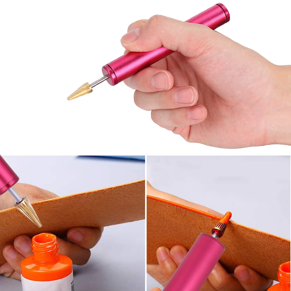 Usage Tutorial: Put the pen in the oil bottle to soak the oil, then put the brass head on the edge of the skin, roll the edge with the pen handle, the oil will be coated on the edge of the faux leather.