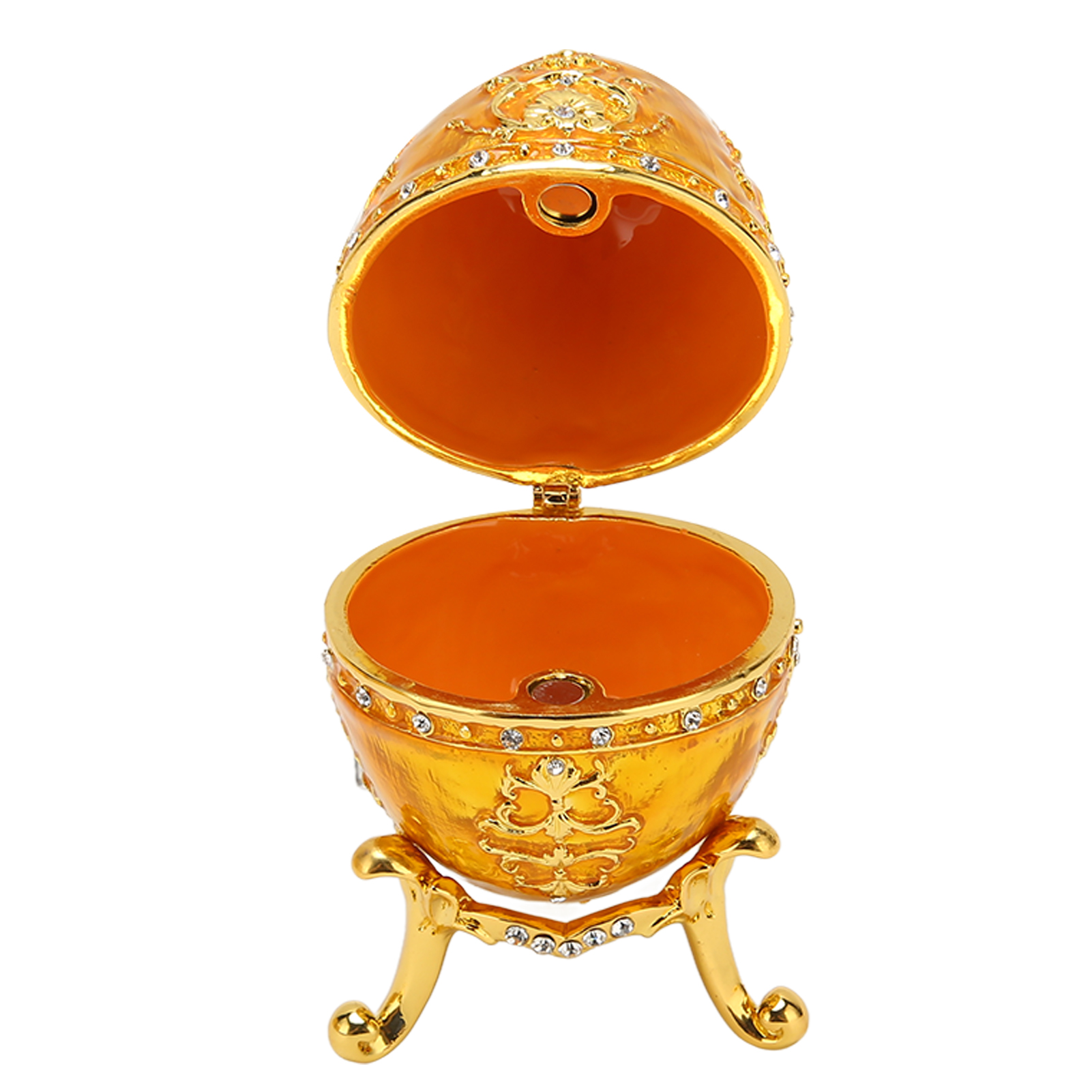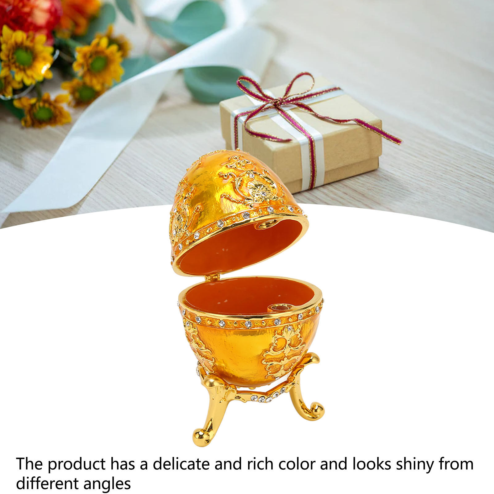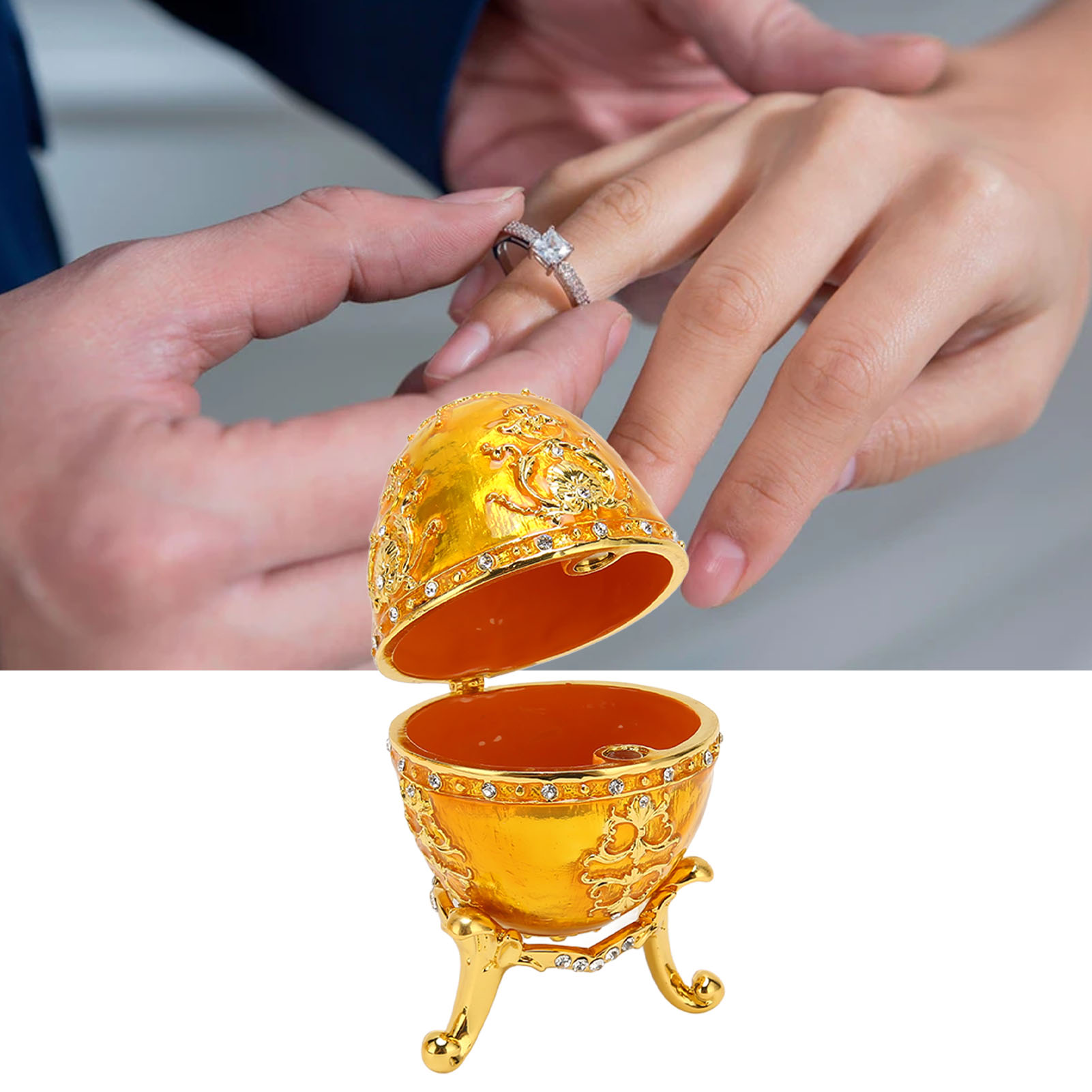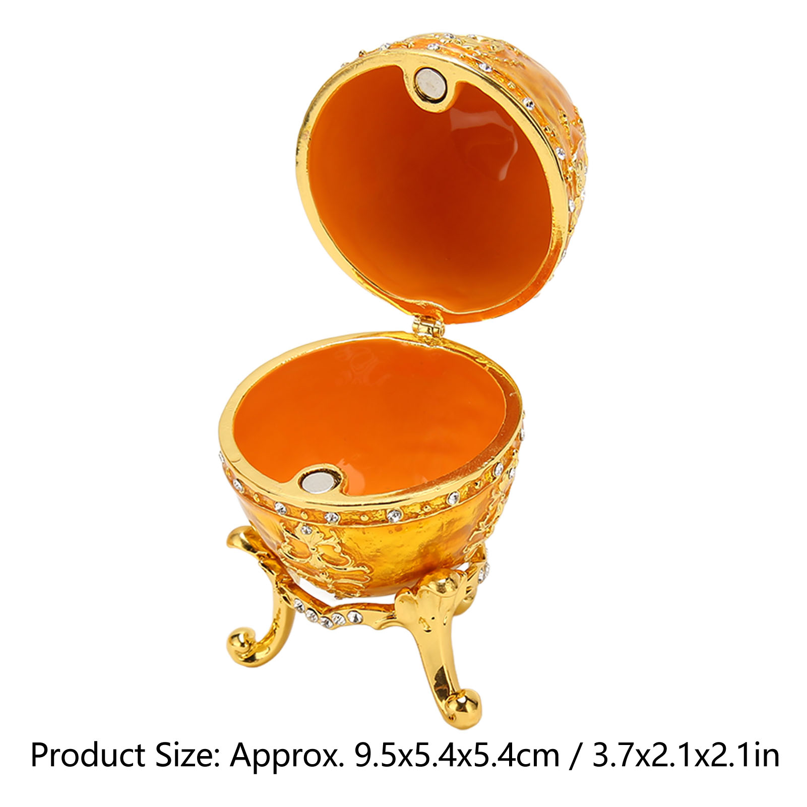 Egg Style Jewelry Trinket Box Zinc Alloy Hand Painted Enameled Decorative Hinged Egg Shaped Trinket Box for Home Decor Gold
