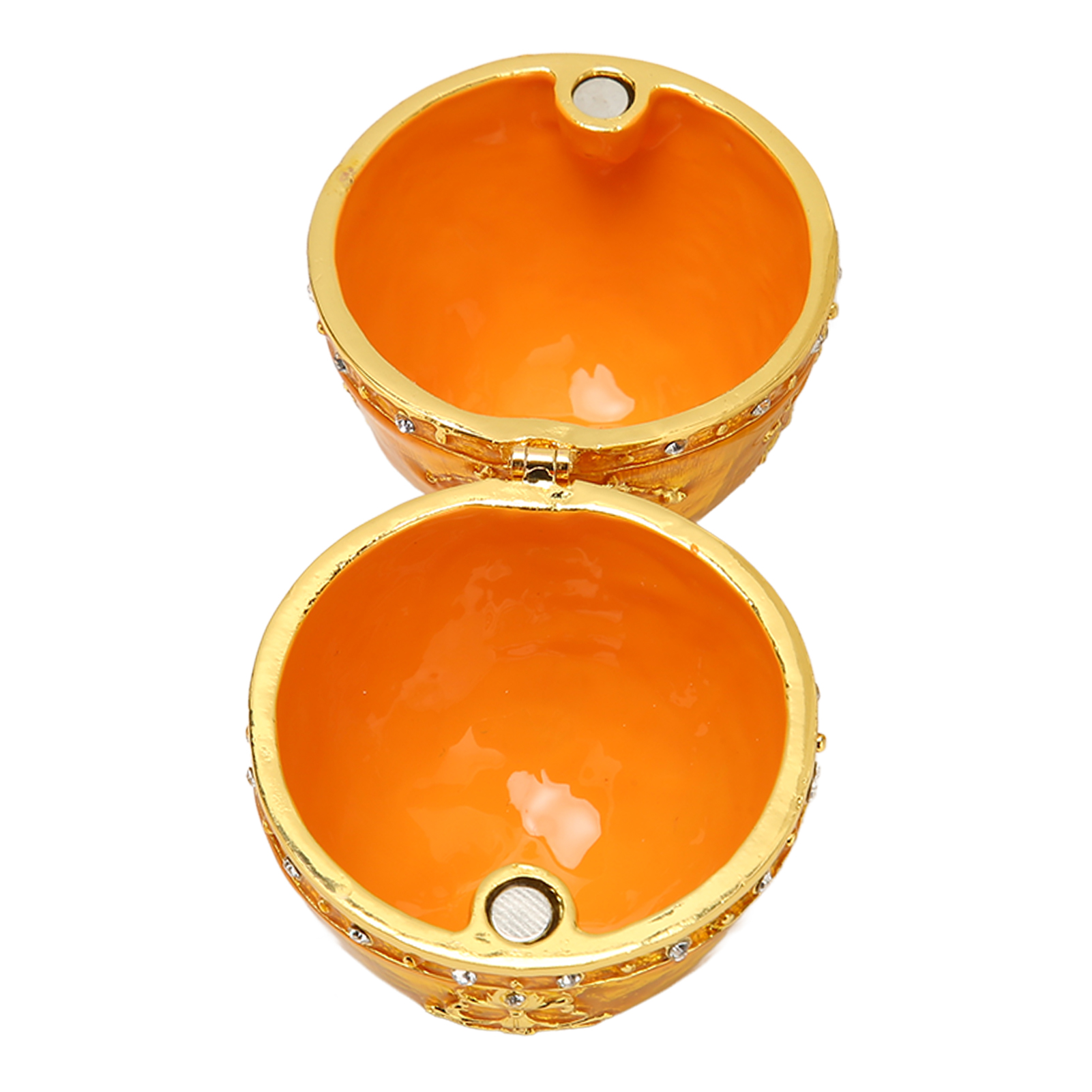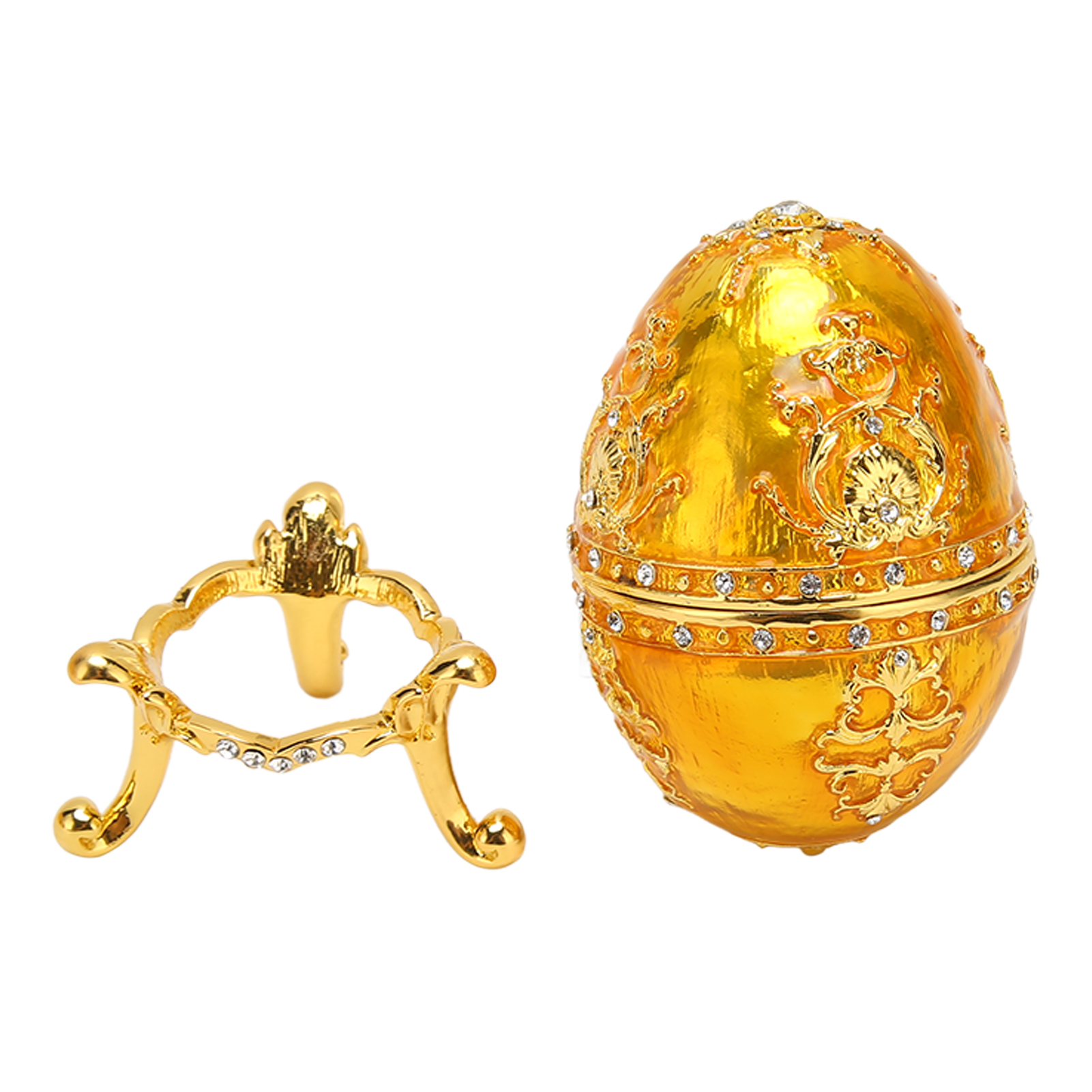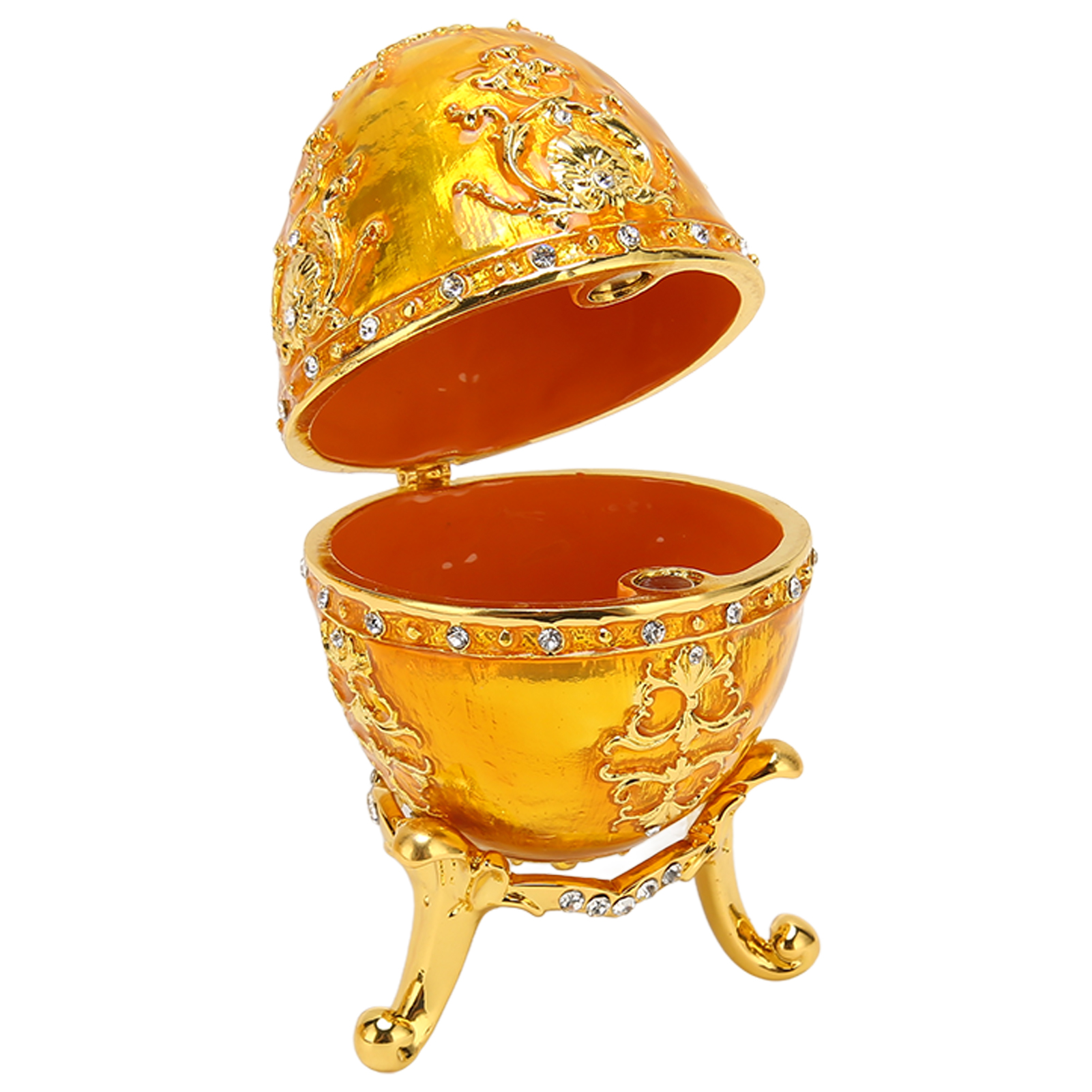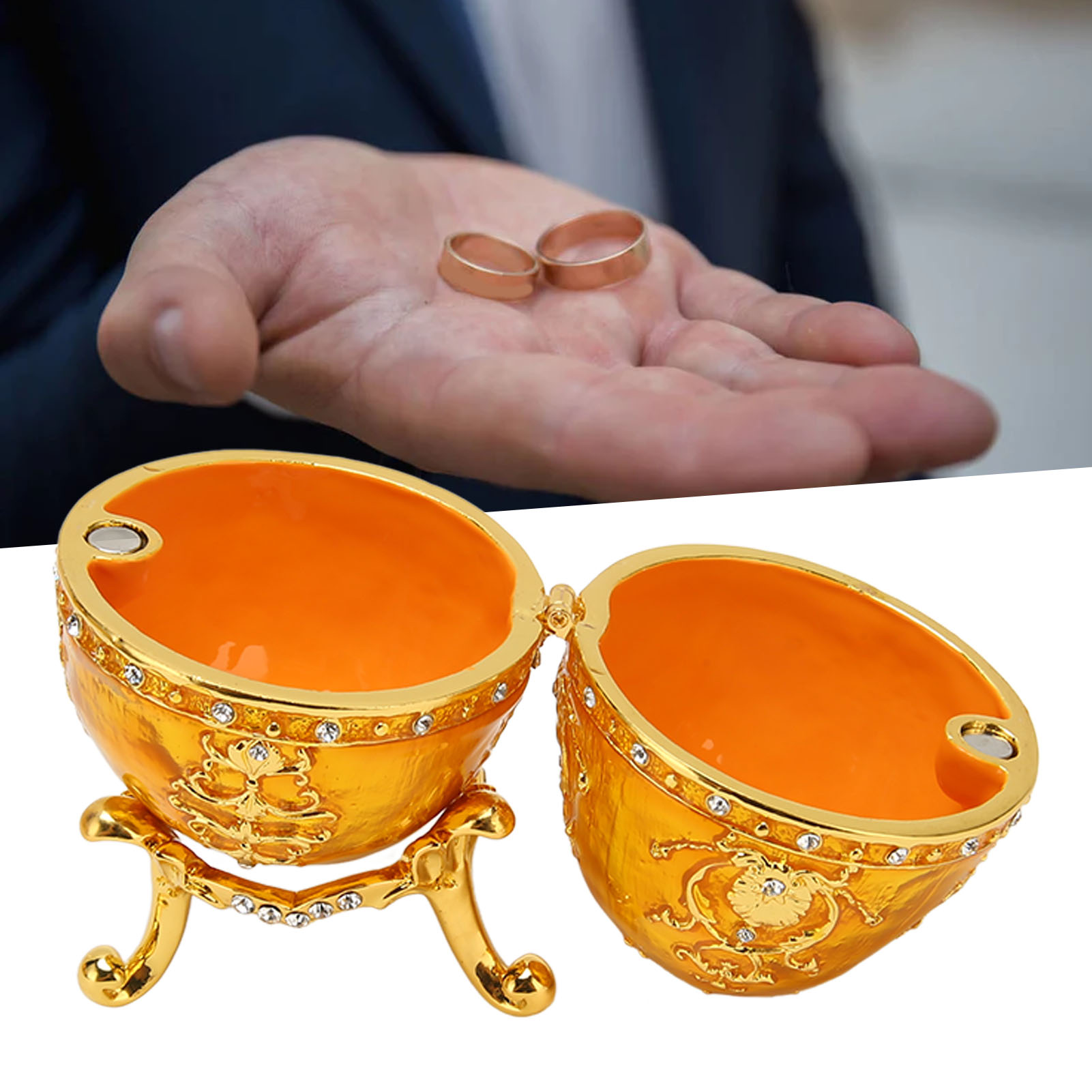 Egg Style Jewelry Trinket Box Zinc Alloy Hand Painted Enameled Decorative Hinged Egg Shaped Trinket Box for Home Decor Gold