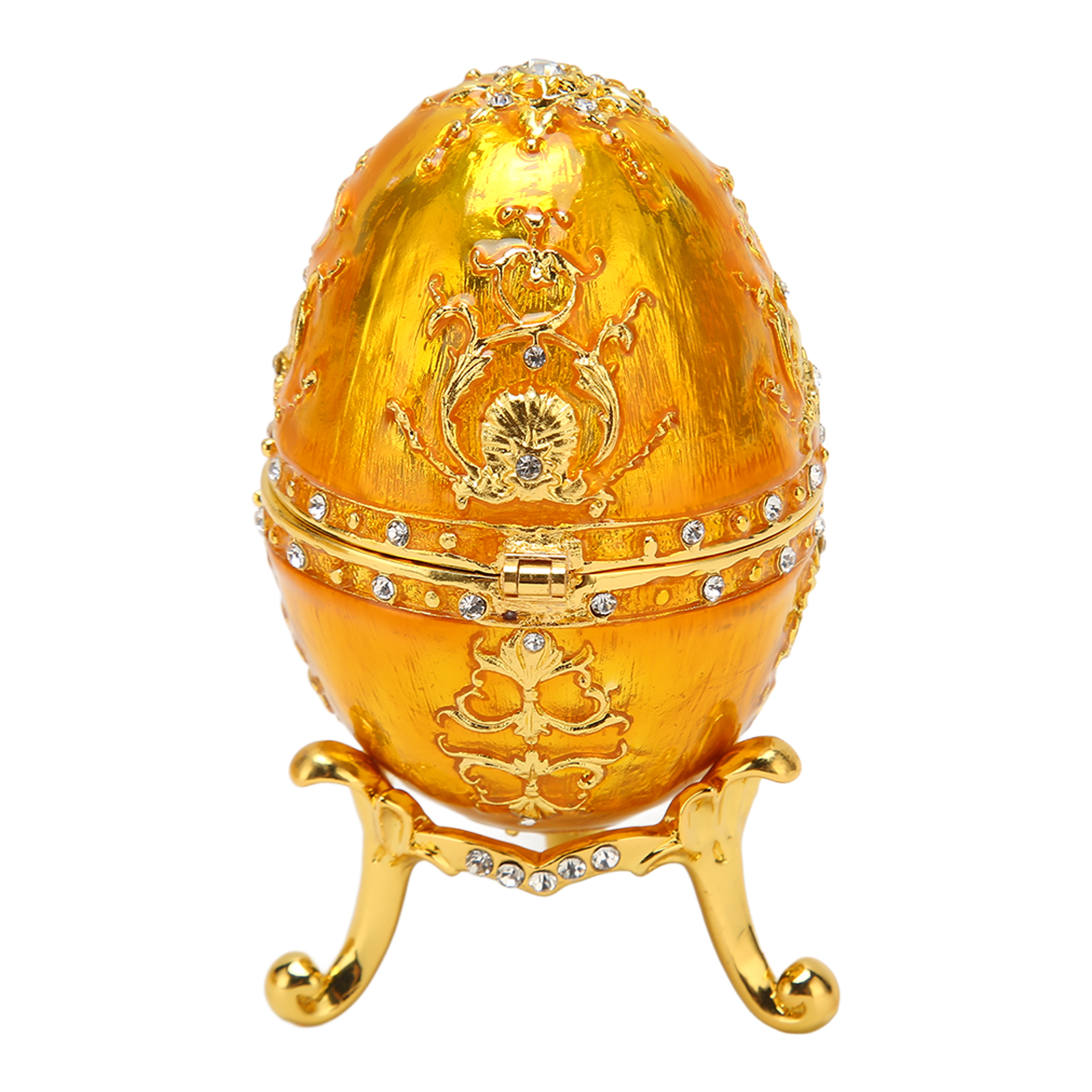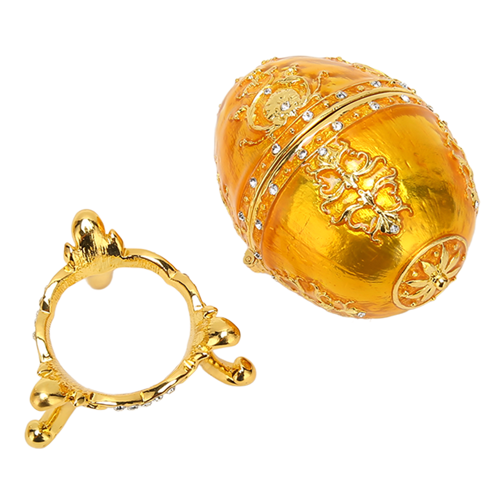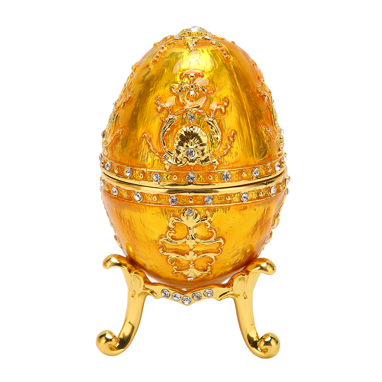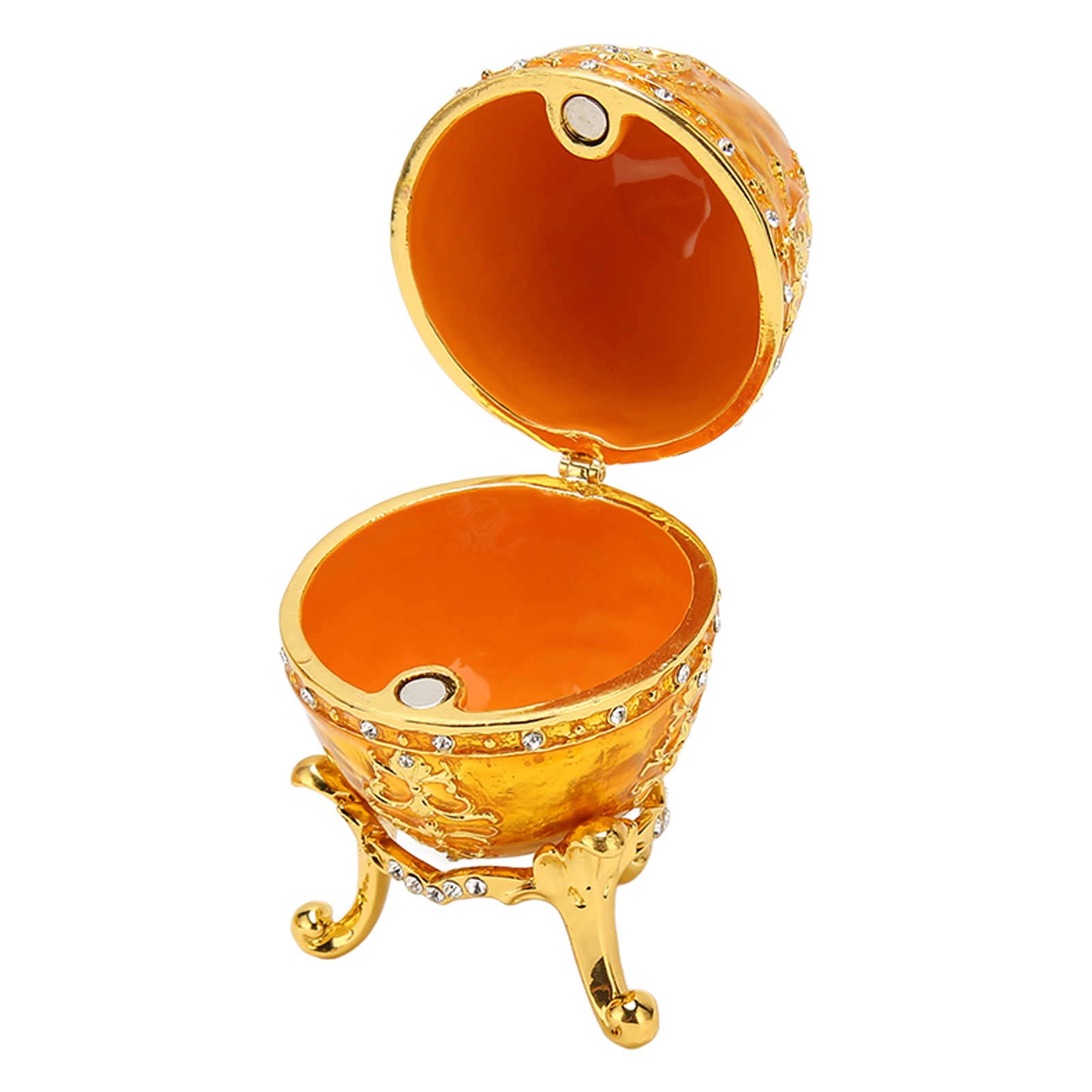 Egg Style Jewelry Trinket Box Zinc Alloy Hand Painted Enameled Decorative Hinged Egg Shaped Trinket Box for Home Decor Gold