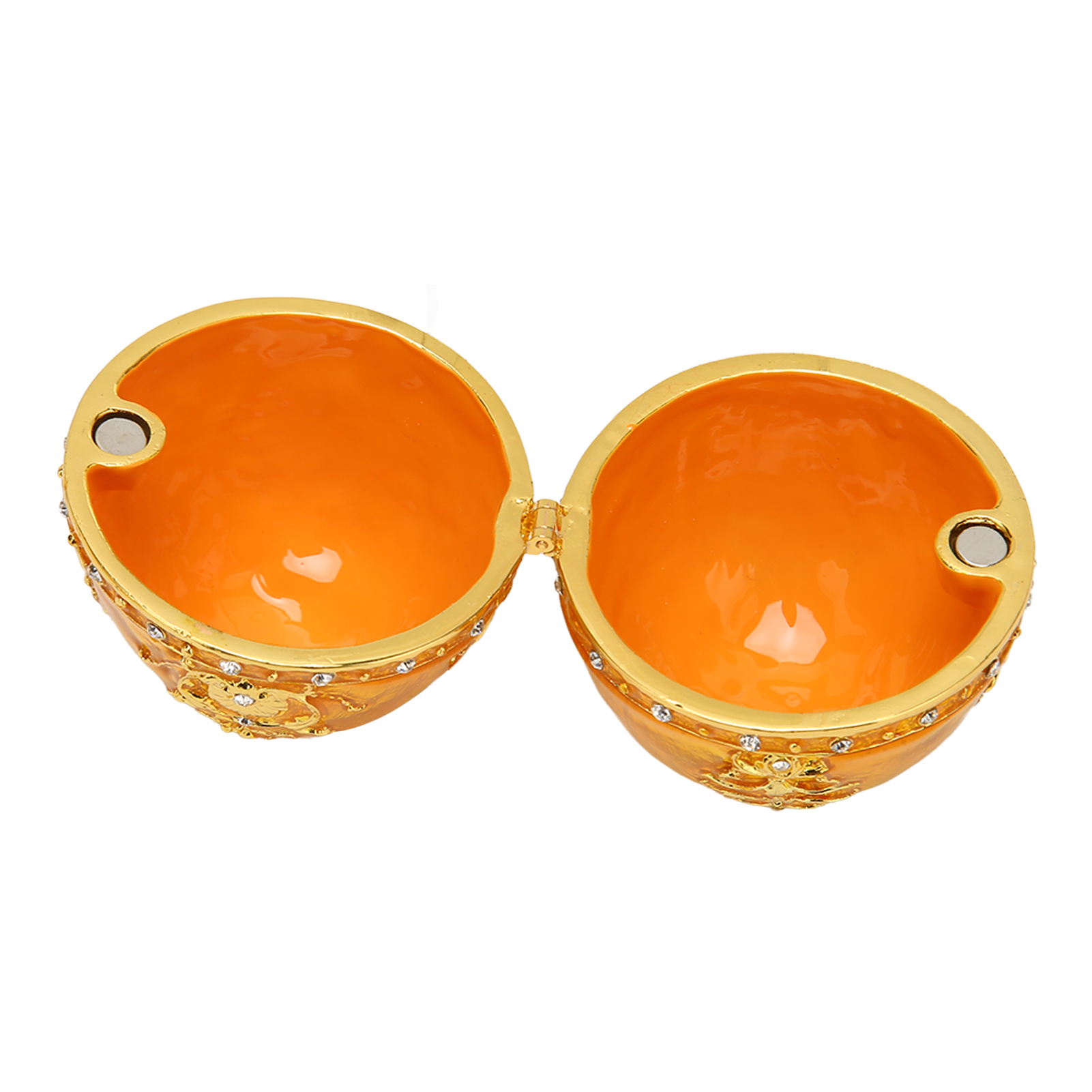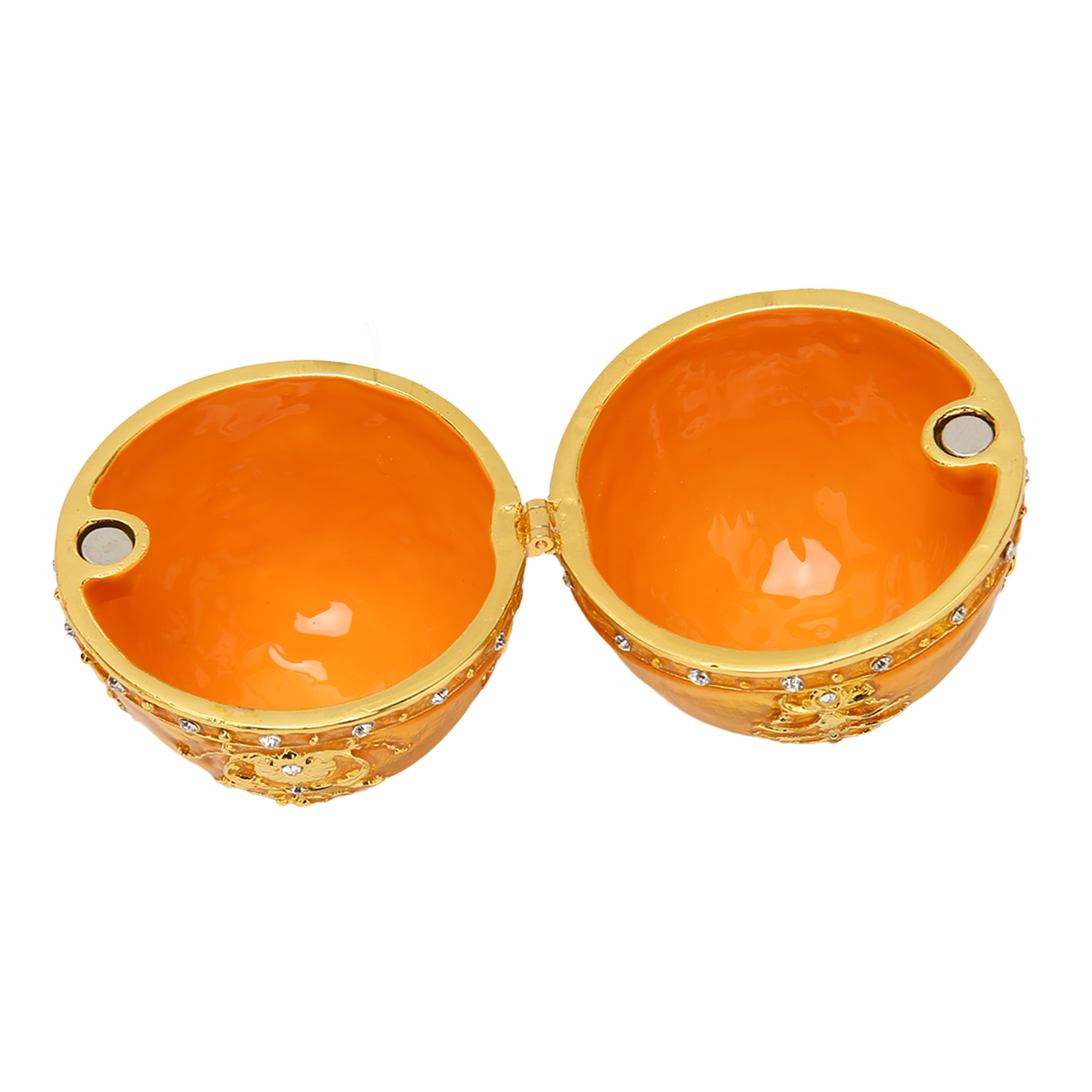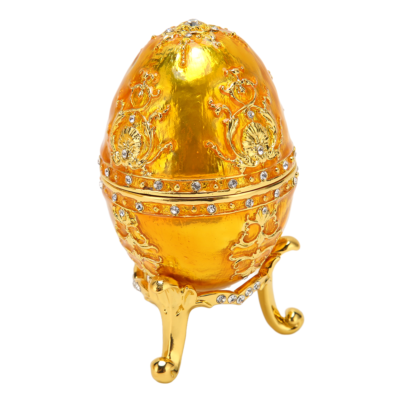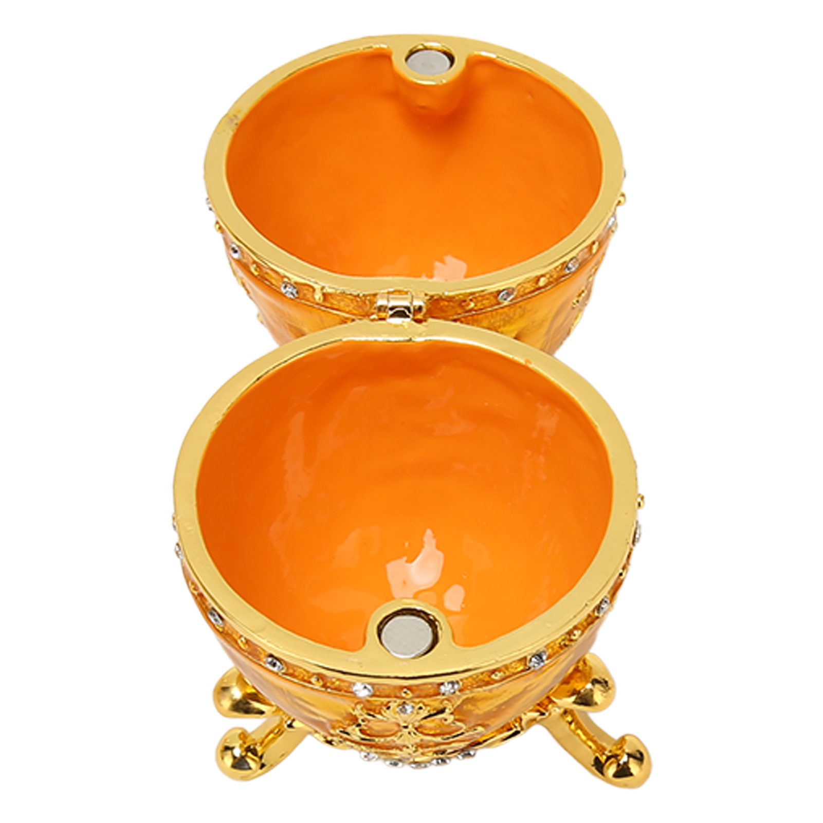 Egg Style Jewelry Trinket Box Zinc Alloy Hand Painted Enameled Decorative Hinged Egg Shaped Trinket Box for Home Decor Gold