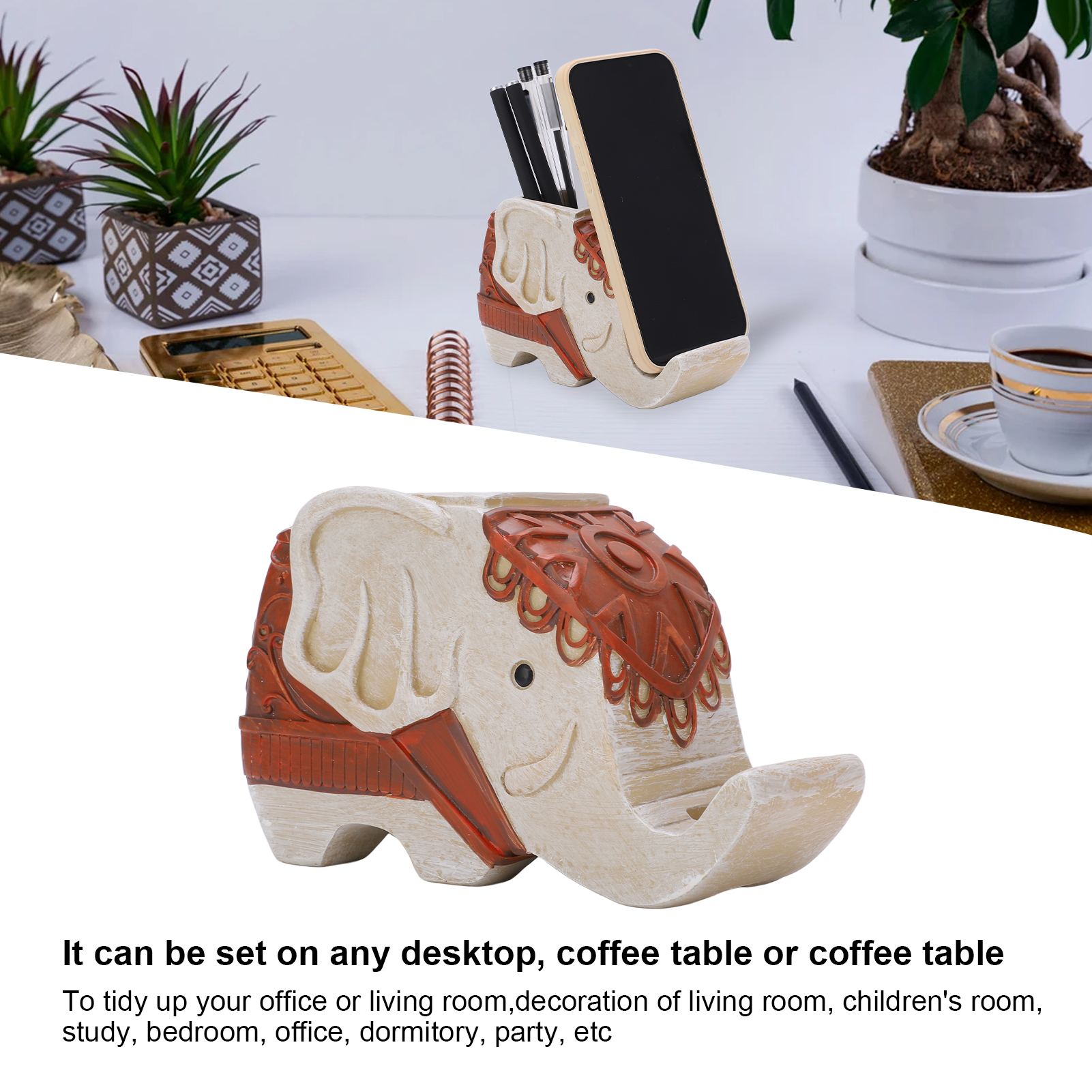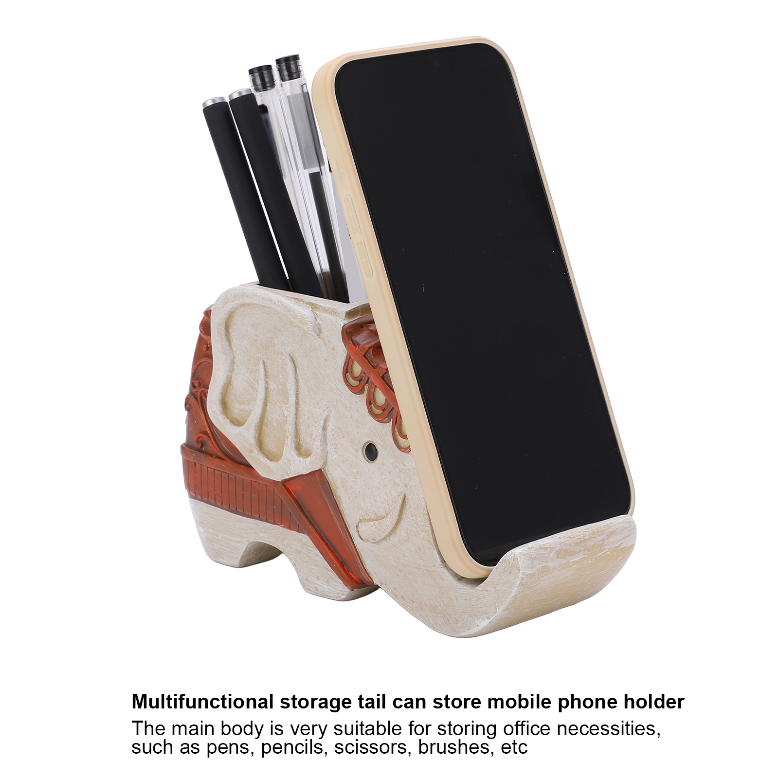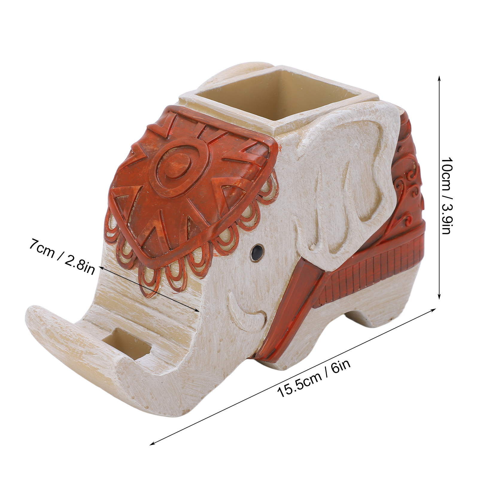 1、Multi Purpose Storage: The multifunctional storage tail can store the mobile phone holder, and the main body is ideal for storing office necessities such as pens, pencils, scissors, brushes, etc 2、Put it Anywhere: Can be set on any desktop, coffee table or coffee table to tidy up your office or living room 3、Decoration: Decoration for living room, children's room, study, bedroom, office, dormitory, party, etc. Gifts for friends, colleagues and loved ones 4、Resin Material: Synthetic resin material, strong and durable, can be used for a long time 5、Elephant Design: Elephant design, vivid and lovely modeling, attractive, let you fall in love with it