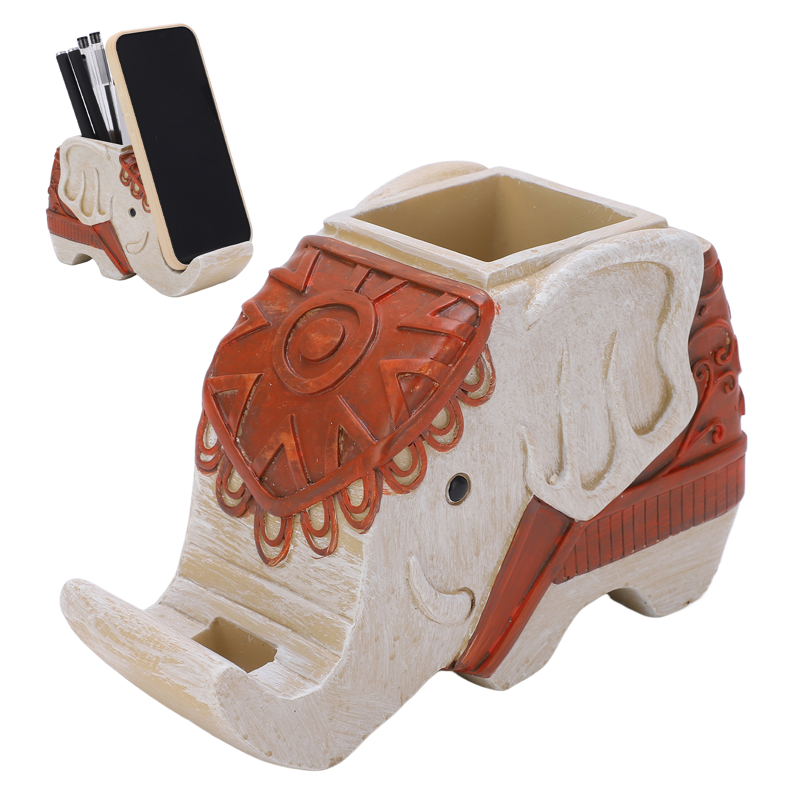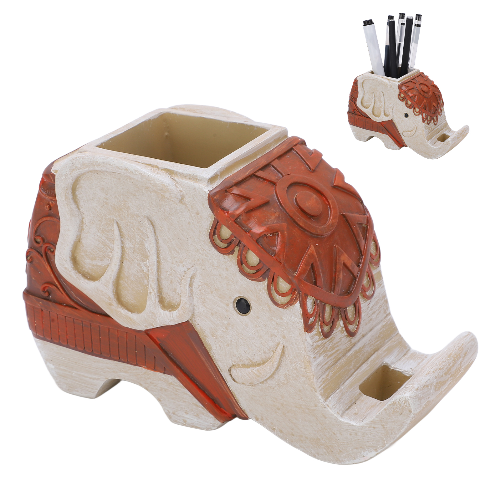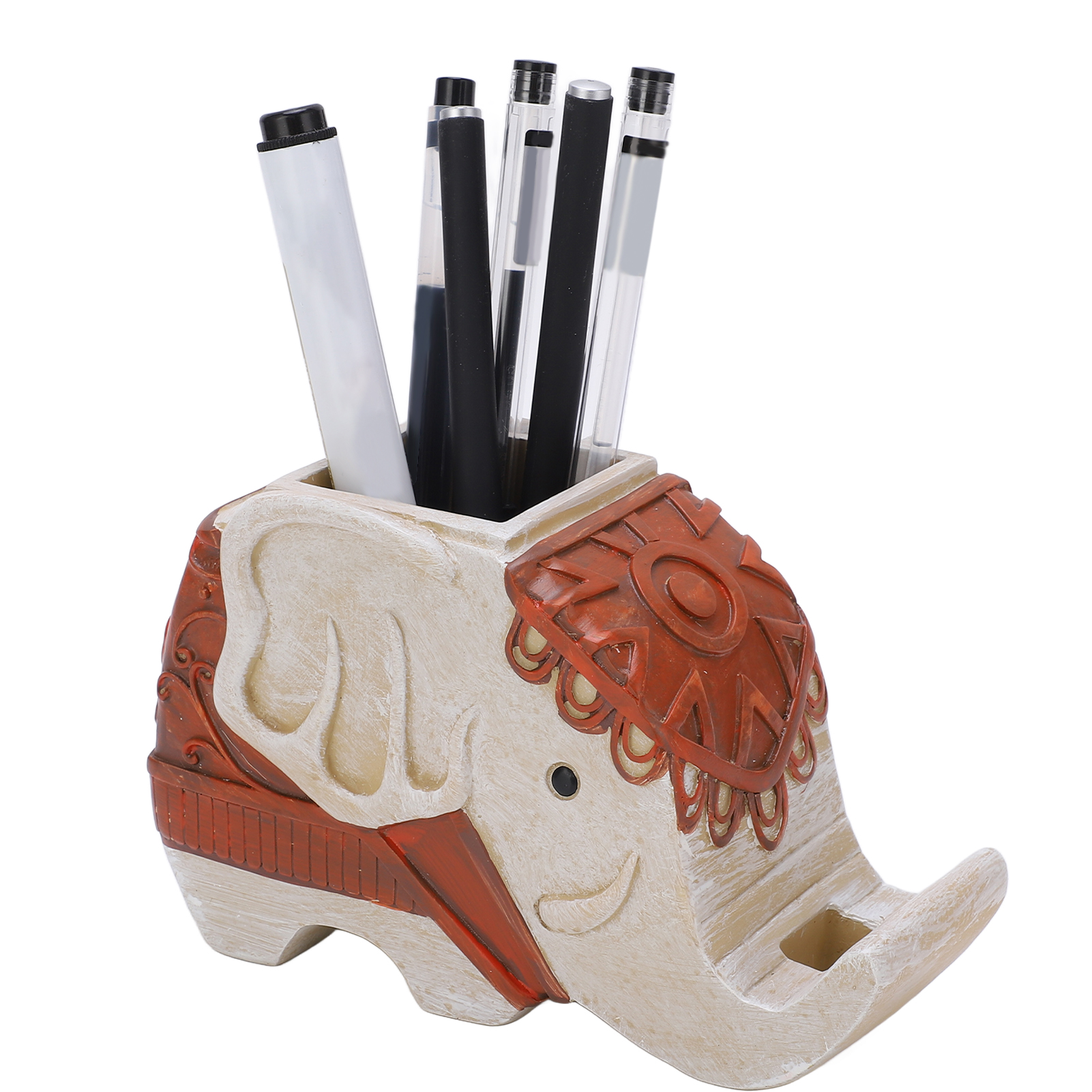1、Multi Purpose Storage: The multifunctional storage tail can store the mobile phone holder, and the main body is ideal for storing office necessities such as pens, pencils, scissors, brushes, etc 2、Put it Anywhere: Can be set on any desktop, coffee table or coffee table to tidy up your office or living room 3、Decoration: Decoration for living room, children's room, study, bedroom, office, dormitory, party, etc. Gifts for friends, colleagues and loved ones 4、Resin Material: Synthetic resin material, strong and durable, can be used for a long time 5、Elephant Design: Elephant design, vivid and lovely modeling, attractive, let you fall in love with it