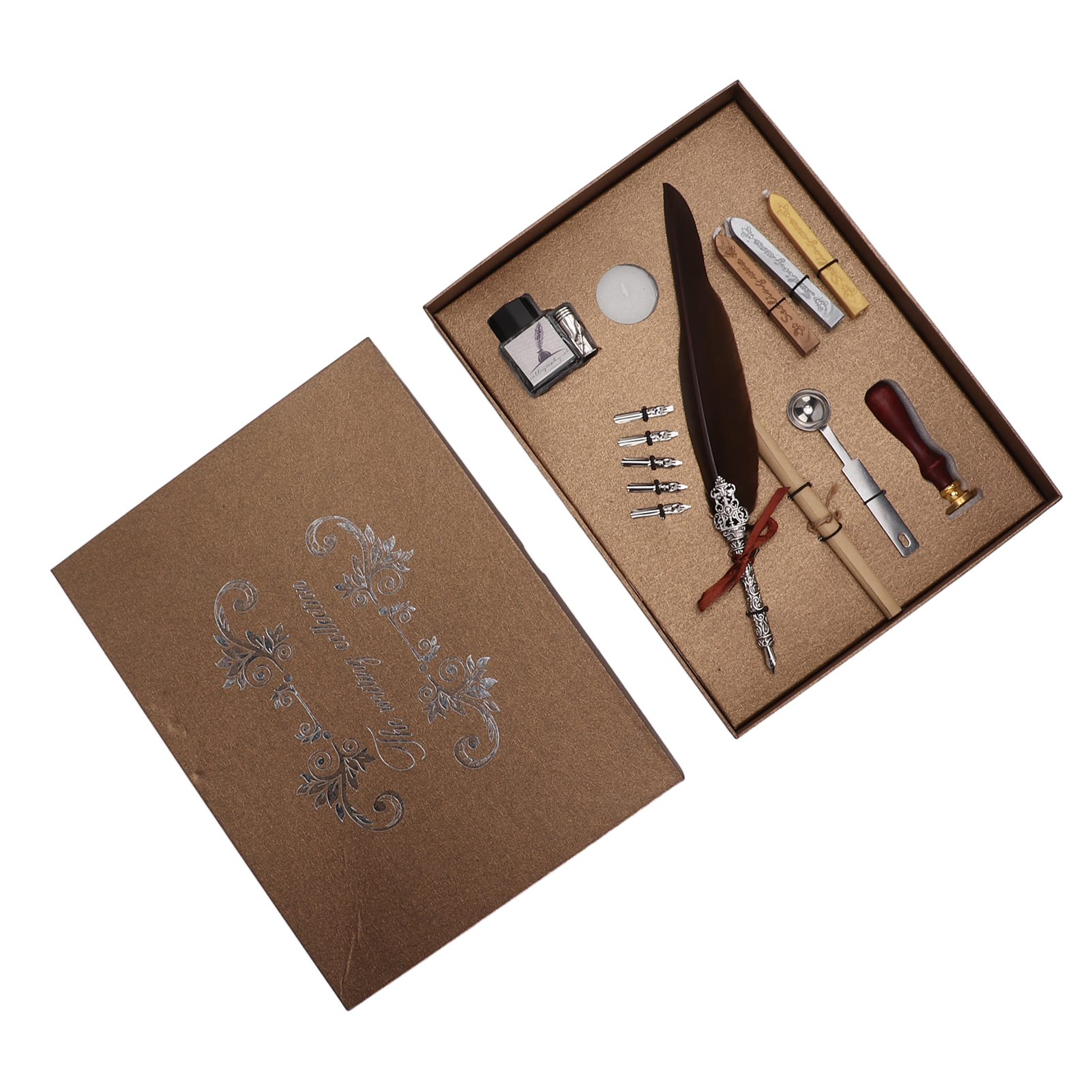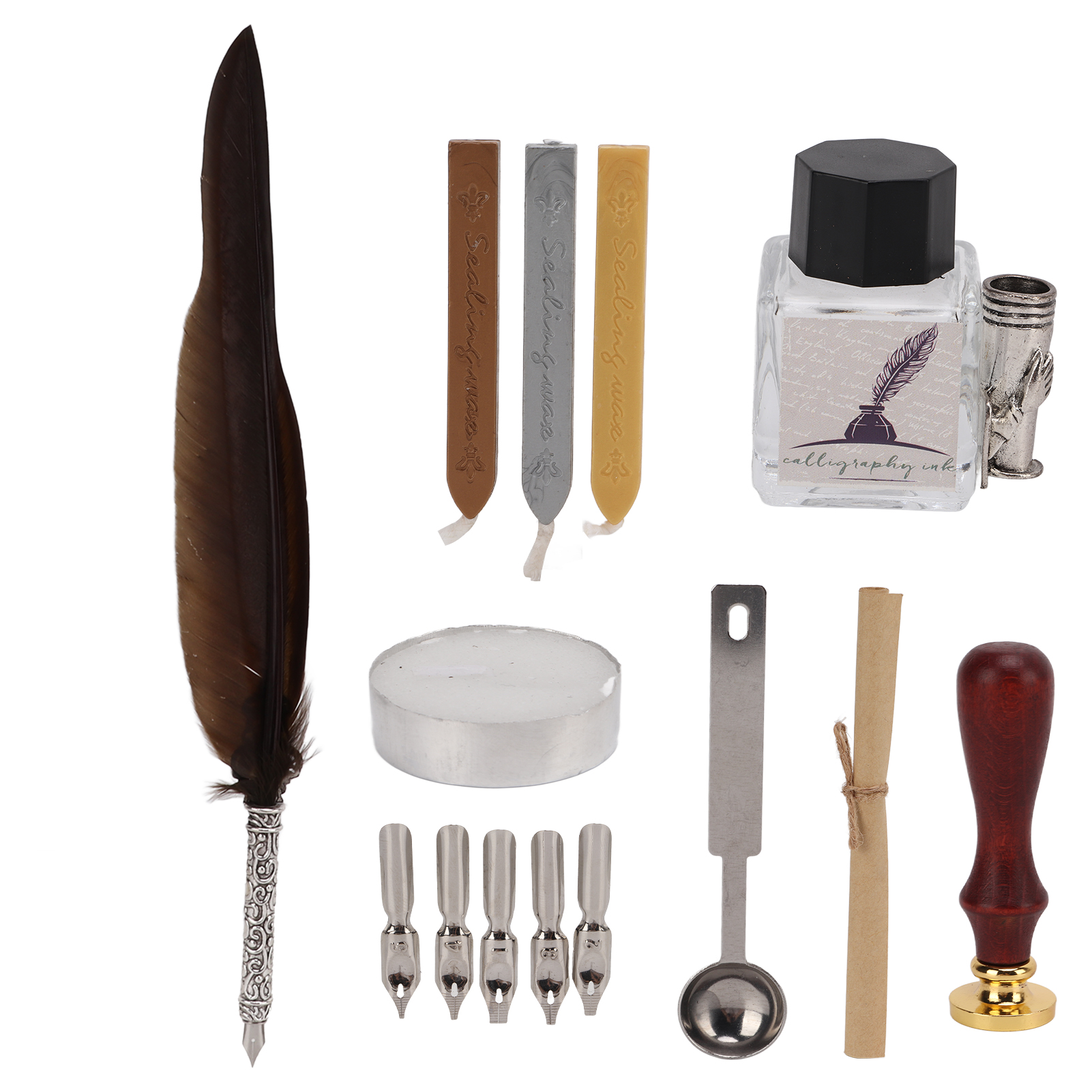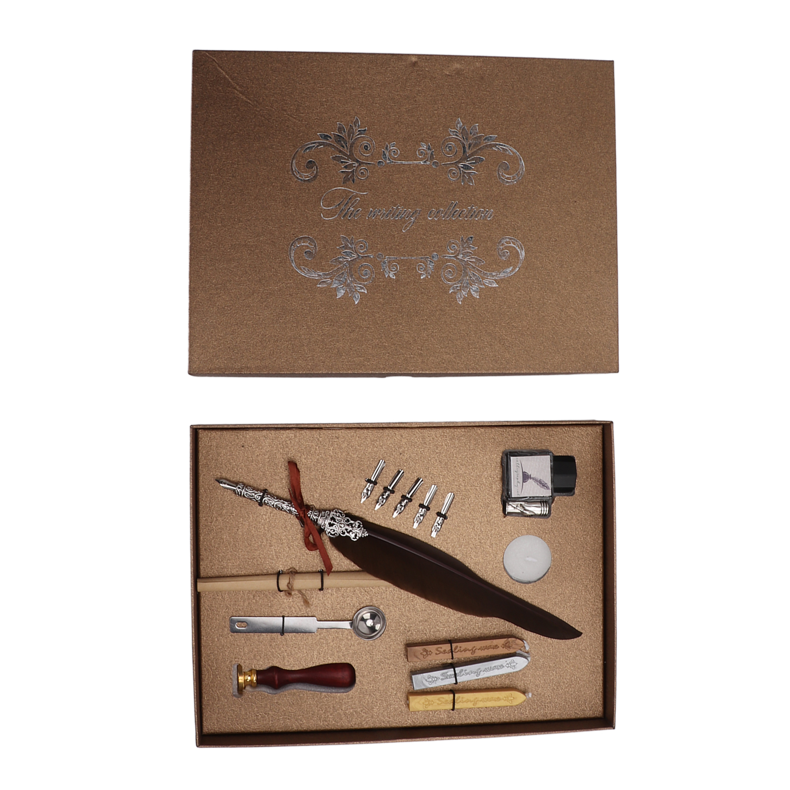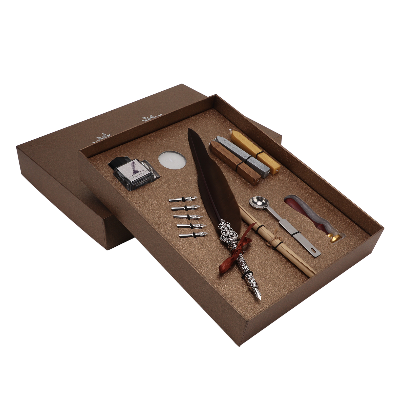 Feather Pen Set Smoothly Write Retro Design Carving Appearance Wearable Calligraphy Pen Kit for Writing GiftSFDPS038019 Brown