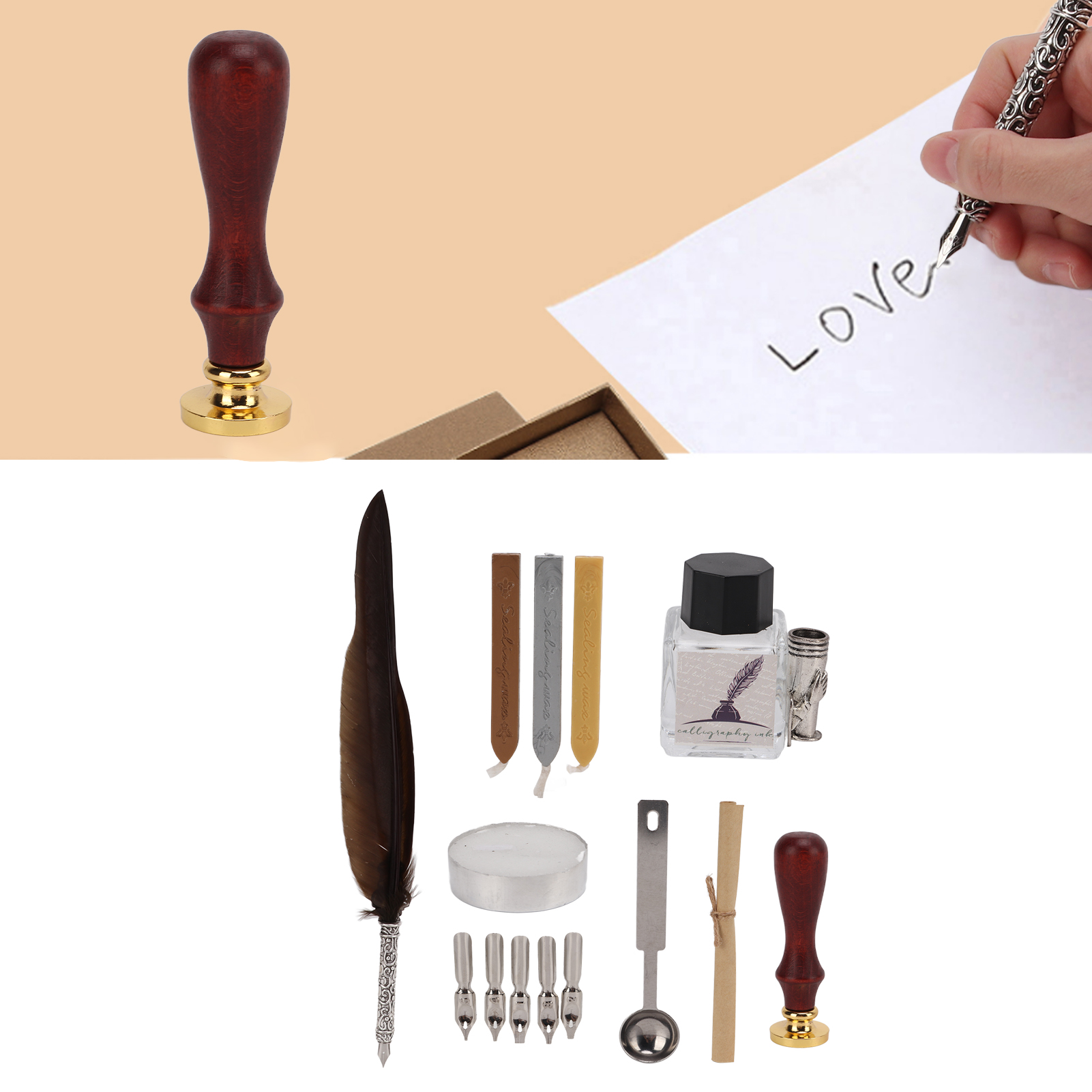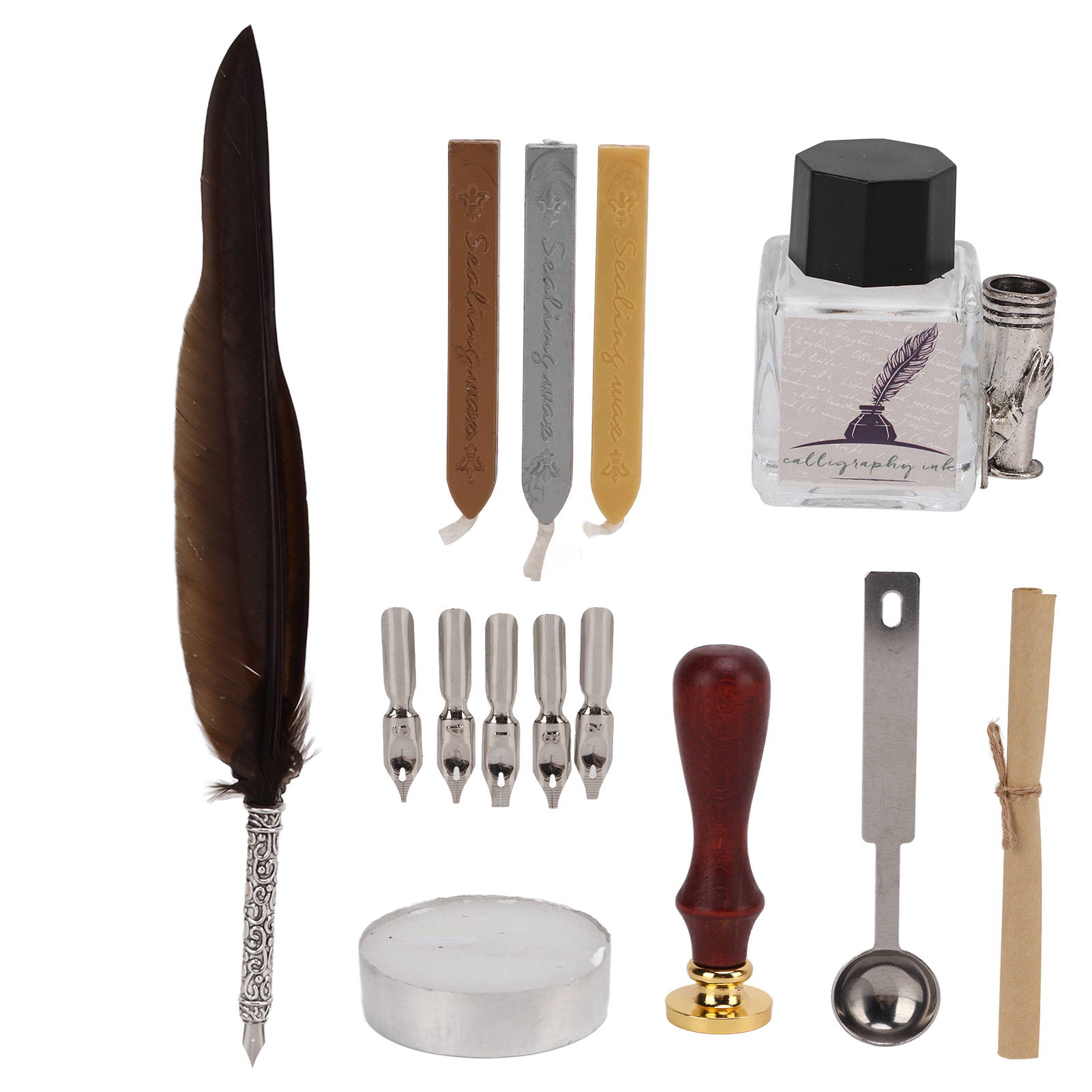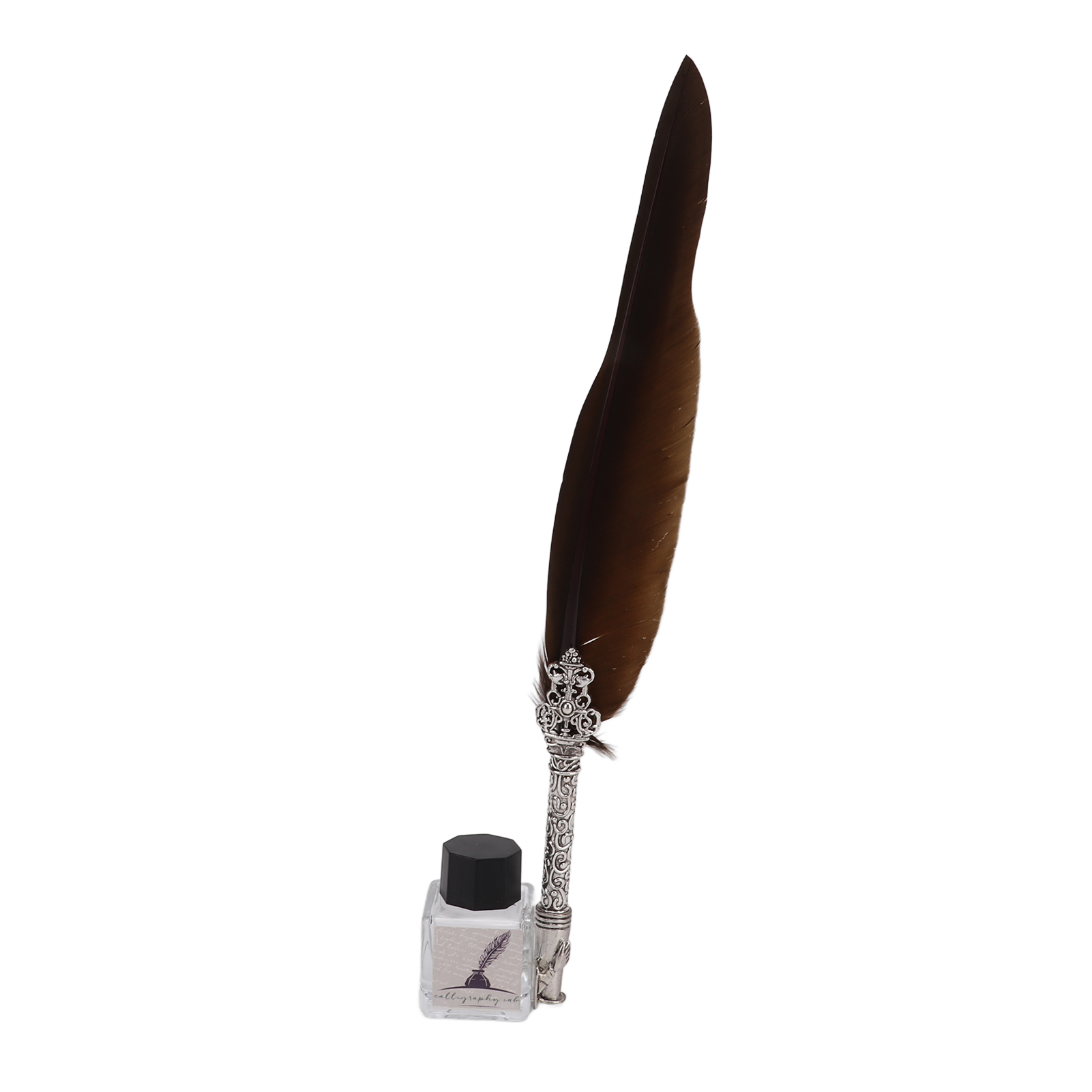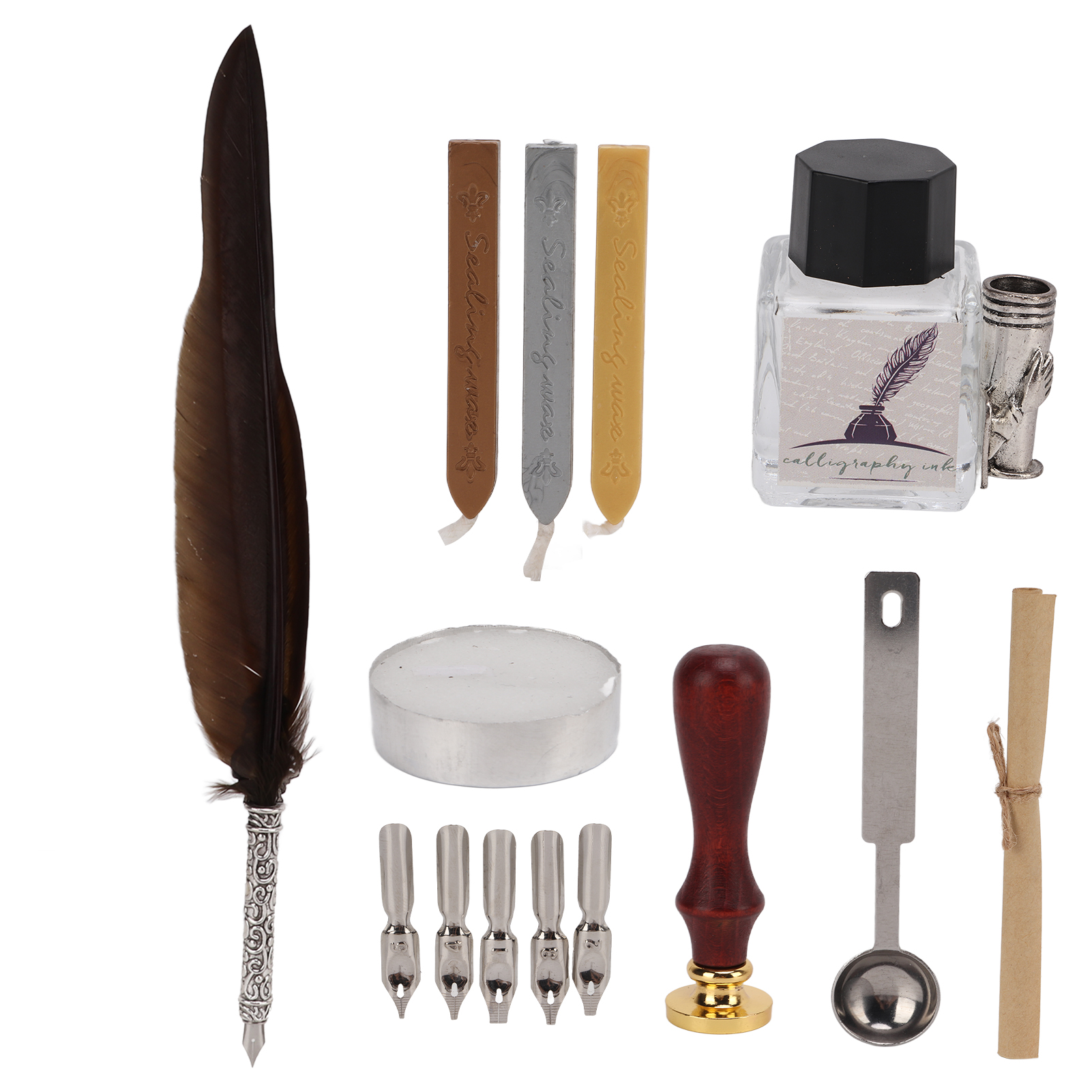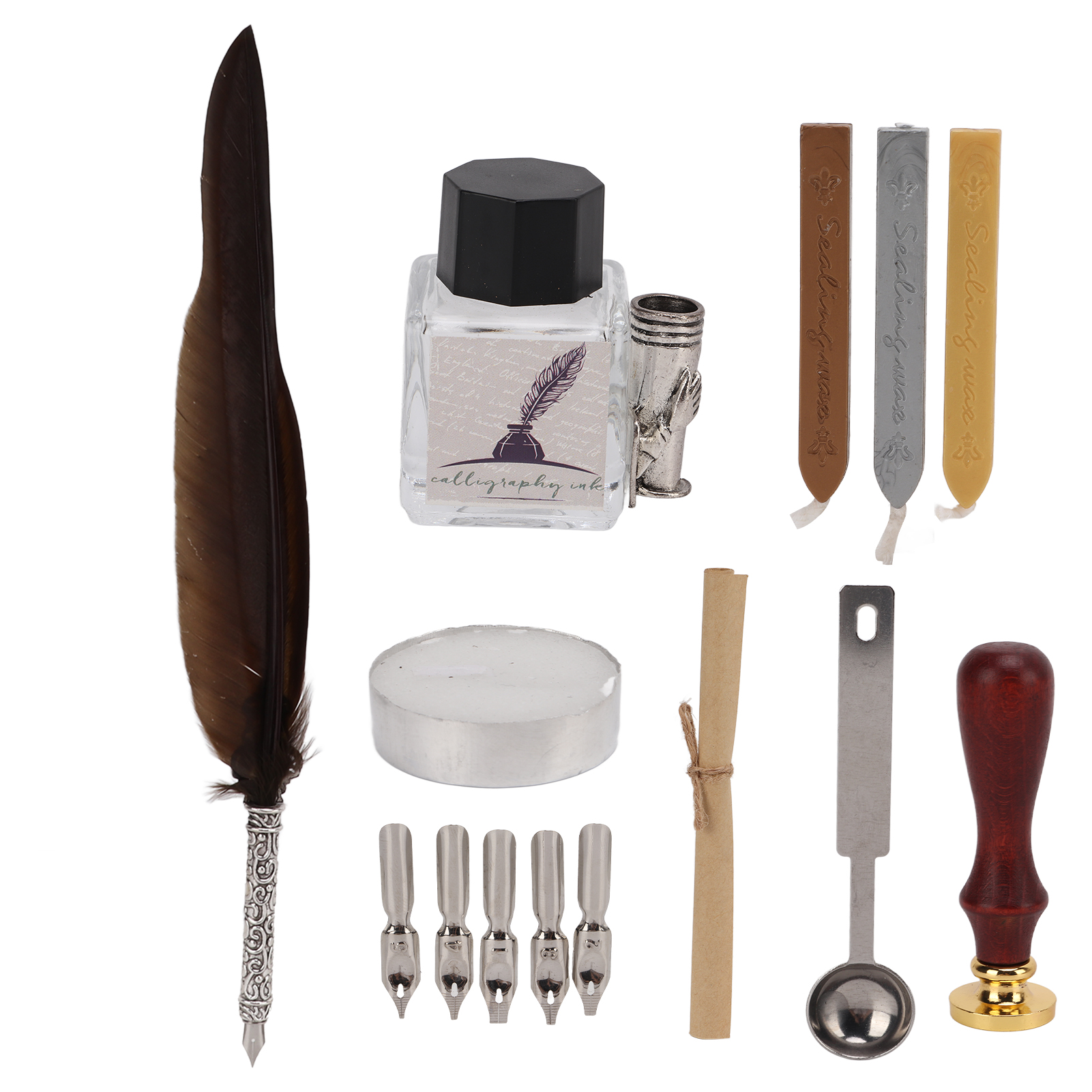 Feather Pen Set Smoothly Write Retro Design Carving Appearance Wearable Calligraphy Pen Kit for Writing GiftSFDPS038019 Brown