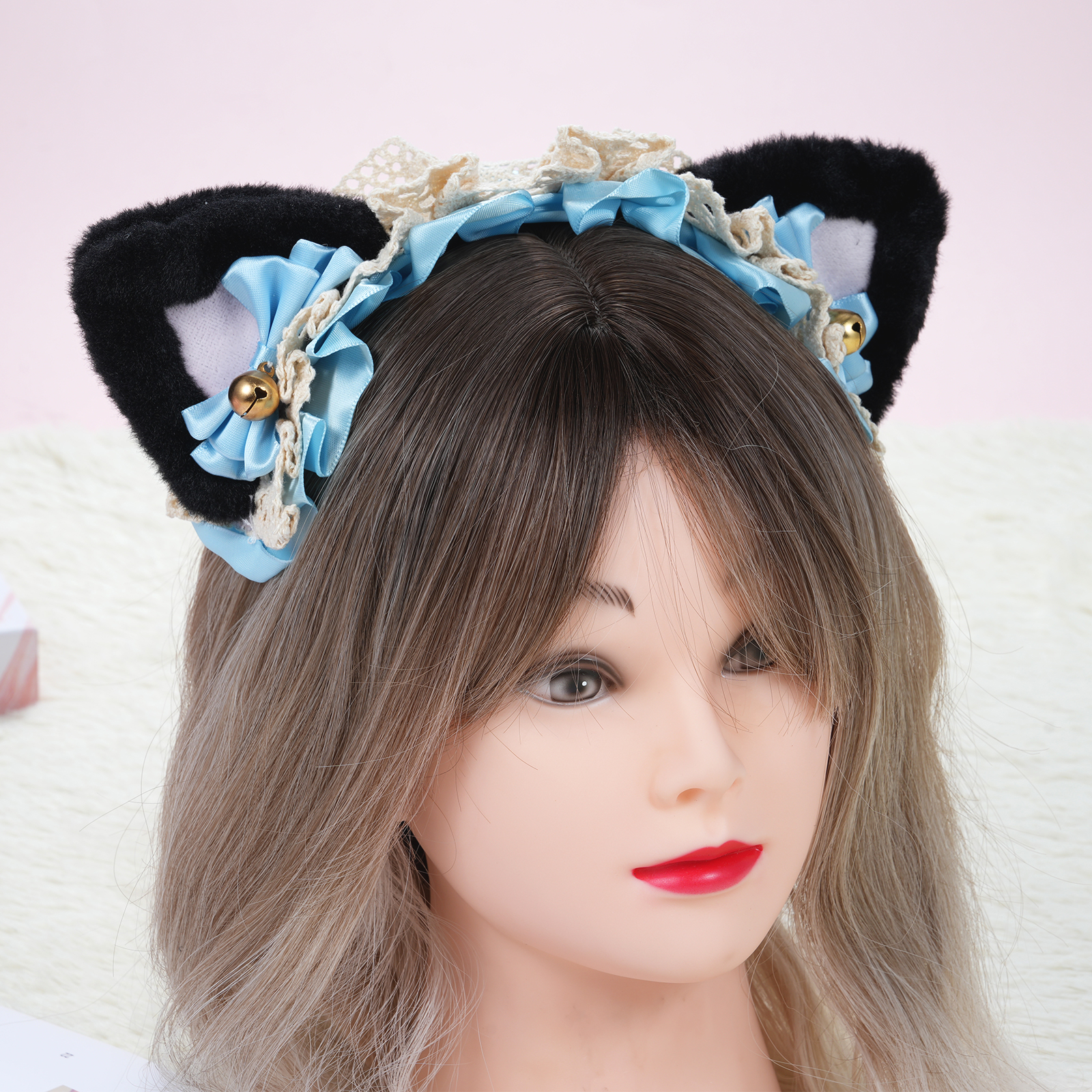 Fluffy Cat Ears Headdress Ribbon Headband Cute Hair Ornament Hair Accessory Lace Cat Ears Hairband for Girls and Women
