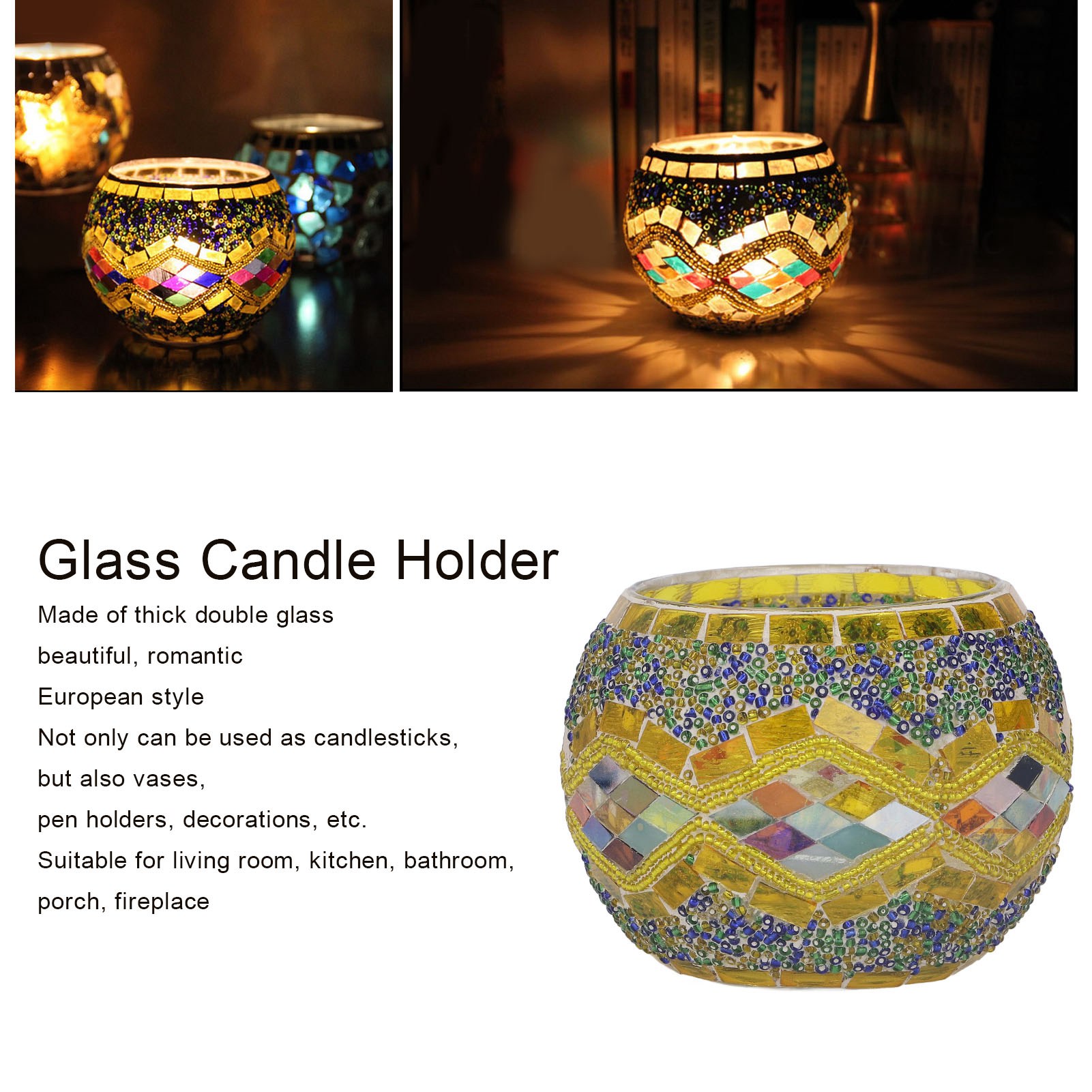 1、Premium Materials: Made of thick double glass, the candle holder is strong, durable and not easily damaged. 2、Fine Workmanship: Hand made, using traditional techniques to form classic patterns around the body, beautiful and romantic. 3、European Style: This European designed glass candle holder is a great home and bedroom decoration. 4、Wide Uses: Not only a candle holder, but also a vase, pen holder, perfect decoration, etc. 5、Perfect Gift: Cute gift for birthdays, anniversaries, Valentine's Day, Mother's Day, Christmas. Gifts for friends, wives, best friends, mothers.