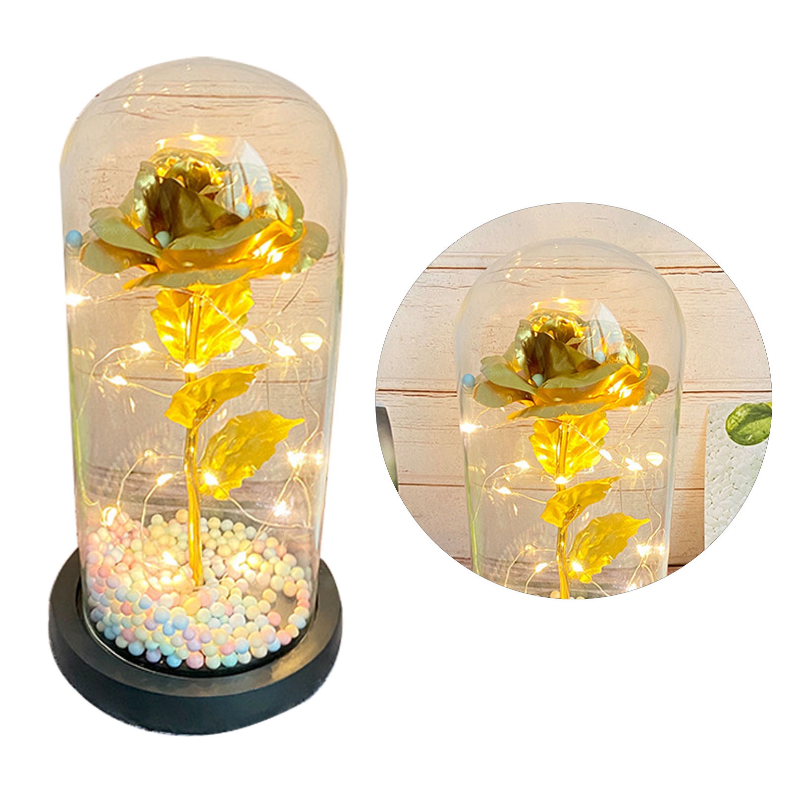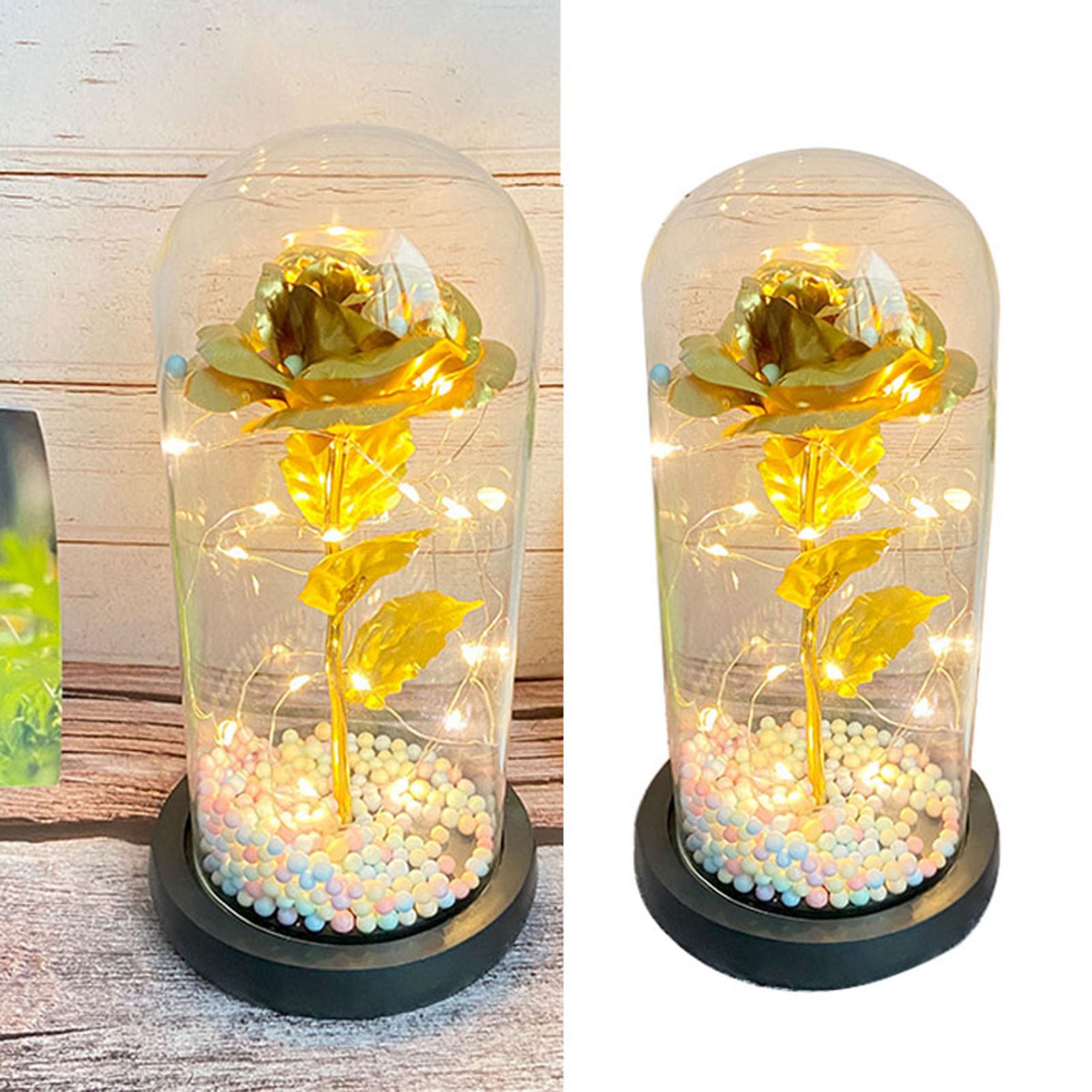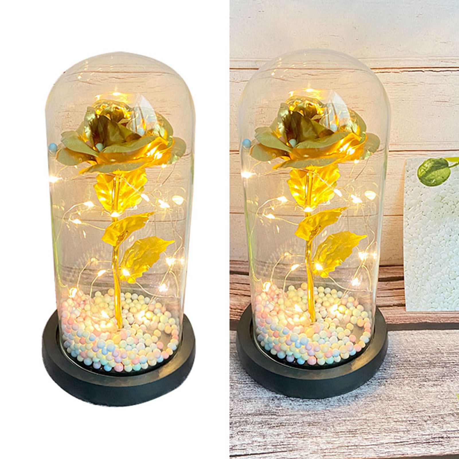 1、Beautiful Decoration: The unique design helps to accentuate the roses indoors, allowing the petals to get different colors in different light or angles, providing a beautiful decoration for your living room or bedroom. 2、Eternal Love: Glass cover foil flower light is full of hope and beauty, it will bring you love and beauty, symbolizing your eternal love for her. 3、Glass Cover: Valentines day rose light gift is made of glass, transparent and unadulterated, very safe, heat resistant and high temperature resistant. 4、Multipurpose: LED light glass flowers can not only be used as decoration, but also as a night light to create a romantic ambiance. 5、Perfect Gift: LED light glass flowers is a wonderful gift for girlfriend, best friend, wife, mother, grandmother, ideal gift for mother's day, wedding, engagement, graduation gift, anniversary, Christmas, Valentine's Day.