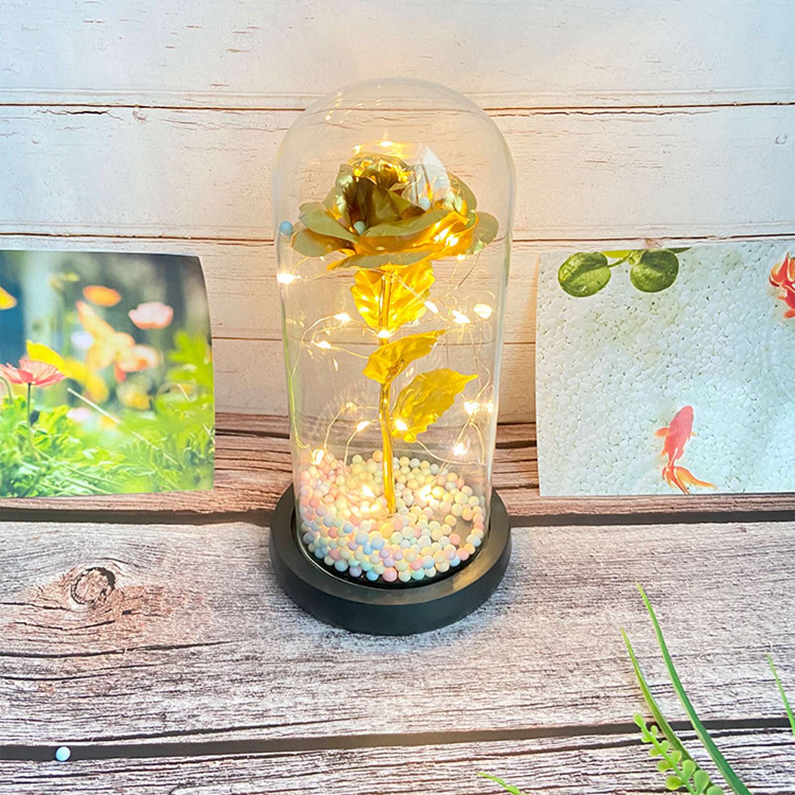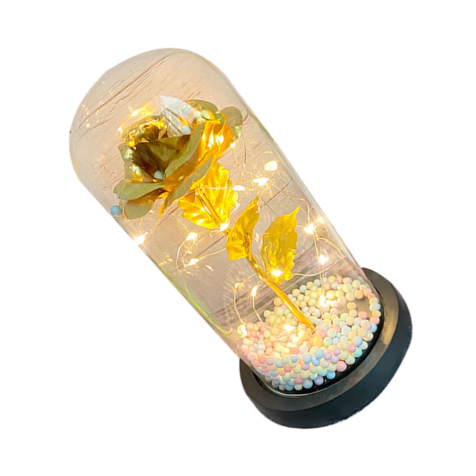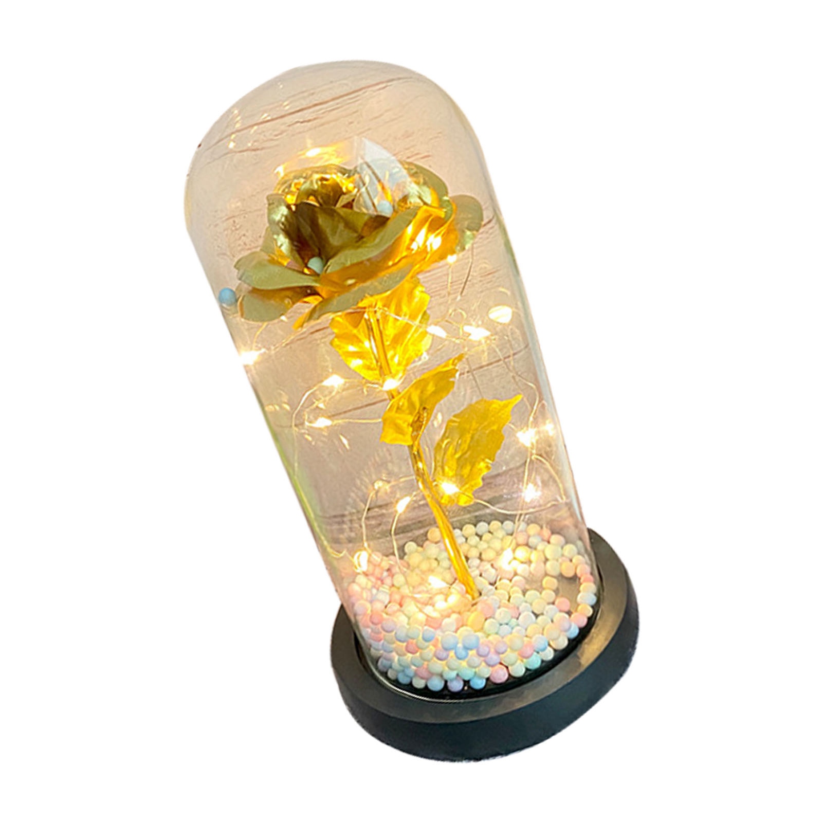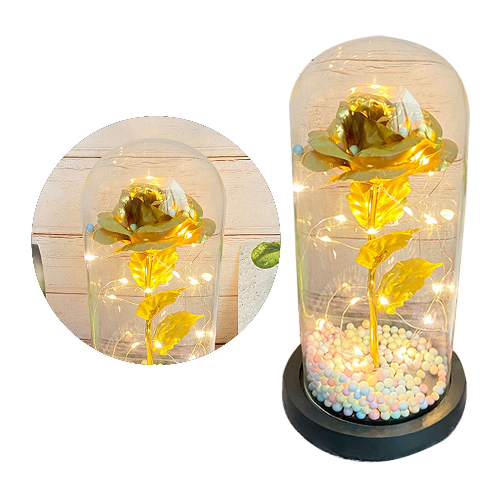 1、Beautiful Decoration: The unique design helps to accentuate the roses indoors, allowing the petals to get different colors in different light or angles, providing a beautiful decoration for your living room or bedroom. 2、Eternal Love: Glass cover foil flower light is full of hope and beauty, it will bring you love and beauty, symbolizing your eternal love for her. 3、Glass Cover: Valentines day rose light gift is made of glass, transparent and unadulterated, very safe, heat resistant and high temperature resistant. 4、Multipurpose: LED light glass flowers can not only be used as decoration, but also as a night light to create a romantic ambiance. 5、Perfect Gift: LED light glass flowers is a wonderful gift for girlfriend, best friend, wife, mother, grandmother, ideal gift for mother's day, wedding, engagement, graduation gift, anniversary, Christmas, Valentine's Day.