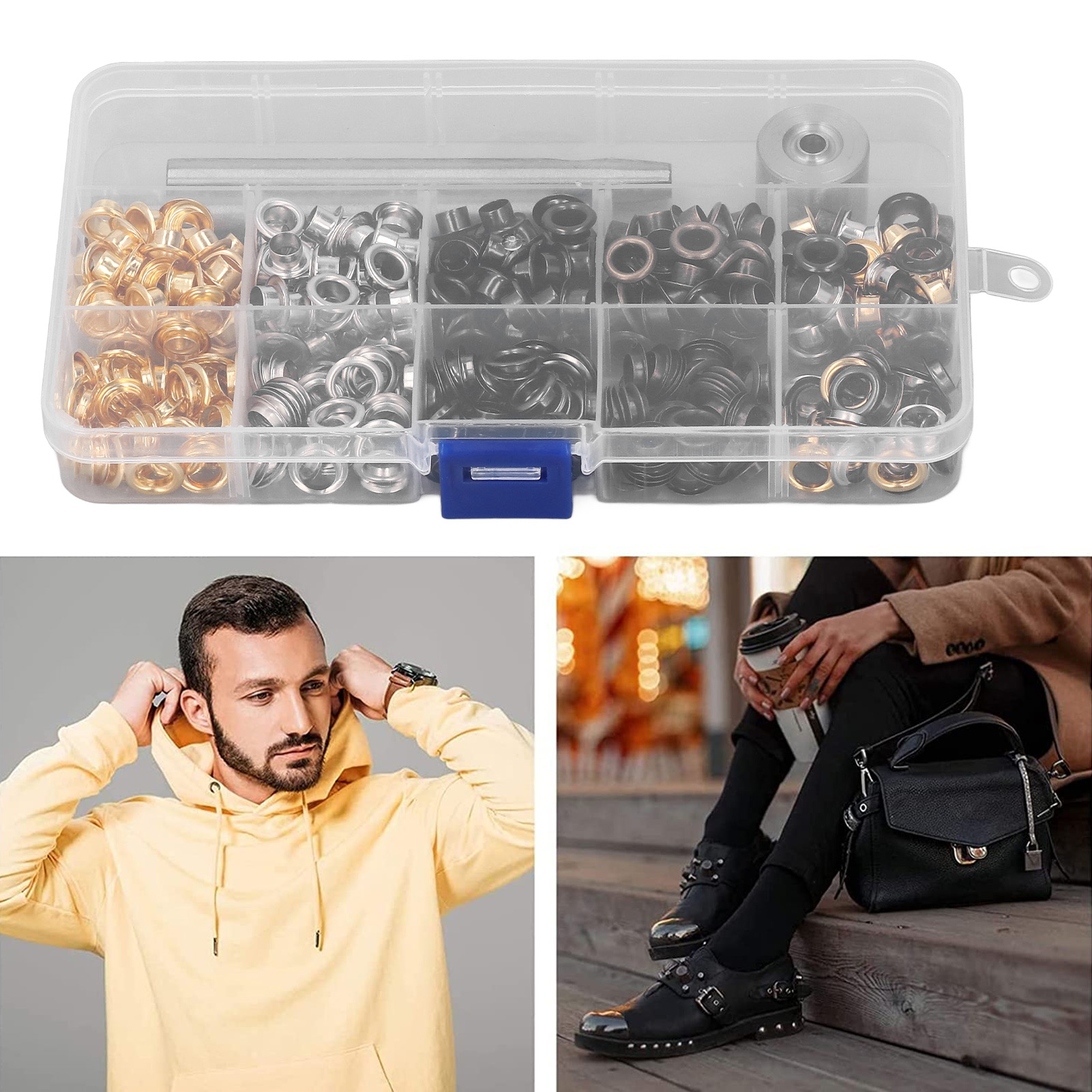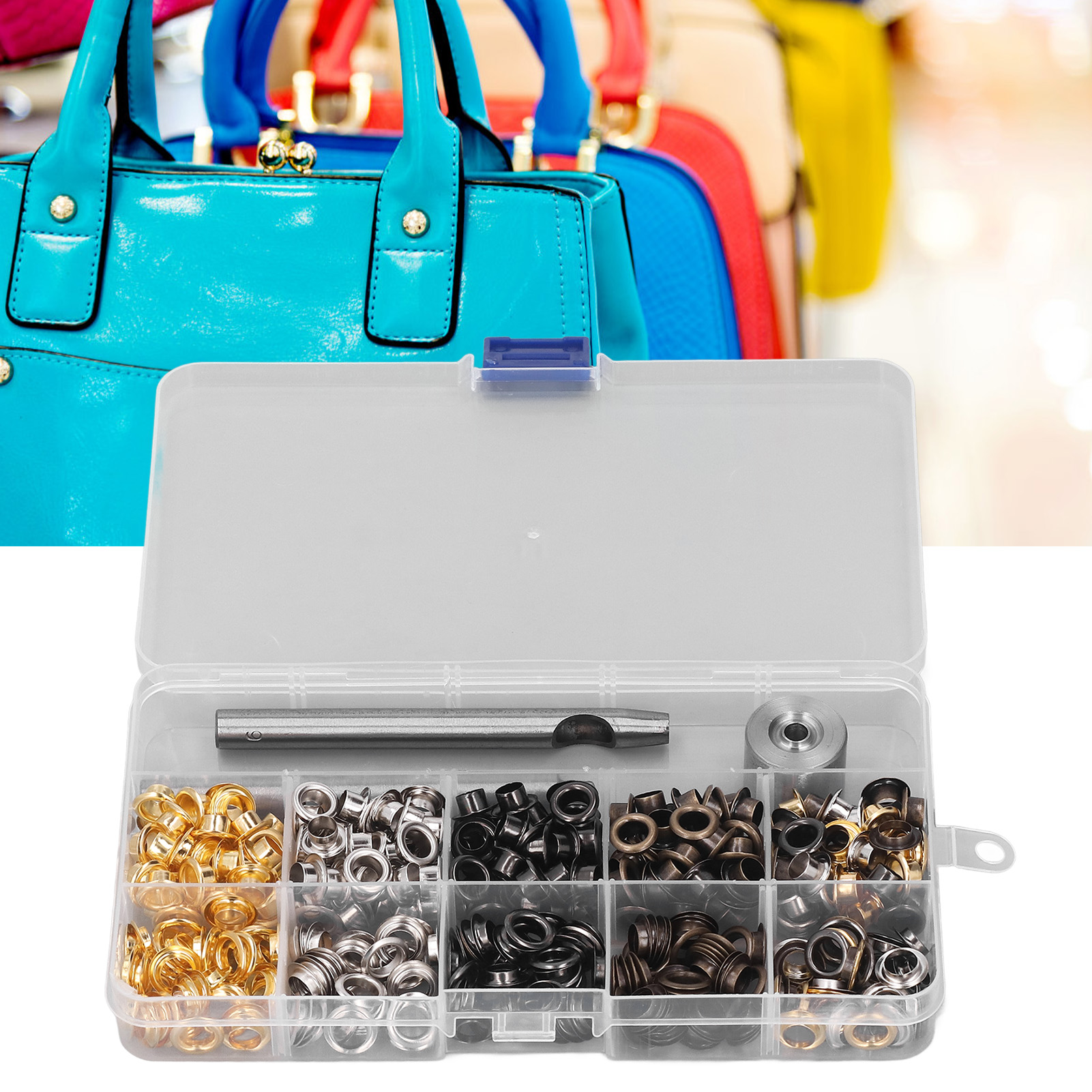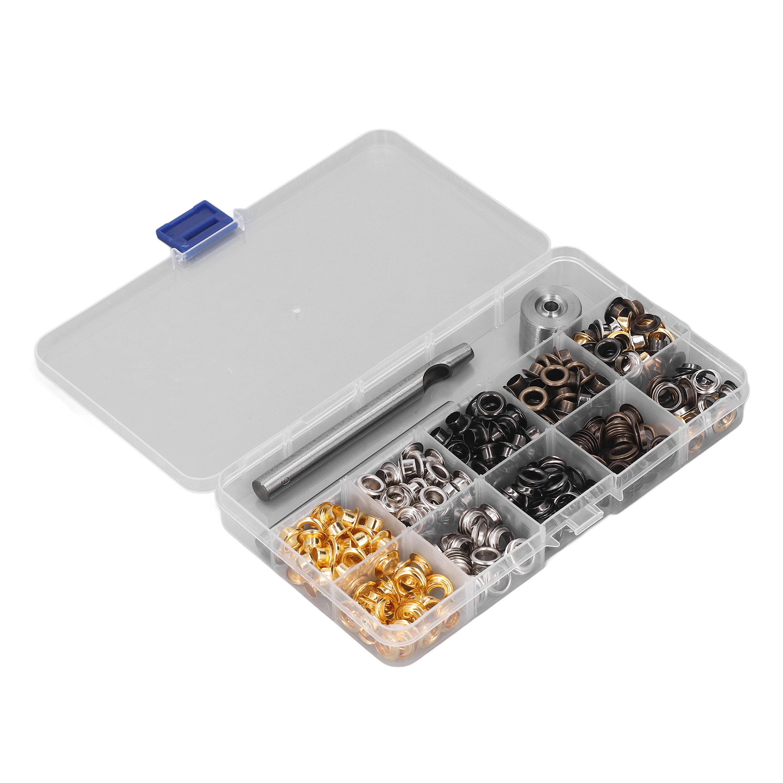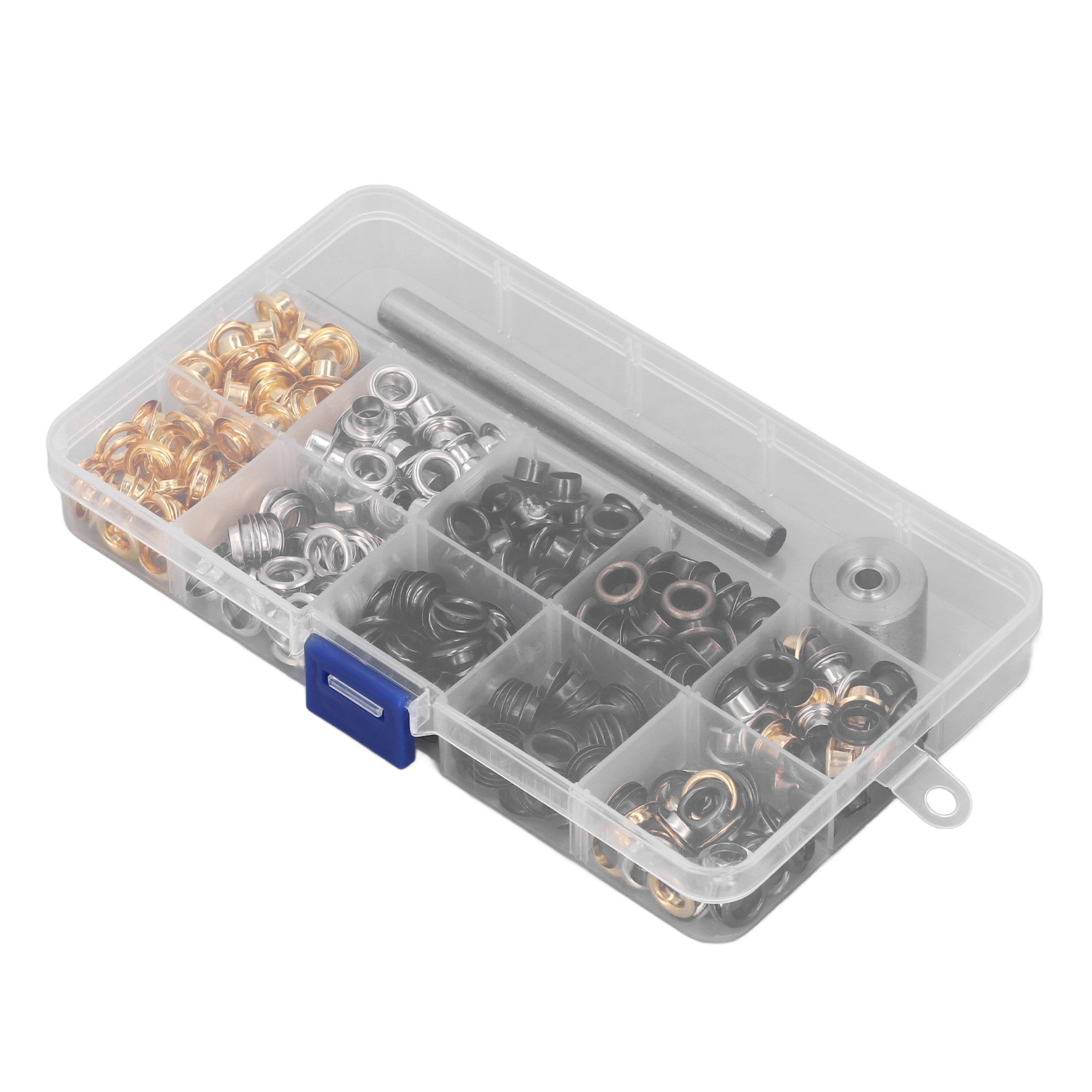 1、4 Colors: Eyelets tool kit is available in gold, silver, silver black and antique copper to meet your needs, ideal and perfect gift for mothers, friends and family. 2、Widely Used: Eyelet kit is widely used for making, repairing and decorating shoes, bags, clothes, laces and leather crafts. 3、Easy to Install: The rings are easy to install, just hammer out the small holes directly with our tools and the rings. 4、Metal Material: Eyelets are made of metal, sturdy and durable, not easy to rust and deformation, can be used for a long time. 5、With Plastic Box: All the grommets and tools are packed in a transparent storage box, so that you can find the corresponding parts more easily.