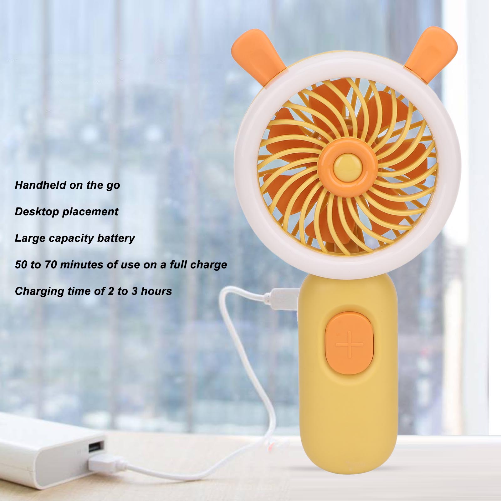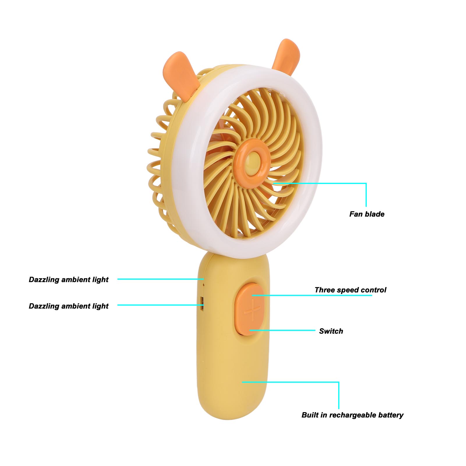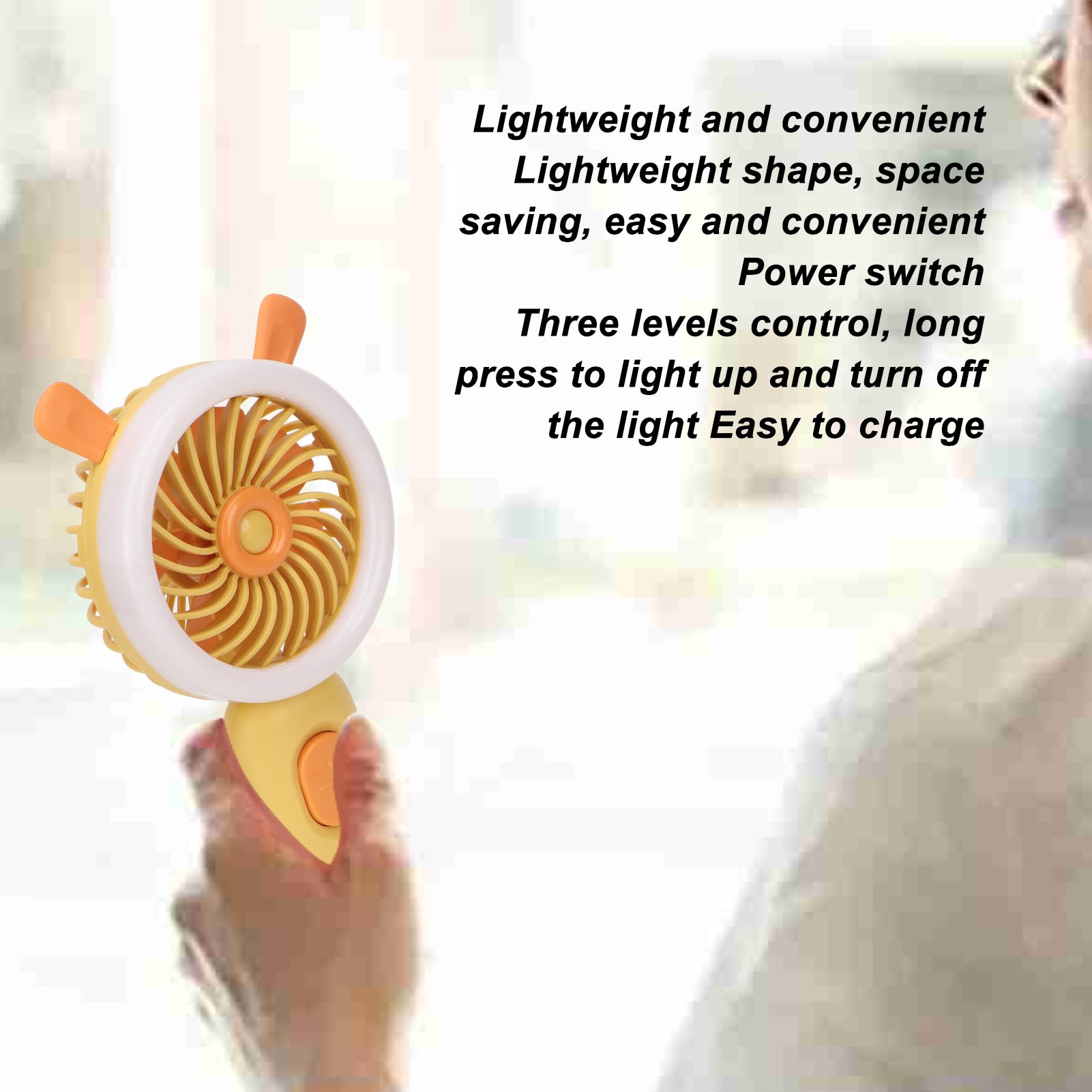 1、Three Levels Adjustable: Power switch three levels adjustable, long press the light off, ABS material, can be used for a long time. 2、USB Charging: Mini fan can be cycled USB charging, can be connected to a computer, charging power bank, etc. When charging the fan, the light shows red. 3、Dazzling Light: Long press the switch to turn on the dazzling light, lightweight and convenient, space saving. 4、Ergonomic Grip Design: Portable handheld fan with ergonomic grip design, rounded tilt, comfortable in the hand. 5、800mAh Battery: Large capacity battery full charge state, 800mAh battery capacity, can be used for about 50 to 70 minutes, charging time of 2 to 3 hours.