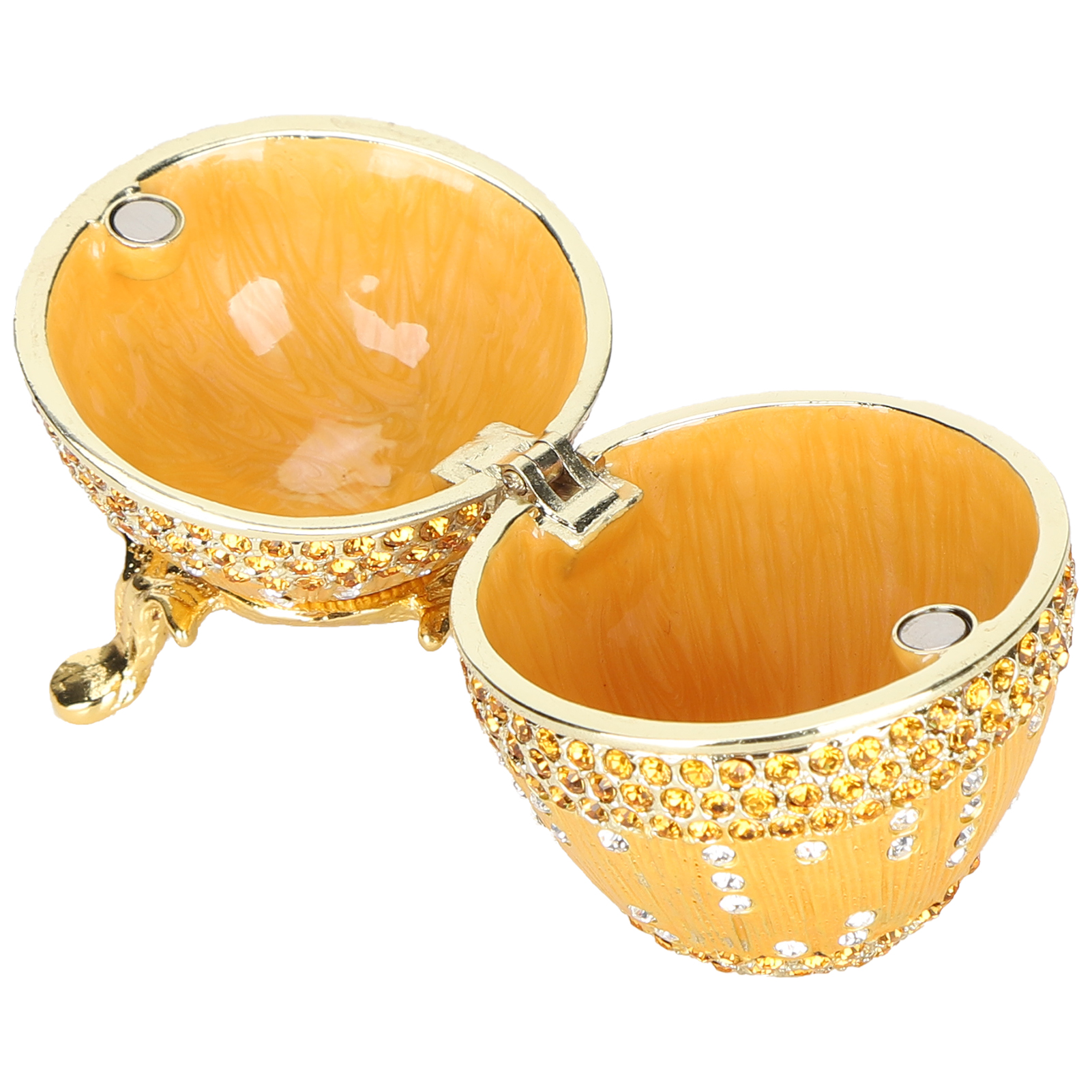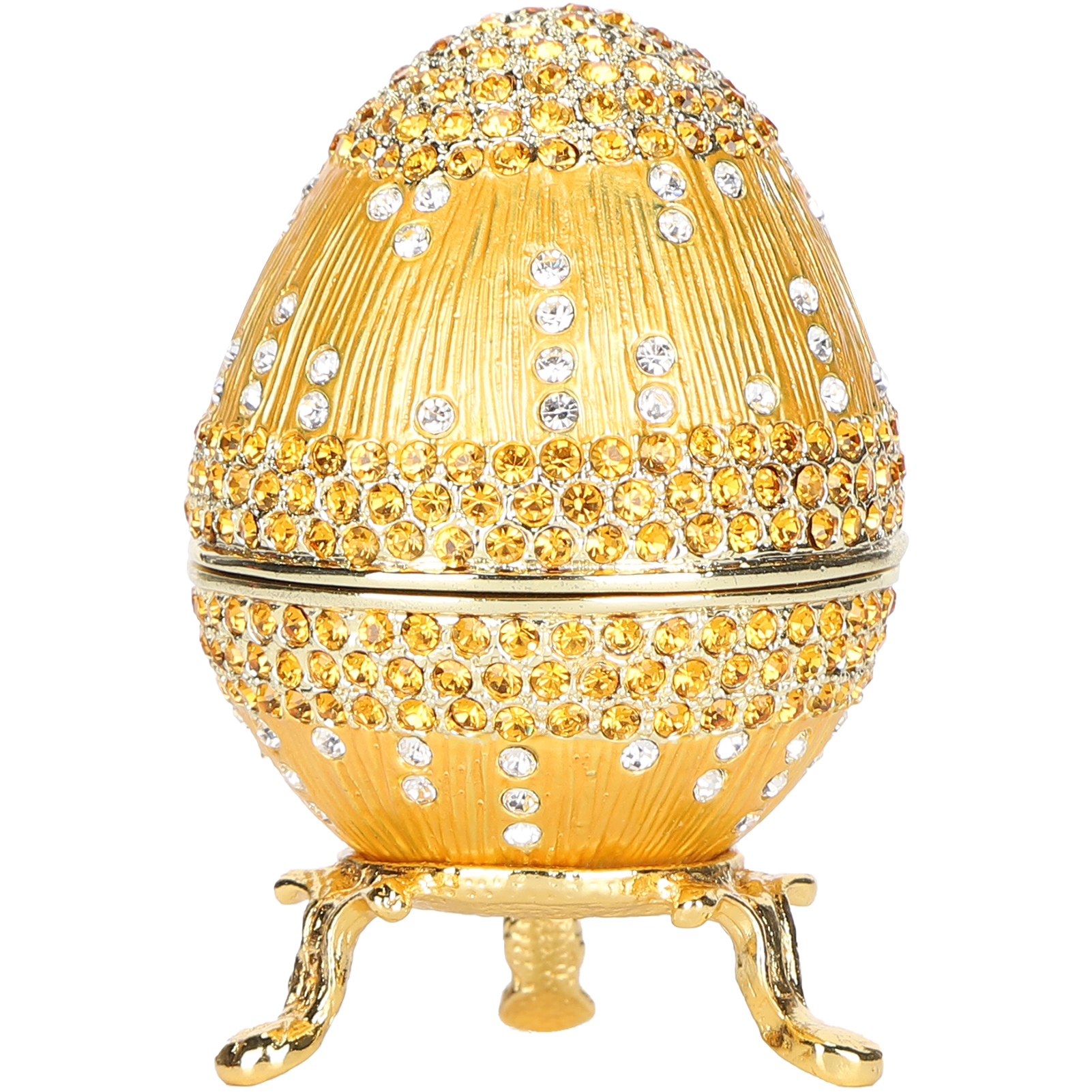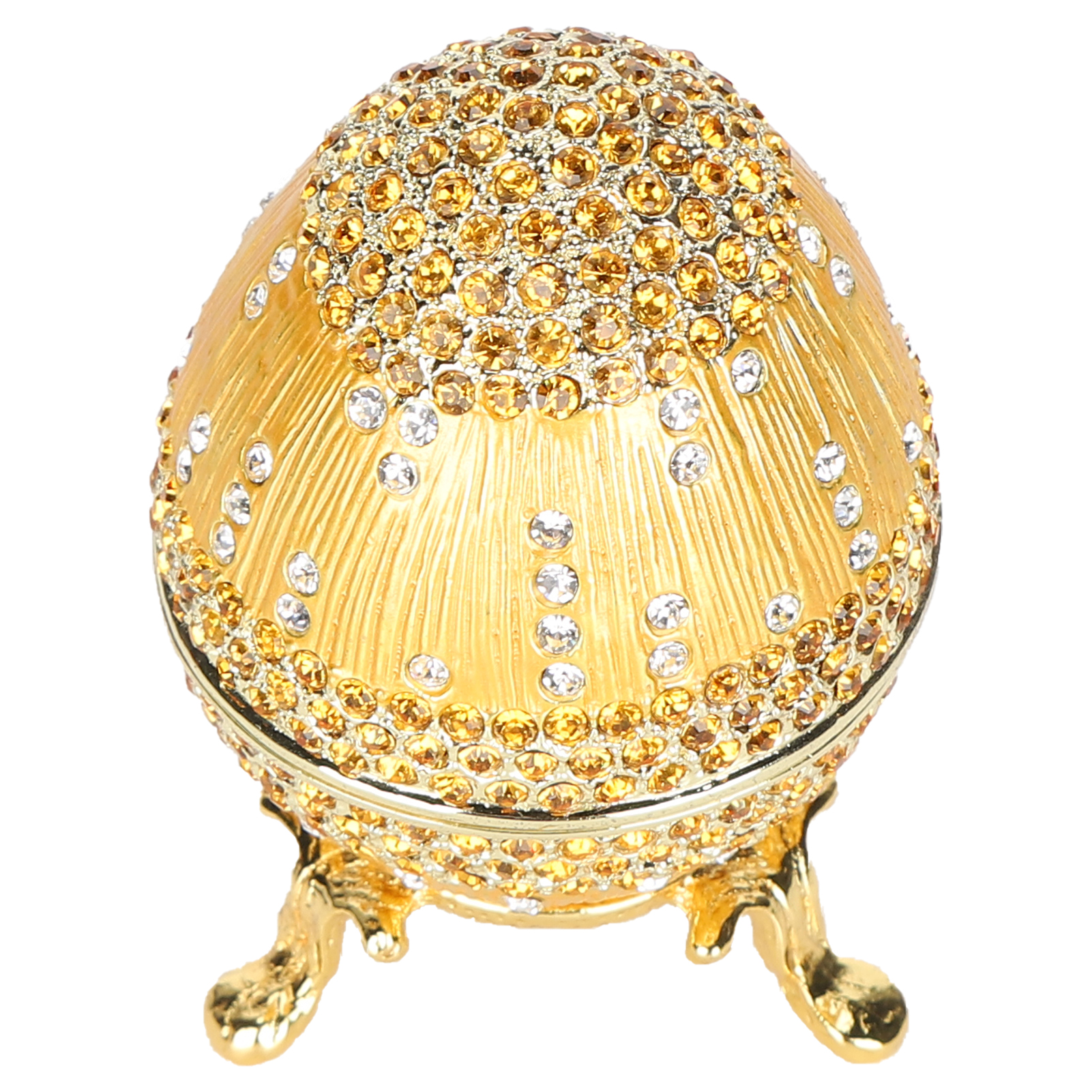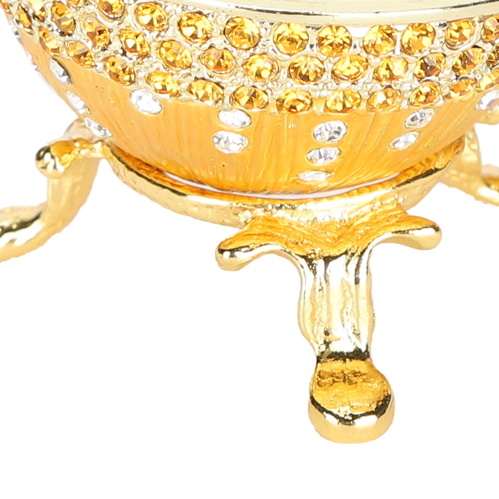 1、The special jewelry box is very suitable for jewelry display and collection, art collection, or storing other small accessories. 2、Enameled trinket box made of high‑quality zinc alloy with rhinestones has luxurious style which is perfect for gifts. 3、The box can also prevent your jewelry from oxidation or being scuffed, scratched, damaged, and make jewelry last longer. 4、The golden glittering appearance embellishes the jewelry with a noble and luxurious feeling. 5、The egg‑shaped hinged jewelry box will be packed well in case, so it is perfec for Mother's day, birthday or any other holidays and events.