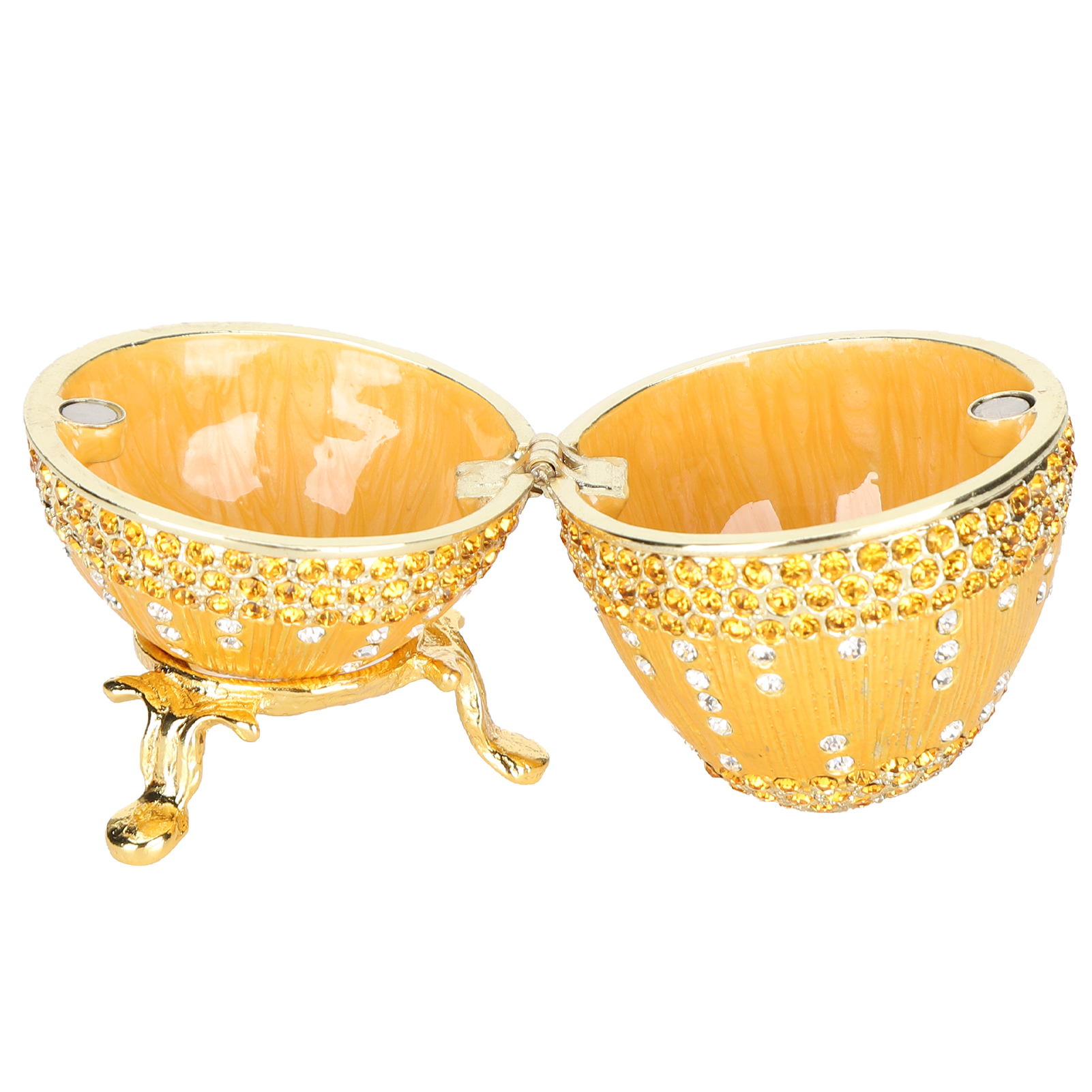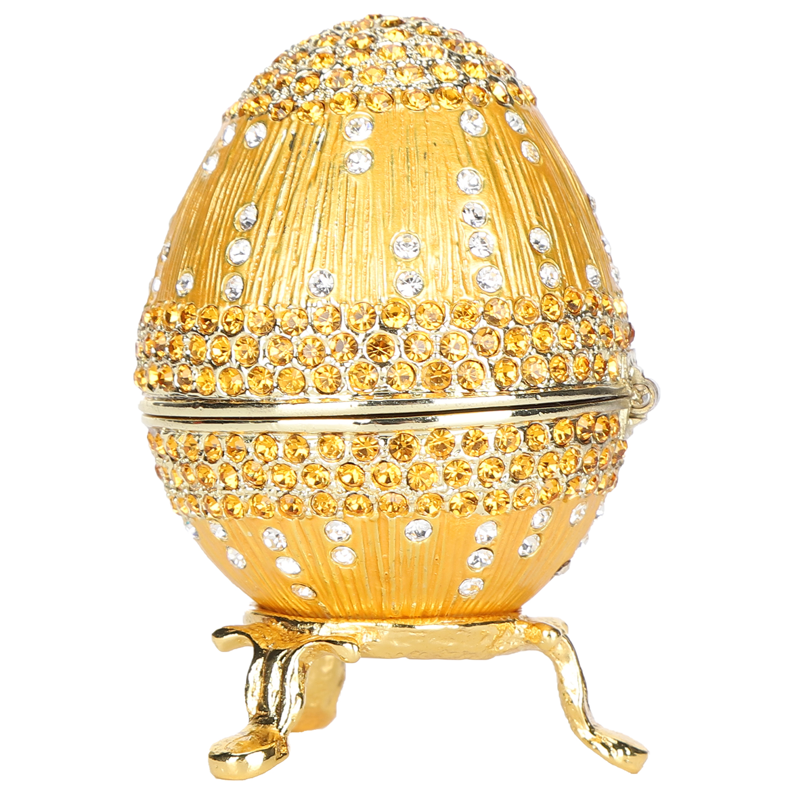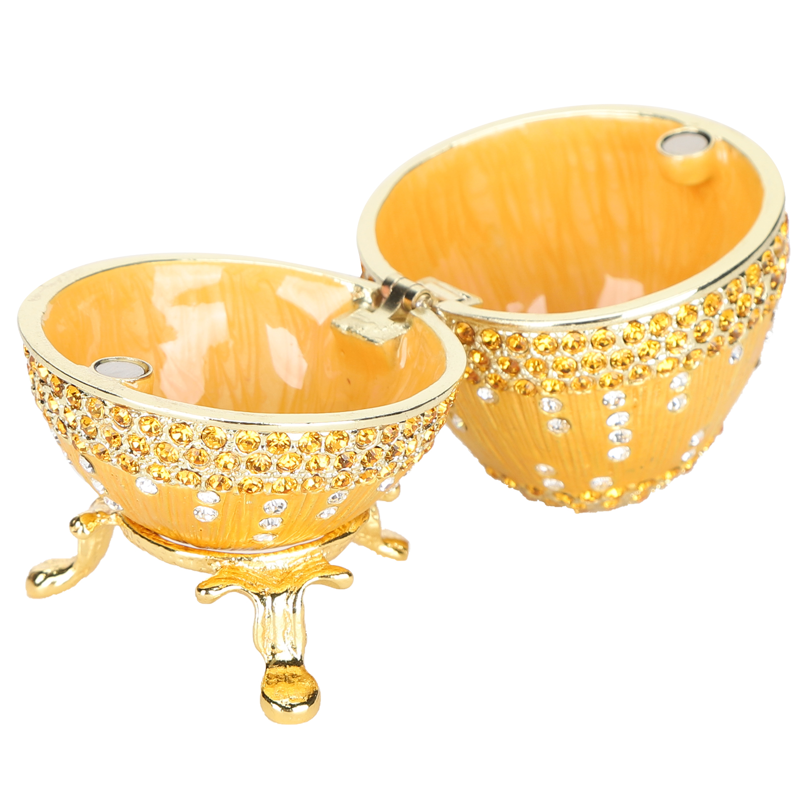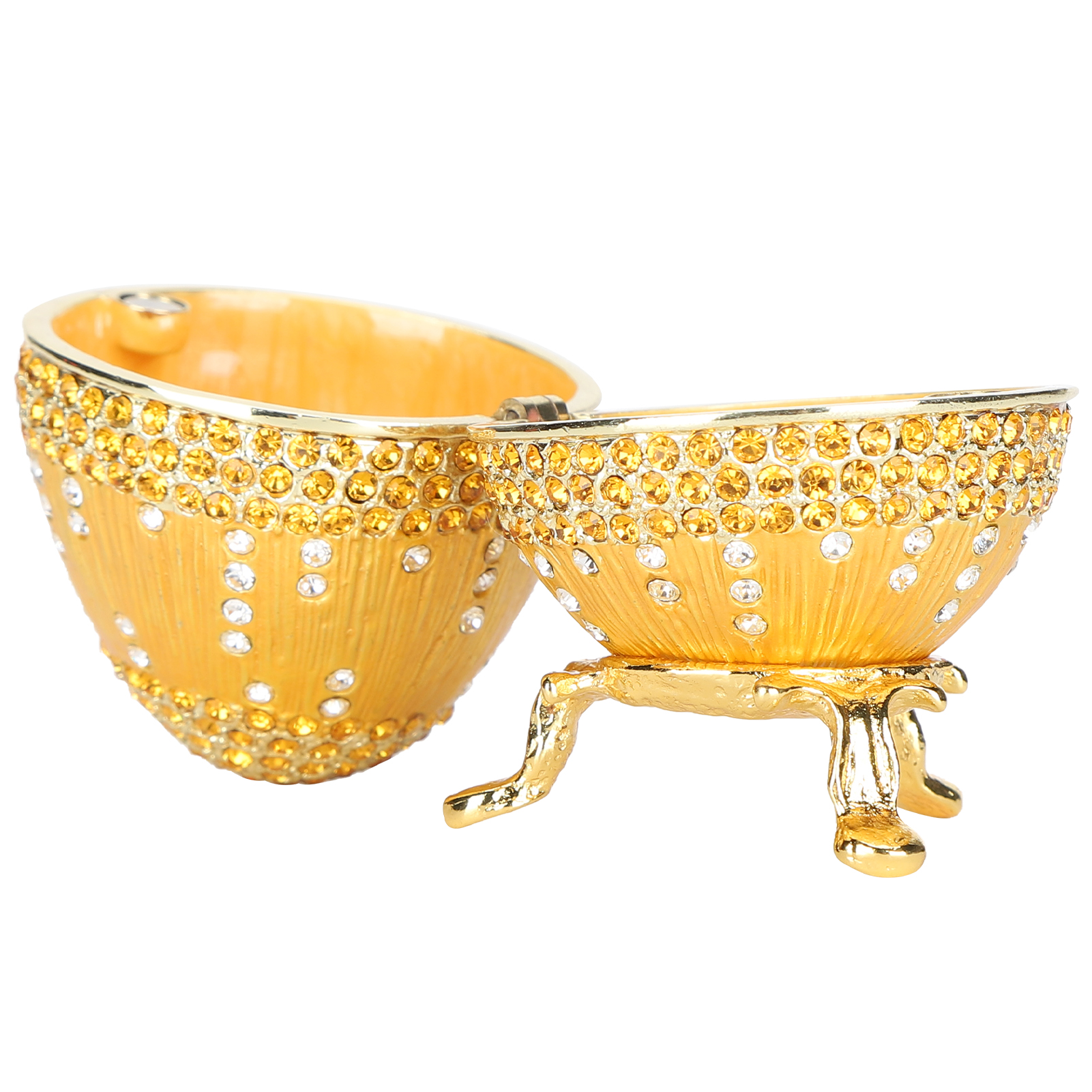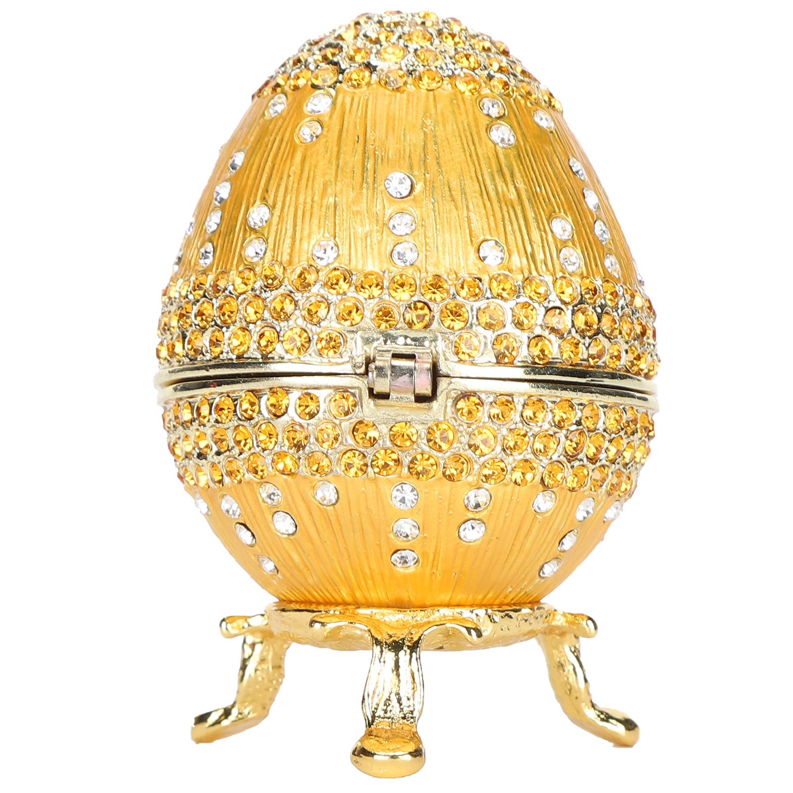 1、The special jewelry box is very suitable for jewelry display and collection, art collection, or storing other small accessories. 2、Enameled trinket box made of high‑quality zinc alloy with rhinestones has luxurious style which is perfect for gifts. 3、The box can also prevent your jewelry from oxidation or being scuffed, scratched, damaged, and make jewelry last longer. 4、The golden glittering appearance embellishes the jewelry with a noble and luxurious feeling. 5、The egg‑shaped hinged jewelry box will be packed well in case, so it is perfec for Mother's day, birthday or any other holidays and events.