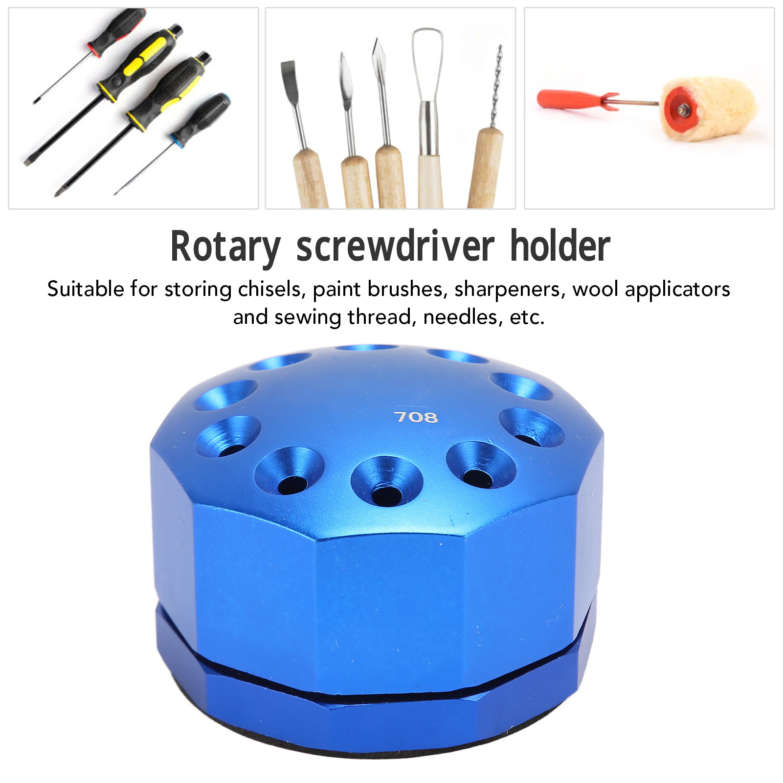 KGX 708 360 Degree Rotating Screwdriver Storage Box 10 Holes Lightweight Rotary Screwdriver Holder for Chisel Needle Blue